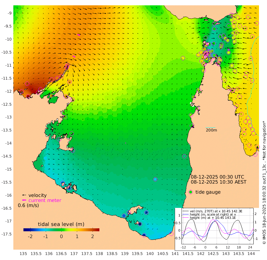 49cm/s 118T +3cm/s rms + 7cm/s -42T. ARA-GOC87 57m 9cm/s 147T +3cm/s rms + 2cm/s -2T. ARA-GOC87 60m 47cm/s 112T +2cm/s rms + 3cm/s 61T. ARA-GOC87 47m 43cm Daru 62cm Bobo Island 78cm Meer Island Barge 81cm Bramble Cay 65cm Unnamed Cay 77cm Pearce Cay 72cm Stephens Island 66cm Merrie England Shoals 48cm Mutacomal Reef 69cm Darnley Island Barge 85cm East Cay 56cm Yorke Island Barge 58cm Rennel Island 55cm Aureed Island 41cm Dungeness Reef 14cm Zagai Island 14cm Yam Island -3cm Dauan Island -6cm Saibai Island -7cm Phipi Reef 8cm Warrior Reef - West 12cm Mabuiag Island Barge 54cm Half Way Island 48cm Coconut Island 46cm Dugong Islet 29cm Poll Island 28cm Kirkcaldie Reef 10cm Suarji Island 19cm Sue Islet 99cm Hawkesbury Island 23cm Alert Patches 27cm Twin Island 80cm Badu Island 13cm St Pauls (Moa Island) 70cm Kubin (Moa Island) 30cm Ince Point 38cm Thursday Island 35cm Nardana Patches 58cm Turtle Head 72cm Round Island 93cm Goods Island 97cm Booby Island 98cm White Rocks Area 70cm Carpentaria 29cm Papou Point 117cm Bampfield Head 75cm Crab Island 89cm Red Wallis Island 75cm Packe Island 47cm Harrington Reef 81cm Herald Camp -18cm Sharp Point 57cm Red Island Point 41cm Possession Island 18cm Alpha Rock 35cm Frederick Point 54cm Wyborn Reef Light 48cm Tetley Island 69cm Triangle Reef 72cm Turtle Head Island 74cm Maclennan Cay 80cm Raine Island 61cm Mcsweeny Reef 62cm Collette Reef 68cm Shadwell Reef 71cm Hannibal Island 87cm Round Point 62cm Vrilya Point 73cm Cape Grenville 79cm Hicks Island 85cm Sir Charles Hardy Island 21cm Harvey Island 82cm Kay Reef 80cm Rocky Island 87cm Chapman Island 81cm Ham Reef 80cm Jubilee Reef 68cm Night Island 82cm Unnamed Reef No. 3 84cm Morris Island 81cm 1st 3 Mile Opening 80cm Creech Reef 74cm Fife Island 104cm Eden Reef 82cm Stanley Island 93cm Normanby River 215cm Yabooma Island 258cm Hutchison River 212cm Elcho Island 195cm North West Crocodile Island 163cm Cape Wessel 196cm Stevens Island 158cm Guluwuru Island 177cm Hopeful Bay 171cm Auster Point 172cm Two Island Bay 226cm Cadell Strait 132cm Mallison Island 133cm Melville Bay (Gove Harbour) 149cm Truant Island 84cm Cape Arnhem 28cm Cape Grey -1cm Hawk Island -65cm Milner Bay (Groote Eylandt) -79cm Cape Beatrice -154cm West Island -151cm Centre Island -157cm Mornington Island -158cm West Wellesley Islands -171cm Bountiful Island -194cm Albert River Mouth -217cm Sweers Island -195cm Karumba -109cm Nassau River Offshore -53cm Christmas Creek 12cm Archer River 31cm Boyd Point 38cm Weipa (Humbug Point) 32cm Pennefather River 50cm Cullen Point