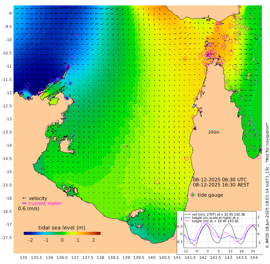 35cm/s -89T +3cm/s rms + 7cm/s -42T. ARA-GOC87 57m 36cm/s 168T +3cm/s rms + 2cm/s -2T. ARA-GOC87 60m 48cm/s -96T +2cm/s rms + 3cm/s 61T. ARA-GOC87 47m 73cm Daru 49cm Bobo Island 13cm Meer Island Barge 18cm Bramble Cay 47cm Unnamed Cay 39cm Pearce Cay 39cm Stephens Island 42cm Merrie England Shoals 67cm Mutacomal Reef 37cm Darnley Island Barge 15cm East Cay 53cm Yorke Island Barge 59cm Rennel Island 53cm Aureed Island 79cm Dungeness Reef 95cm Zagai Island 110cm Yam Island 132cm Dauan Island 124cm Saibai Island 126cm Phipi Reef 115cm Warrior Reef - West 114cm Mabuiag Island Barge 61cm Half Way Island 72cm Coconut Island 77cm Dugong Islet 90cm Poll Island 103cm Kirkcaldie Reef 110cm Suarji Island 97cm Sue Islet 113cm Hawkesbury Island 118cm Alert Patches 112cm Twin Island 111cm Badu Island 123cm St Pauls (Moa Island) 111cm Kubin (Moa Island) 119cm Ince Point 121cm Thursday Island 119cm Nardana Patches 119cm Turtle Head 104cm Round Island 107cm Goods Island 112cm Booby Island 99cm White Rocks Area 106cm Carpentaria 99cm Papou Point 103cm Bampfield Head 102cm Crab Island 114cm Red Wallis Island 119cm Packe Island 79cm Harrington Reef 131cm Herald Camp 44cm Sharp Point 107cm Red Island Point 101cm Possession Island 99cm Alpha Rock 98cm Frederick Point 64cm Wyborn Reef Light 72cm Tetley Island 24cm Triangle Reef 62cm Turtle Head Island 25cm Maclennan Cay 7cm Raine Island 47cm Mcsweeny Reef 40cm Collette Reef 23cm Shadwell Reef 34cm Hannibal Island 19cm Round Point 105cm Vrilya Point 26cm Cape Grenville 21cm Hicks Island 31cm Sir Charles Hardy Island 10cm Harvey Island 13cm Kay Reef 10cm Rocky Island 4cm Chapman Island 9cm Ham Reef 11cm Jubilee Reef 14cm Night Island 10cm Unnamed Reef No. 3 8cm Morris Island 12cm 1st 3 Mile Opening 14cm Creech Reef 13cm Fife Island -7cm Eden Reef 11cm Stanley Island 1cm Normanby River -247cm Yabooma Island -291cm Hutchison River -261cm Elcho Island -247cm North West Crocodile Island -176cm Cape Wessel -238cm Stevens Island -149cm Guluwuru Island -220cm Hopeful Bay -194cm Auster Point -194cm Two Island Bay -240cm Cadell Strait -87cm Mallison Island -144cm Melville Bay (Gove Harbour) -150cm Truant Island -94cm Cape Arnhem -71cm Cape Grey -64cm Hawk Island -52cm Milner Bay (Groote Eylandt) -32cm Cape Beatrice 11cm West Island 8cm Centre Island 26cm Mornington Island 29cm West Wellesley Islands 10cm Bountiful Island -45cm Albert River Mouth -68cm Sweers Island -19cm Karumba 68cm Nassau River Offshore 98cm Christmas Creek 84cm Archer River 91cm Boyd Point 89cm Weipa (Humbug Point) 82cm Pennefather River 102cm Cullen Point