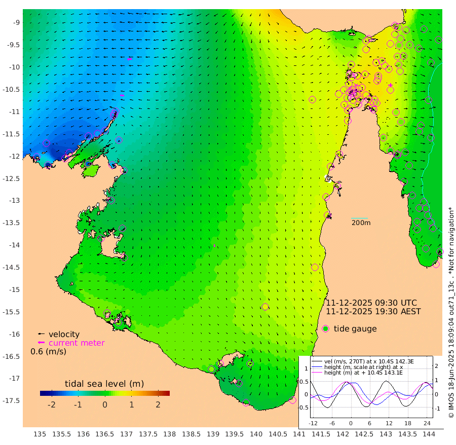 34cm/s -88T +3cm/s rms + 7cm/s -42T. ARA-GOC87 57m 22cm/s 174T +3cm/s rms + 2cm/s -2T. ARA-GOC87 60m 41cm/s -96T +2cm/s rms + 3cm/s 61T. ARA-GOC87 47m 49cm Daru 35cm Bobo Island 4cm Meer Island Barge 14cm Bramble Cay 33cm Unnamed Cay 30cm Pearce Cay 29cm Stephens Island 34cm Merrie England Shoals 50cm Mutacomal Reef 22cm Darnley Island Barge 10cm East Cay 33cm Yorke Island Barge 42cm Rennel Island 34cm Aureed Island 54cm Dungeness Reef 52cm Zagai Island 72cm Yam Island 58cm Dauan Island 54cm Saibai Island 72cm Phipi Reef 64cm Warrior Reef - West 59cm Mabuiag Island Barge 49cm Half Way Island 48cm Coconut Island 57cm Dugong Islet 59cm Poll Island 77cm Kirkcaldie Reef 63cm Suarji Island 59cm Sue Islet 77cm Hawkesbury Island 73cm Alert Patches 72cm Twin Island 62cm Badu Island 76cm St Pauls (Moa Island) 72cm Kubin (Moa Island) 74cm Ince Point 75cm Thursday Island 74cm Nardana Patches 70cm Turtle Head 65cm Round Island 63cm Goods Island 66cm Booby Island 59cm White Rocks Area 59cm Carpentaria 67cm Papou Point 46cm Bampfield Head 65cm Crab Island 71cm Red Wallis Island 80cm Packe Island 61cm Harrington Reef 86cm Herald Camp 30cm Sharp Point 78cm Red Island Point 65cm Possession Island 61cm Alpha Rock 66cm Frederick Point 42cm Wyborn Reef Light 47cm Tetley Island 10cm Triangle Reef 47cm Turtle Head Island 14cm Maclennan Cay -3cm Raine Island 30cm Mcsweeny Reef 23cm Collette Reef 8cm Shadwell Reef 23cm Hannibal Island 15cm Round Point 71cm Vrilya Point 20cm Cape Grenville 14cm Hicks Island 13cm Sir Charles Hardy Island 8cm Harvey Island 8cm Kay Reef 1cm Rocky Island -8cm Chapman Island -3cm Ham Reef 0cm Jubilee Reef 6cm Night Island -1cm Unnamed Reef No. 3 1cm Morris Island -3cm 1st 3 Mile Opening 3cm Creech Reef 0cm Fife Island -10cm Eden Reef 3cm Stanley Island 2cm Normanby River -163cm Yabooma Island -193cm Hutchison River -170cm Elcho Island -151cm North West Crocodile Island -138cm Cape Wessel -167cm Stevens Island -135cm Guluwuru Island -153cm Hopeful Bay -145cm Auster Point -134cm Two Island Bay -169cm Cadell Strait -158cm Mallison Island -125cm Melville Bay (Gove Harbour) -135cm Truant Island -90cm Cape Arnhem -63cm Cape Grey -48cm Hawk Island -33cm Milner Bay (Groote Eylandt) -13cm Cape Beatrice 27cm West Island 26cm Centre Island 39cm Mornington Island 31cm West Wellesley Islands 28cm Bountiful Island 0cm Albert River Mouth -16cm Sweers Island 29cm Karumba 68cm Nassau River Offshore 75cm Christmas Creek 57cm Archer River 52cm Boyd Point 52cm Weipa (Humbug Point) 57cm Pennefather River 66cm Cullen Point