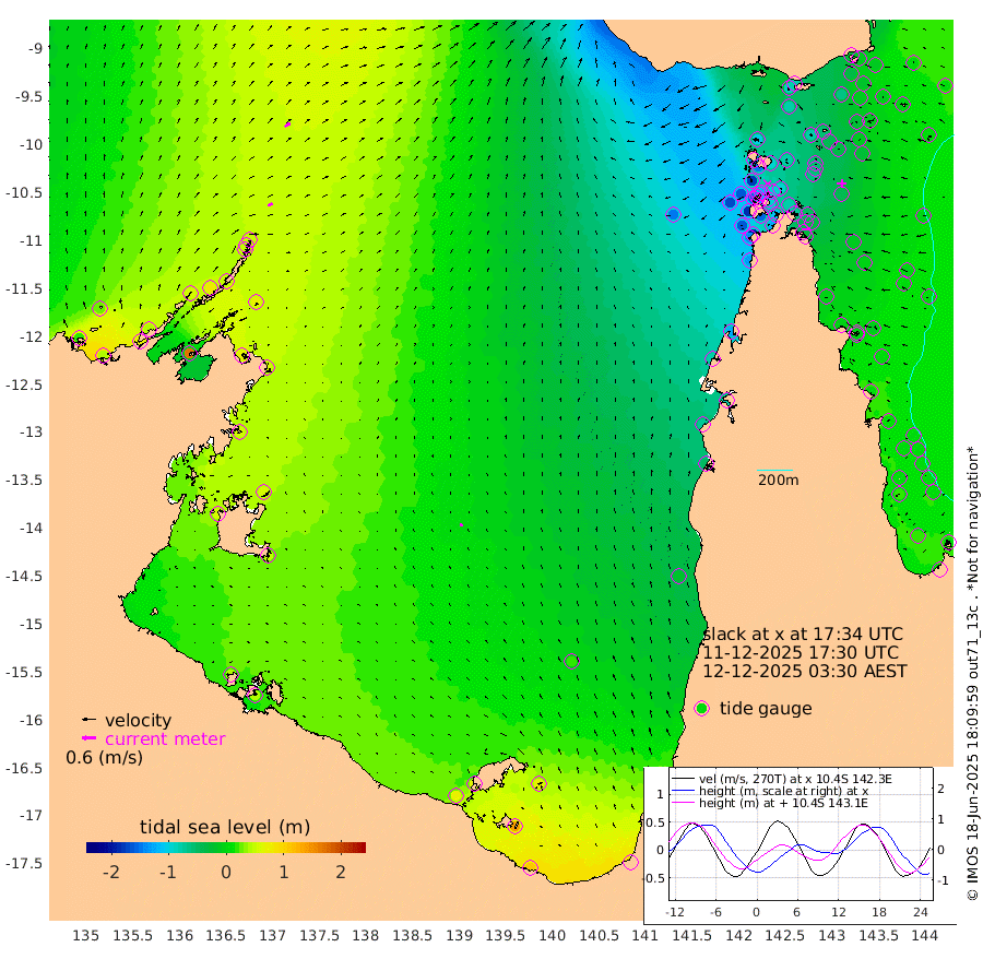 24cm/s 68T +3cm/s rms + 7cm/s -42T. ARA-GOC87 57m 13cm/s -22T +3cm/s rms + 2cm/s -2T. ARA-GOC87 60m 29cm/s 60T +2cm/s rms + 3cm/s 61T. ARA-GOC87 47m -27cm Daru -13cm Bobo Island 7cm Meer Island Barge 1cm Bramble Cay -20cm Unnamed Cay -9cm Pearce Cay -8cm Stephens Island -14cm Merrie England Shoals -35cm Mutacomal Reef -1cm Darnley Island Barge 4cm East Cay -13cm Yorke Island Barge -26cm Rennel Island -12cm Aureed Island -42cm Dungeness Reef -55cm Zagai Island -79cm Yam Island -84cm Dauan Island -77cm Saibai Island -81cm Phipi Reef -60cm Warrior Reef - West -104cm Mabuiag Island Barge -29cm Half Way Island -37cm Coconut Island -41cm Dugong Islet -58cm Poll Island -67cm Kirkcaldie Reef -78cm Suarji Island -56cm Sue Islet -176cm Hawkesbury Island -93cm Alert Patches -90cm Twin Island -146cm Badu Island -96cm St Pauls (Moa Island) -145cm Kubin (Moa Island) -110cm Ince Point -123cm Thursday Island -119cm Nardana Patches -132cm Turtle Head -155cm Round Island -154cm Goods Island -169cm Booby Island -162cm White Rocks Area -144cm Carpentaria -92cm Papou Point -181cm Bampfield Head -141cm Crab Island -163cm Red Wallis Island -152cm Packe Island -41cm Harrington Reef -188cm Herald Camp -26cm Sharp Point -125cm Red Island Point -111cm Possession Island -76cm Alpha Rock -68cm Frederick Point -37cm Wyborn Reef Light -46cm Tetley Island -6cm Triangle Reef -42cm Turtle Head Island -7cm Maclennan Cay 6cm Raine Island -11cm Mcsweeny Reef -6cm Collette Reef 2cm Shadwell Reef -3cm Hannibal Island -1cm Round Point -131cm Vrilya Point -6cm Cape Grenville -3cm Hicks Island -10cm Sir Charles Hardy Island -2cm Harvey Island 1cm Kay Reef 5cm Rocky Island 9cm Chapman Island 6cm Ham Reef 6cm Jubilee Reef 5cm Night Island 7cm Unnamed Reef No. 3 7cm Morris Island 2cm 1st 3 Mile Opening 5cm Creech Reef 22cm Fife Island 16cm Eden Reef 6cm Stanley Island 10cm Normanby River 22cm Yabooma Island 42cm Hutchison River 40cm Elcho Island 29cm North West Crocodile Island 51cm Cape Wessel 53cm Stevens Island 77cm Guluwuru Island 48cm Hopeful Bay 47cm Auster Point 39cm Two Island Bay 74cm Cadell Strait 172cm Mallison Island 70cm Melville Bay (Gove Harbour) 70cm Truant Island 59cm Cape Arnhem 55cm Cape Grey 53cm Hawk Island 56cm Milner Bay (Groote Eylandt) 52cm Cape Beatrice 45cm West Island 41cm Centre Island 65cm Mornington Island 68cm West Wellesley Islands 72cm Bountiful Island 112cm Albert River Mouth 140cm Sweers Island 92cm Karumba 22cm Nassau River Offshore -20cm Christmas Creek -52cm Archer River -73cm Boyd Point -80cm Weipa (Humbug Point) -75cm Pennefather River -123cm Cullen Point
