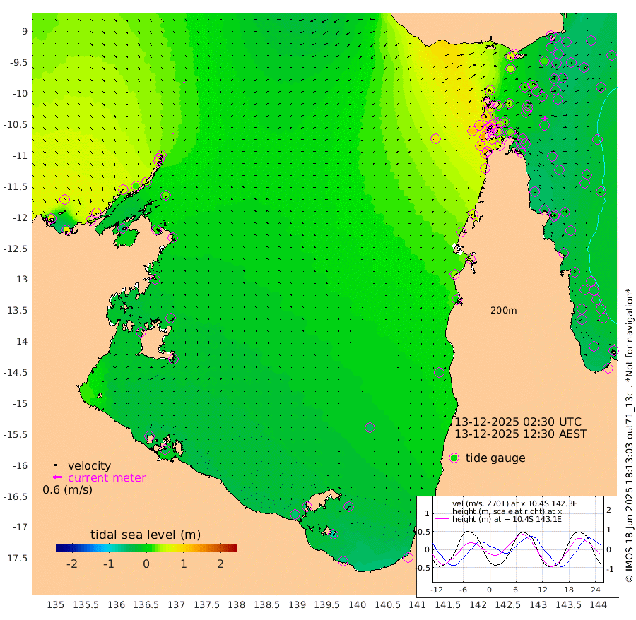 7cm/s 180T +3cm/s rms + 7cm/s -42T. ARA-GOC87 57m 4cm/s 6T +3cm/s rms + 2cm/s -2T. ARA-GOC87 60m 8cm/s 164T +2cm/s rms + 3cm/s 61T. ARA-GOC87 47m -24cm Daru -33cm Bobo Island -24cm Meer Island Barge -31cm Bramble Cay -24cm Unnamed Cay -34cm Pearce Cay -34cm Stephens Island -34cm Merrie England Shoals -21cm Mutacomal Reef -33cm Darnley Island Barge -30cm East Cay -27cm Yorke Island Barge -23cm Rennel Island -29cm Aureed Island -10cm Dungeness Reef 16cm Zagai Island 22cm Yam Island 62cm Dauan Island 53cm Saibai Island 42cm Phipi Reef 16cm Warrior Reef - West 66cm Mabuiag Island Barge -27cm Half Way Island -14cm Coconut Island -18cm Dugong Islet 4cm Poll Island -4cm Kirkcaldie Reef 31cm Suarji Island 4cm Sue Islet 105cm Hawkesbury Island 34cm Alert Patches 28cm Twin Island 100cm Badu Island 36cm St Pauls (Moa Island) 84cm Kubin (Moa Island) 51cm Ince Point 62cm Thursday Island 61cm Nardana Patches 77cm Turtle Head 96cm Round Island 101cm Goods Island 112cm Booby Island 110cm White Rocks Area 87cm Carpentaria 33cm Papou Point 135cm Bampfield Head 84cm Crab Island 101cm Red Wallis Island 82cm Packe Island -25cm Harrington Reef 113cm Herald Camp 4cm Sharp Point 56cm Red Island Point 52cm Possession Island 23cm Alpha Rock 5cm Frederick Point -13cm Wyborn Reef Light -7cm Tetley Island -14cm Triangle Reef -17cm Turtle Head Island -19cm Maclennan Cay -14cm Raine Island -28cm Mcsweeny Reef -28cm Collette Reef -19cm Shadwell Reef -34cm Hannibal Island -32cm Round Point 67cm Vrilya Point -29cm Cape Grenville -25cm Hicks Island -14cm Sir Charles Hardy Island -10cm Harvey Island -27cm Kay Reef -20cm Rocky Island -16cm Chapman Island -17cm Ham Reef -19cm Jubilee Reef -23cm Night Island -20cm Unnamed Reef No. 3 -23cm Morris Island -9cm 1st 3 Mile Opening -20cm Creech Reef -34cm Fife Island -26cm Eden Reef -24cm Stanley Island -32cm Normanby River 84cm Yabooma Island 82cm Hutchison River 70cm Elcho Island 66cm North West Crocodile Island 36cm Cape Wessel 55cm Stevens Island 16cm Guluwuru Island 51cm Hopeful Bay 47cm Auster Point 41cm Two Island Bay 35cm Cadell Strait -52cm Mallison Island 18cm Melville Bay (Gove Harbour) 23cm Truant Island 7cm Cape Arnhem -3cm Cape Grey -12cm Hawk Island -19cm Milner Bay (Groote Eylandt) -28cm Cape Beatrice -46cm West Island -44cm Centre Island -65cm Mornington Island -57cm West Wellesley Islands -52cm Bountiful Island -62cm Albert River Mouth -79cm Sweers Island -71cm Karumba -49cm Nassau River Offshore -20cm Christmas Creek 14cm Archer River 35cm Boyd Point 45cm Weipa (Humbug Point) 27cm Pennefather River 67cm Cullen Point