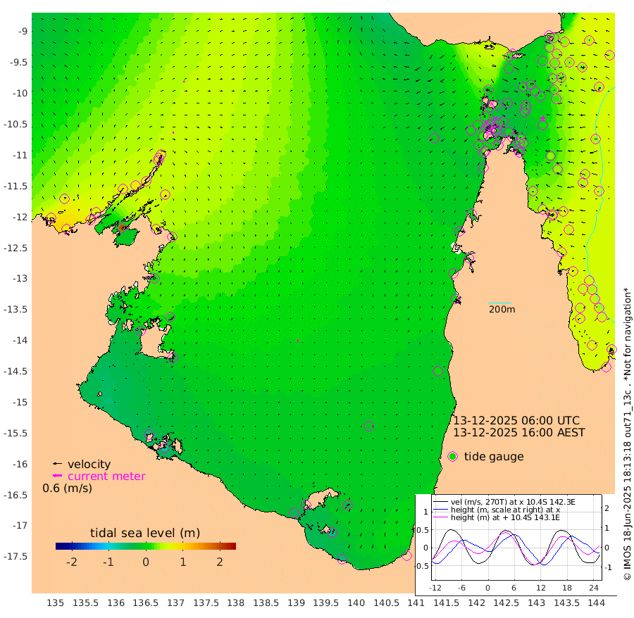 10cm/s 93T +3cm/s rms + 7cm/s -42T. ARA-GOC87 57m 16cm/s 176T +3cm/s rms + 2cm/s -2T. ARA-GOC87 60m 8cm/s 69T +2cm/s rms + 3cm/s 61T. ARA-GOC87 47m 23cm Daru 25cm Bobo Island 43cm Meer Island Barge 43cm Bramble Cay 32cm Unnamed Cay 26cm Pearce Cay 34cm Stephens Island 31cm Merrie England Shoals 24cm Mutacomal Reef 37cm Darnley Island Barge 50cm East Cay 28cm Yorke Island Barge 25cm Rennel Island 22cm Aureed Island 11cm Dungeness Reef 6cm Zagai Island 8cm Yam Island 19cm Dauan Island 21cm Saibai Island -1cm Phipi Reef 15cm Warrior Reef - West 0cm Mabuiag Island Barge 17cm Half Way Island 10cm Coconut Island 15cm Dugong Islet 3cm Poll Island 1cm Kirkcaldie Reef -11cm Suarji Island 7cm Sue Islet 15cm Hawkesbury Island -13cm Alert Patches -8cm Twin Island 3cm Badu Island -12cm St Pauls (Moa Island) 9cm Kubin (Moa Island) -8cm Ince Point -9cm Thursday Island -8cm Nardana Patches 1cm Turtle Head 11cm Round Island 6cm Goods Island 0cm Booby Island 1cm White Rocks Area -9cm Carpentaria -8cm Papou Point 19cm Bampfield Head -6cm Crab Island 5cm Red Wallis Island 12cm Packe Island 6cm Harrington Reef 29cm Herald Camp -9cm Sharp Point -4cm Red Island Point -8cm Possession Island 4cm Alpha Rock 2cm Frederick Point 22cm Wyborn Reef Light 19cm Tetley Island 39cm Triangle Reef 9cm Turtle Head Island 42cm Maclennan Cay 45cm Raine Island 30cm Mcsweeny Reef 34cm Collette Reef 42cm Shadwell Reef 36cm Hannibal Island 46cm Round Point -17cm Vrilya Point 41cm Cape Grenville 45cm Hicks Island 61cm Sir Charles Hardy Island 13cm Harvey Island 49cm Kay Reef 50cm Rocky Island 56cm Chapman Island 54cm Ham Reef 49cm Jubilee Reef 41cm Night Island 51cm Unnamed Reef No. 3 49cm Morris Island 42cm 1st 3 Mile Opening 46cm Creech Reef 57cm Fife Island 58cm Eden Reef 50cm Stanley Island 55cm Normanby River 73cm Yabooma Island 75cm Hutchison River 59cm Elcho Island 53cm North West Crocodile Island 72cm Cape Wessel 71cm Stevens Island 79cm Guluwuru Island 70cm Hopeful Bay 61cm Auster Point 68cm Two Island Bay 88cm Cadell Strait 192cm Mallison Island 67cm Melville Bay (Gove Harbour) 74cm Truant Island 46cm Cape Arnhem 13cm Cape Grey 3cm Hawk Island -31cm Milner Bay (Groote Eylandt) -34cm Cape Beatrice -65cm West Island -72cm Centre Island -43cm Mornington Island -40cm West Wellesley Islands -31cm Bountiful Island -59cm Albert River Mouth -72cm Sweers Island -56cm Karumba -13cm Nassau River Offshore 9cm Christmas Creek 9cm Archer River 14cm Boyd Point 19cm Weipa (Humbug Point) -19cm Pennefather River 6cm Cullen Point