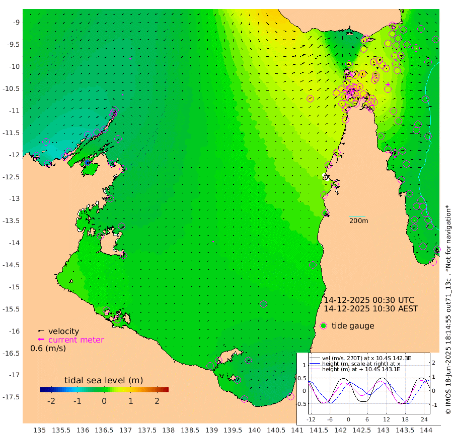 11cm/s -95T +3cm/s rms + 7cm/s -42T. ARA-GOC87 57m 9cm/s 32T +3cm/s rms + 2cm/s -2T. ARA-GOC87 60m 11cm/s -120T +2cm/s rms + 3cm/s 61T. ARA-GOC87 47m 37cm Daru 33cm Bobo Island 0cm Meer Island Barge 4cm Bramble Cay 28cm Unnamed Cay 27cm Pearce Cay 22cm Stephens Island 22cm Merrie England Shoals 38cm Mutacomal Reef 17cm Darnley Island Barge -2cm East Cay 30cm Yorke Island Barge 38cm Rennel Island 37cm Aureed Island 53cm Dungeness Reef 63cm Zagai Island 67cm Yam Island 53cm Dauan Island 49cm Saibai Island 56cm Phipi Reef 55cm Warrior Reef - West 67cm Mabuiag Island Barge 40cm Half Way Island 54cm Coconut Island 52cm Dugong Islet 63cm Poll Island 64cm Kirkcaldie Reef 91cm Suarji Island 59cm Sue Islet 64cm Hawkesbury Island 84cm Alert Patches 81cm Twin Island 68cm Badu Island 86cm St Pauls (Moa Island) 71cm Kubin (Moa Island) 80cm Ince Point 82cm Thursday Island 81cm Nardana Patches 75cm Turtle Head 75cm Round Island 72cm Goods Island 78cm Booby Island 81cm White Rocks Area 86cm Carpentaria 77cm Papou Point 97cm Bampfield Head 59cm Crab Island 71cm Red Wallis Island 66cm Packe Island 61cm Harrington Reef 73cm Herald Camp 24cm Sharp Point 61cm Red Island Point 82cm Possession Island 68cm Alpha Rock 68cm Frederick Point 45cm Wyborn Reef Light 49cm Tetley Island 6cm Triangle Reef 54cm Turtle Head Island 9cm Maclennan Cay -7cm Raine Island 25cm Mcsweeny Reef 17cm Collette Reef 1cm Shadwell Reef 16cm Hannibal Island 2cm Round Point 55cm Vrilya Point 8cm Cape Grenville 5cm Hicks Island 5cm Sir Charles Hardy Island 3cm Harvey Island -3cm Kay Reef -7cm Rocky Island -15cm Chapman Island -11cm Ham Reef -7cm Jubilee Reef -4cm Night Island -11cm Unnamed Reef No. 3 -6cm Morris Island 4cm 1st 3 Mile Opening -3cm Creech Reef -20cm Fife Island -15cm Eden Reef -7cm Stanley Island -11cm Normanby River -69cm Yabooma Island -73cm Hutchison River -68cm Elcho Island -68cm North West Crocodile Island -50cm Cape Wessel -76cm Stevens Island -51cm Guluwuru Island -76cm Hopeful Bay -51cm Auster Point -61cm Two Island Bay -97cm Cadell Strait -162cm Mallison Island -52cm Melville Bay (Gove Harbour) -50cm Truant Island -33cm Cape Arnhem -16cm Cape Grey -21cm Hawk Island -3cm Milner Bay (Groote Eylandt) -4cm Cape Beatrice 14cm West Island 21cm Centre Island -22cm Mornington Island -15cm West Wellesley Islands -33cm Bountiful Island -50cm Albert River Mouth -59cm Sweers Island -55cm Karumba -31cm Nassau River Offshore -14cm Christmas Creek 3cm Archer River 23cm Boyd Point 19cm Weipa (Humbug Point) 27cm Pennefather River 44cm Cullen Point