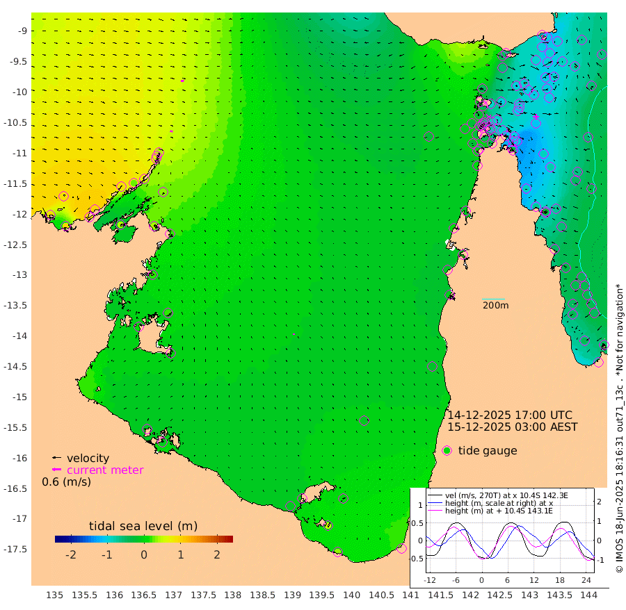 16cm/s 111T +3cm/s rms + 7cm/s -42T. ARA-GOC87 57m 9cm/s -25T +3cm/s rms + 2cm/s -2T. ARA-GOC87 60m 18cm/s 98T +2cm/s rms + 3cm/s 61T. ARA-GOC87 47m -99cm Daru -100cm Bobo Island -53cm Meer Island Barge -70cm Bramble Cay -94cm Unnamed Cay -91cm Pearce Cay -90cm Stephens Island -91cm Merrie England Shoals -105cm Mutacomal Reef -81cm Darnley Island Barge -62cm East Cay -90cm Yorke Island Barge -98cm Rennel Island -99cm Aureed Island -99cm Dungeness Reef -91cm Zagai Island -101cm Yam Island -52cm Dauan Island -55cm Saibai Island -59cm Phipi Reef -91cm Warrior Reef - West -47cm Mabuiag Island Barge -100cm Half Way Island -102cm Coconut Island -109cm Dugong Islet -100cm Poll Island -105cm Kirkcaldie Reef -105cm Suarji Island -93cm Sue Islet -24cm Hawkesbury Island -86cm Alert Patches -95cm Twin Island -19cm Badu Island -91cm St Pauls (Moa Island) -50cm Kubin (Moa Island) -73cm Ince Point -63cm Thursday Island -65cm Nardana Patches -48cm Turtle Head -43cm Round Island -26cm Goods Island -14cm Booby Island -26cm White Rocks Area -30cm Carpentaria -83cm Papou Point -35cm Bampfield Head -4cm Crab Island -25cm Red Wallis Island -48cm Packe Island -118cm Harrington Reef -48cm Herald Camp -28cm Sharp Point -42cm Red Island Point -71cm Possession Island -92cm Alpha Rock -102cm Frederick Point -102cm Wyborn Reef Light -102cm Tetley Island -54cm Triangle Reef -97cm Turtle Head Island -62cm Maclennan Cay -33cm Raine Island -86cm Mcsweeny Reef -76cm Collette Reef -49cm Shadwell Reef -83cm Hannibal Island -71cm Round Point 2cm Vrilya Point -71cm Cape Grenville -64cm Hicks Island -73cm Sir Charles Hardy Island -23cm Harvey Island -58cm Kay Reef -45cm Rocky Island -36cm Chapman Island -38cm Ham Reef -42cm Jubilee Reef -44cm Night Island -40cm Unnamed Reef No. 3 -47cm Morris Island -40cm 1st 3 Mile Opening -45cm Creech Reef -41cm Fife Island -45cm Eden Reef -47cm Stanley Island -55cm Normanby River 91cm Yabooma Island 96cm Hutchison River 93cm Elcho Island 89cm North West Crocodile Island 40cm Cape Wessel 85cm Stevens Island 29cm Guluwuru Island 81cm Hopeful Bay 61cm Auster Point 58cm Two Island Bay 90cm Cadell Strait 43cm Mallison Island 38cm Melville Bay (Gove Harbour) 36cm Truant Island 22cm Cape Arnhem 18cm Cape Grey 16cm Hawk Island 13cm Milner Bay (Groote Eylandt) 7cm Cape Beatrice -11cm West Island -12cm Centre Island -5cm Mornington Island -8cm West Wellesley Islands 1cm Bountiful Island 35cm Albert River Mouth 54cm Sweers Island 31cm Karumba -10cm Nassau River Offshore -21cm Christmas Creek -2cm Archer River -13cm Boyd Point -7cm Weipa (Humbug Point) 11cm Pennefather River -11cm Cullen Point