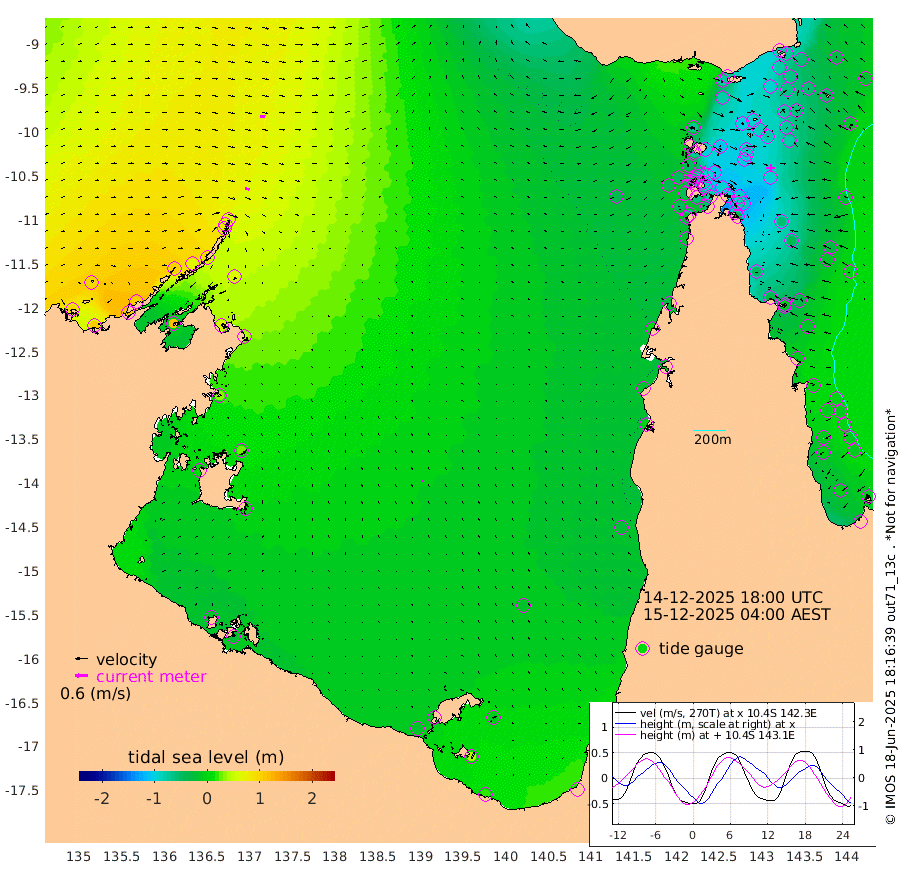 22cm/s 104T +3cm/s rms + 7cm/s -42T. ARA-GOC87 57m 7cm/s -21T +3cm/s rms + 2cm/s -2T. ARA-GOC87 60m 23cm/s 93T +2cm/s rms + 3cm/s 61T. ARA-GOC87 47m -77cm Daru -71cm Bobo Island -20cm Meer Island Barge -35cm Bramble Cay -63cm Unnamed Cay -61cm Pearce Cay -57cm Stephens Island -57cm Merrie England Shoals -81cm Mutacomal Reef -47cm Darnley Island Barge -25cm East Cay -64cm Yorke Island Barge -72cm Rennel Island -72cm Aureed Island -85cm Dungeness Reef -90cm Zagai Island -105cm Yam Island -75cm Dauan Island -72cm Saibai Island -78cm Phipi Reef -94cm Warrior Reef - West -69cm Mabuiag Island Barge -77cm Half Way Island -82cm Coconut Island -90cm Dugong Islet -94cm Poll Island -98cm Kirkcaldie Reef -109cm Suarji Island -87cm Sue Islet -50cm Hawkesbury Island -92cm Alert Patches -99cm Twin Island -43cm Badu Island -103cm St Pauls (Moa Island) -70cm Kubin (Moa Island) -87cm Ince Point -80cm Thursday Island -82cm Nardana Patches -66cm Turtle Head -63cm Round Island -46cm Goods Island -38cm Booby Island -47cm White Rocks Area -43cm Carpentaria -91cm Papou Point -50cm Bampfield Head -24cm Crab Island -47cm Red Wallis Island -67cm Packe Island -97cm Harrington Reef -72cm Herald Camp -34cm Sharp Point -56cm Red Island Point -81cm Possession Island -93cm Alpha Rock -95cm Frederick Point -79cm Wyborn Reef Light -84cm Tetley Island -28cm Triangle Reef -76cm Turtle Head Island -32cm Maclennan Cay -3cm Raine Island -56cm Mcsweeny Reef -45cm Collette Reef -19cm Shadwell Reef -47cm Hannibal Island -34cm Round Point -17cm Vrilya Point -37cm Cape Grenville -31cm Hicks Island -38cm Sir Charles Hardy Island -13cm Harvey Island -20cm Kay Reef -12cm Rocky Island -2cm Chapman Island -5cm Ham Reef -9cm Jubilee Reef -15cm Night Island -6cm Unnamed Reef No. 3 -11cm Morris Island -9cm 1st 3 Mile Opening -12cm Creech Reef -4cm Fife Island -4cm Eden Reef -11cm Stanley Island -15cm Normanby River 93cm Yabooma Island 108cm Hutchison River 101cm Elcho Island 92cm North West Crocodile Island 61cm Cape Wessel 98cm Stevens Island 61cm Guluwuru Island 94cm Hopeful Bay 75cm Auster Point 69cm Two Island Bay 108cm Cadell Strait 114cm Mallison Island 62cm Melville Bay (Gove Harbour) 62cm Truant Island 41cm Cape Arnhem 30cm Cape Grey 23cm Hawk Island 11cm Milner Bay (Groote Eylandt) 4cm Cape Beatrice -22cm West Island -24cm Centre Island -12cm Mornington Island -15cm West Wellesley Islands -9cm Bountiful Island 18cm Albert River Mouth 38cm Sweers Island 13cm Karumba -18cm Nassau River Offshore -25cm Christmas Creek -6cm Archer River -18cm Boyd Point -14cm Weipa (Humbug Point) 1cm Pennefather River -28cm Cullen Point