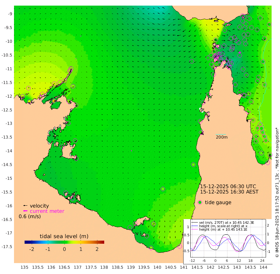 6cm/s -66T +3cm/s rms + 7cm/s -42T. ARA-GOC87 57m 10cm/s -151T +3cm/s rms + 2cm/s -2T. ARA-GOC87 60m 6cm/s -65T +2cm/s rms + 3cm/s 61T. ARA-GOC87 47m -17cm Daru -24cm Bobo Island 9cm Meer Island Barge 4cm Bramble Cay -8cm Unnamed Cay -25cm Pearce Cay -11cm Stephens Island -10cm Merrie England Shoals -16cm Mutacomal Reef -7cm Darnley Island Barge 12cm East Cay -16cm Yorke Island Barge -17cm Rennel Island -25cm Aureed Island -25cm Dungeness Reef -22cm Zagai Island -17cm Yam Island 11cm Dauan Island 9cm Saibai Island -5cm Phipi Reef -12cm Warrior Reef - West -6cm Mabuiag Island Barge -25cm Half Way Island -30cm Coconut Island -26cm Dugong Islet -30cm Poll Island -29cm Kirkcaldie Reef -35cm Suarji Island -25cm Sue Islet 9cm Hawkesbury Island -34cm Alert Patches -34cm Twin Island 7cm Badu Island -34cm St Pauls (Moa Island) 0cm Kubin (Moa Island) -23cm Ince Point -19cm Thursday Island -19cm Nardana Patches -4cm Turtle Head 6cm Round Island 9cm Goods Island 7cm Booby Island 6cm White Rocks Area -11cm Carpentaria -30cm Papou Point 14cm Bampfield Head 3cm Crab Island 6cm Red Wallis Island 5cm Packe Island -40cm Harrington Reef 25cm Herald Camp -13cm Sharp Point -10cm Red Island Point -26cm Possession Island -24cm Alpha Rock -34cm Frederick Point -22cm Wyborn Reef Light -24cm Tetley Island 5cm Triangle Reef -39cm Turtle Head Island 9cm Maclennan Cay 21cm Raine Island -11cm Mcsweeny Reef -4cm Collette Reef 12cm Shadwell Reef -6cm Hannibal Island 3cm Round Point -11cm Vrilya Point 5cm Cape Grenville 9cm Hicks Island 24cm Sir Charles Hardy Island 1cm Harvey Island 16cm Kay Reef 21cm Rocky Island 25cm Chapman Island 24cm Ham Reef 20cm Jubilee Reef 12cm Night Island 21cm Unnamed Reef No. 3 19cm Morris Island 18cm 1st 3 Mile Opening 17cm Creech Reef 22cm Fife Island 23cm Eden Reef 20cm Stanley Island 19cm Normanby River 67cm Yabooma Island 65cm Hutchison River 56cm Elcho Island 54cm North West Crocodile Island 36cm Cape Wessel 53cm Stevens Island 38cm Guluwuru Island 54cm Hopeful Bay 35cm Auster Point 38cm Two Island Bay 52cm Cadell Strait 100cm Mallison Island 35cm Melville Bay (Gove Harbour) 34cm Truant Island 21cm Cape Arnhem 9cm Cape Grey 3cm Hawk Island -9cm Milner Bay (Groote Eylandt) -8cm Cape Beatrice -24cm West Island -32cm Centre Island 5cm Mornington Island 7cm West Wellesley Islands 35cm Bountiful Island 32cm Albert River Mouth 14cm Sweers Island 27cm Karumba 24cm Nassau River Offshore 30cm Christmas Creek 20cm Archer River 16cm Boyd Point 29cm Weipa (Humbug Point) -13cm Pennefather River 8cm Cullen Point