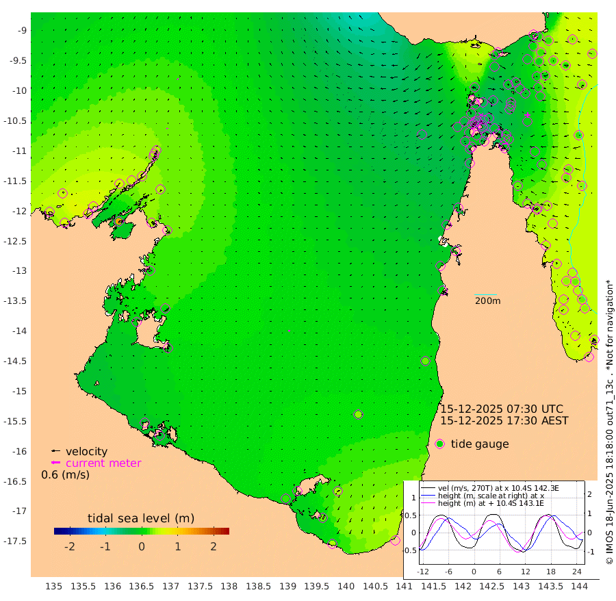 6cm/s -34T +3cm/s rms + 7cm/s -42T. ARA-GOC87 57m 10cm/s -154T +3cm/s rms + 2cm/s -2T. ARA-GOC87 60m 6cm/s -32T +2cm/s rms + 3cm/s 61T. ARA-GOC87 47m 5cm Daru 4cm Bobo Island 29cm Meer Island Barge 31cm Bramble Cay 18cm Unnamed Cay 3cm Pearce Cay 17cm Stephens Island 21cm Merrie England Shoals 10cm Mutacomal Reef 19cm Darnley Island Barge 36cm East Cay 7cm Yorke Island Barge 6cm Rennel Island 0cm Aureed Island -10cm Dungeness Reef -19cm Zagai Island -14cm Yam Island -14cm Dauan Island -10cm Saibai Island -21cm Phipi Reef -11cm Warrior Reef - West -29cm Mabuiag Island Barge -1cm Half Way Island -11cm Coconut Island -6cm Dugong Islet -20cm Poll Island -17cm Kirkcaldie Reef -37cm Suarji Island -18cm Sue Islet -27cm Hawkesbury Island -40cm Alert Patches -35cm Twin Island -31cm Badu Island -41cm St Pauls (Moa Island) -25cm Kubin (Moa Island) -36cm Ince Point -39cm Thursday Island -38cm Nardana Patches -30cm Turtle Head -23cm Round Island -27cm Goods Island -35cm Booby Island -32cm White Rocks Area -43cm Carpentaria -35cm Papou Point -29cm Bampfield Head -32cm Crab Island -30cm Red Wallis Island -20cm Packe Island -15cm Harrington Reef -10cm Herald Camp -14cm Sharp Point -30cm Red Island Point -38cm Possession Island -20cm Alpha Rock -23cm Frederick Point 1cm Wyborn Reef Light -4cm Tetley Island 22cm Triangle Reef -19cm Turtle Head Island 27cm Maclennan Cay 34cm Raine Island 13cm Mcsweeny Reef 19cm Collette Reef 29cm Shadwell Reef 23cm Hannibal Island 31cm Round Point -42cm Vrilya Point 30cm Cape Grenville 31cm Hicks Island 44cm Sir Charles Hardy Island 8cm Harvey Island 40cm Kay Reef 38cm Rocky Island 42cm Chapman Island 40cm Ham Reef 36cm Jubilee Reef 30cm Night Island 39cm Unnamed Reef No. 3 38cm Morris Island 29cm 1st 3 Mile Opening 33cm Creech Reef 43cm Fife Island 45cm Eden Reef 39cm Stanley Island 44cm Normanby River 58cm Yabooma Island 60cm Hutchison River 52cm Elcho Island 50cm North West Crocodile Island 43cm Cape Wessel 54cm Stevens Island 49cm Guluwuru Island 56cm Hopeful Bay 36cm Auster Point 42cm Two Island Bay 58cm Cadell Strait 140cm Mallison Island 43cm Melville Bay (Gove Harbour) 42cm Truant Island 27cm Cape Arnhem 12cm Cape Grey 10cm Hawk Island -4cm Milner Bay (Groote Eylandt) -2cm Cape Beatrice -17cm West Island -24cm Centre Island 16cm Mornington Island 15cm West Wellesley Islands 40cm Bountiful Island 38cm Albert River Mouth 24cm Sweers Island 35cm Karumba 30cm Nassau River Offshore 29cm Christmas Creek 8cm Archer River -2cm Boyd Point 7cm Weipa (Humbug Point) -32cm Pennefather River -19cm Cullen Point