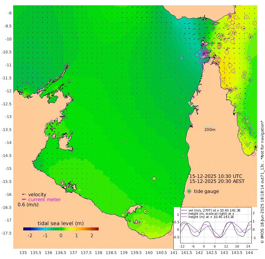 10cm/s -32T +3cm/s rms + 7cm/s -42T. ARA-GOC87 57m 4cm/s -161T +3cm/s rms + 2cm/s -2T. ARA-GOC87 60m 11cm/s -34T +2cm/s rms + 3cm/s 61T. ARA-GOC87 47m 52cm Daru 58cm Bobo Island 28cm Meer Island Barge 46cm Bramble Cay 53cm Unnamed Cay 53cm Pearce Cay 52cm Stephens Island 58cm Merrie England Shoals 61cm Mutacomal Reef 45cm Darnley Island Barge 38cm East Cay 47cm Yorke Island Barge 50cm Rennel Island 53cm Aureed Island 40cm Dungeness Reef 24cm Zagai Island 30cm Yam Island -22cm Dauan Island -14cm Saibai Island -11cm Phipi Reef 26cm Warrior Reef - West -30cm Mabuiag Island Barge 54cm Half Way Island 45cm Coconut Island 52cm Dugong Islet 36cm Poll Island 38cm Kirkcaldie Reef 15cm Suarji Island 29cm Sue Islet -66cm Hawkesbury Island 0cm Alert Patches 14cm Twin Island -72cm Badu Island 7cm St Pauls (Moa Island) -38cm Kubin (Moa Island) -12cm Ince Point -26cm Thursday Island -23cm Nardana Patches -45cm Turtle Head -50cm Round Island -71cm Goods Island -89cm Booby Island -76cm White Rocks Area -72cm Carpentaria 7cm Papou Point -93cm Bampfield Head -76cm Crab Island -69cm Red Wallis Island -36cm Packe Island 57cm Harrington Reef -56cm Herald Camp 8cm Sharp Point -35cm Red Island Point -16cm Possession Island 25cm Alpha Rock 33cm Frederick Point 52cm Wyborn Reef Light 49cm Tetley Island 27cm Triangle Reef 40cm Turtle Head Island 30cm Maclennan Cay 12cm Raine Island 47cm Mcsweeny Reef 42cm Collette Reef 24cm Shadwell Reef 50cm Hannibal Island 48cm Round Point -73cm Vrilya Point 44cm Cape Grenville 35cm Hicks Island 35cm Sir Charles Hardy Island 13cm Harvey Island 36cm Kay Reef 23cm Rocky Island 19cm Chapman Island 18cm Ham Reef 19cm Jubilee Reef 25cm Night Island 21cm Unnamed Reef No. 3 25cm Morris Island 7cm 1st 3 Mile Opening 20cm Creech Reef 29cm Fife Island 27cm Eden Reef 25cm Stanley Island 38cm Normanby River -32cm Yabooma Island -32cm Hutchison River -28cm Elcho Island -22cm North West Crocodile Island -2cm Cape Wessel -15cm Stevens Island 0cm Guluwuru Island -14cm Hopeful Bay -18cm Auster Point -5cm Two Island Bay -12cm Cadell Strait 52cm Mallison Island -3cm Melville Bay (Gove Harbour) -5cm Truant Island -1cm Cape Arnhem -4cm Cape Grey 11cm Hawk Island 12cm Milner Bay (Groote Eylandt) 19cm Cape Beatrice 31cm West Island 29cm Centre Island 42cm Mornington Island 37cm West Wellesley Islands 39cm Bountiful Island 42cm Albert River Mouth 39cm Sweers Island 46cm Karumba 36cm Nassau River Offshore 14cm Christmas Creek -26cm Archer River -37cm Boyd Point -43cm Weipa (Humbug Point) -50cm Pennefather River -55cm Cullen Point