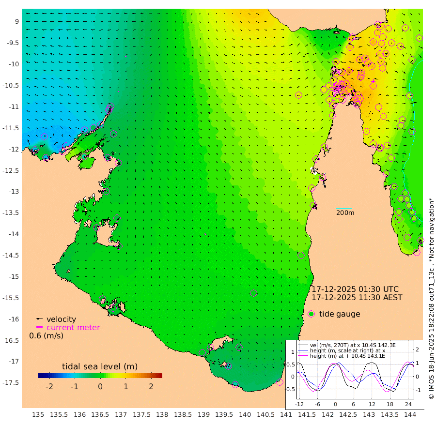 6cm/s -119T +3cm/s rms + 7cm/s -42T. ARA-GOC87 57m 15cm/s 154T +3cm/s rms + 2cm/s -2T. ARA-GOC87 60m 11cm/s -112T +2cm/s rms + 3cm/s 61T. ARA-GOC87 47m 96cm Daru 97cm Bobo Island 42cm Meer Island Barge 53cm Bramble Cay 79cm Unnamed Cay 94cm Pearce Cay 76cm Stephens Island 71cm Merrie England Shoals 93cm Mutacomal Reef 71cm Darnley Island Barge 46cm East Cay 87cm Yorke Island Barge 93cm Rennel Island 101cm Aureed Island 109cm Dungeness Reef 115cm Zagai Island 113cm Yam Island 105cm Dauan Island 103cm Saibai Island 111cm Phipi Reef 118cm Warrior Reef - West 99cm Mabuiag Island Barge 91cm Half Way Island 111cm Coconut Island 105cm Dugong Islet 115cm Poll Island 113cm Kirkcaldie Reef 140cm Suarji Island 111cm Sue Islet 85cm Hawkesbury Island 128cm Alert Patches 127cm Twin Island 90cm Badu Island 129cm St Pauls (Moa Island) 93cm Kubin (Moa Island) 115cm Ince Point 110cm Thursday Island 111cm Nardana Patches 102cm Turtle Head 87cm Round Island 86cm Goods Island 80cm Booby Island 84cm White Rocks Area 79cm Carpentaria 113cm Papou Point 97cm Bampfield Head 61cm Crab Island 80cm Red Wallis Island 89cm Packe Island 119cm Harrington Reef 86cm Herald Camp 36cm Sharp Point 92cm Red Island Point 112cm Possession Island 107cm Alpha Rock 120cm Frederick Point 99cm Wyborn Reef Light 103cm Tetley Island 52cm Triangle Reef 106cm Turtle Head Island 51cm Maclennan Cay 27cm Raine Island 79cm Mcsweeny Reef 68cm Collette Reef 42cm Shadwell Reef 69cm Hannibal Island 55cm Round Point 55cm Vrilya Point 52cm Cape Grenville 49cm Hicks Island 54cm Sir Charles Hardy Island 17cm Harvey Island 39cm Kay Reef 33cm Rocky Island 31cm Chapman Island 29cm Ham Reef 32cm Jubilee Reef 32cm Night Island 32cm Unnamed Reef No. 3 33cm Morris Island 35cm 1st 3 Mile Opening 36cm Creech Reef 28cm Fife Island 29cm Eden Reef 31cm Stanley Island 32cm Normanby River -116cm Yabooma Island -119cm Hutchison River -118cm Elcho Island -117cm North West Crocodile Island -58cm Cape Wessel -109cm Stevens Island -41cm Guluwuru Island -104cm Hopeful Bay -71cm Auster Point -84cm Two Island Bay -103cm Cadell Strait -76cm Mallison Island -47cm Melville Bay (Gove Harbour) -43cm Truant Island -25cm Cape Arnhem -20cm Cape Grey -25cm Hawk Island -31cm Milner Bay (Groote Eylandt) -28cm Cape Beatrice -17cm West Island -12cm Centre Island -21cm Mornington Island -15cm West Wellesley Islands -35cm Bountiful Island -82cm Albert River Mouth -90cm Sweers Island -72cm Karumba -6cm Nassau River Offshore 22cm Christmas Creek 31cm Archer River 46cm Boyd Point 40cm Weipa (Humbug Point) 36cm Pennefather River 51cm Cullen Point