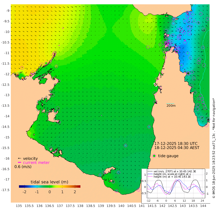 15cm/s 121T +3cm/s rms + 7cm/s -42T. ARA-GOC87 57m 15cm/s 9T +3cm/s rms + 2cm/s -2T. ARA-GOC87 60m 17cm/s 116T +2cm/s rms + 3cm/s 61T. ARA-GOC87 47m -109cm Daru -110cm Bobo Island -49cm Meer Island Barge -74cm Bramble Cay -97cm Unnamed Cay -102cm Pearce Cay -89cm Stephens Island -94cm Merrie England Shoals -115cm Mutacomal Reef -81cm Darnley Island Barge -60cm East Cay -95cm Yorke Island Barge -101cm Rennel Island -108cm Aureed Island -109cm Dungeness Reef -109cm Zagai Island -111cm Yam Island -86cm Dauan Island -90cm Saibai Island -100cm Phipi Reef -119cm Warrior Reef - West -60cm Mabuiag Island Barge -98cm Half Way Island -111cm Coconut Island -109cm Dugong Islet -109cm Poll Island -109cm Kirkcaldie Reef -117cm Suarji Island -103cm Sue Islet -4cm Hawkesbury Island -91cm Alert Patches -98cm Twin Island -18cm Badu Island -97cm St Pauls (Moa Island) -31cm Kubin (Moa Island) -71cm Ince Point -56cm Thursday Island -60cm Nardana Patches -40cm Turtle Head -16cm Round Island -5cm Goods Island 21cm Booby Island 4cm White Rocks Area 28cm Carpentaria -83cm Papou Point 22cm Bampfield Head 26cm Crab Island 7cm Red Wallis Island -29cm Packe Island -118cm Harrington Reef -6cm Herald Camp -33cm Sharp Point -40cm Red Island Point -58cm Possession Island -94cm Alpha Rock -106cm Frederick Point -107cm Wyborn Reef Light -108cm Tetley Island -57cm Triangle Reef -90cm Turtle Head Island -56cm Maclennan Cay -30cm Raine Island -89cm Mcsweeny Reef -81cm Collette Reef -50cm Shadwell Reef -87cm Hannibal Island -74cm Round Point 37cm Vrilya Point -68cm Cape Grenville -60cm Hicks Island -70cm Sir Charles Hardy Island -20cm Harvey Island -56cm Kay Reef -44cm Rocky Island -42cm Chapman Island -36cm Ham Reef -39cm Jubilee Reef -39cm Night Island -40cm Unnamed Reef No. 3 -42cm Morris Island -30cm 1st 3 Mile Opening -40cm Creech Reef -40cm Fife Island -42cm Eden Reef -40cm Stanley Island -50cm Normanby River 92cm Yabooma Island 91cm Hutchison River 92cm Elcho Island 85cm North West Crocodile Island 45cm Cape Wessel 78cm Stevens Island 21cm Guluwuru Island 74cm Hopeful Bay 64cm Auster Point 71cm Two Island Bay 73cm Cadell Strait -9cm Mallison Island 28cm Melville Bay (Gove Harbour) 32cm Truant Island 15cm Cape Arnhem 6cm Cape Grey 0cm Hawk Island 0cm Milner Bay (Groote Eylandt) -11cm Cape Beatrice -27cm West Island -26cm Centre Island -62cm Mornington Island -66cm West Wellesley Islands -80cm Bountiful Island -59cm Albert River Mouth -42cm Sweers Island -60cm Karumba -69cm Nassau River Offshore -61cm Christmas Creek -18cm Archer River -7cm Boyd Point -7cm Weipa (Humbug Point) 25cm Pennefather River 19cm Cullen Point