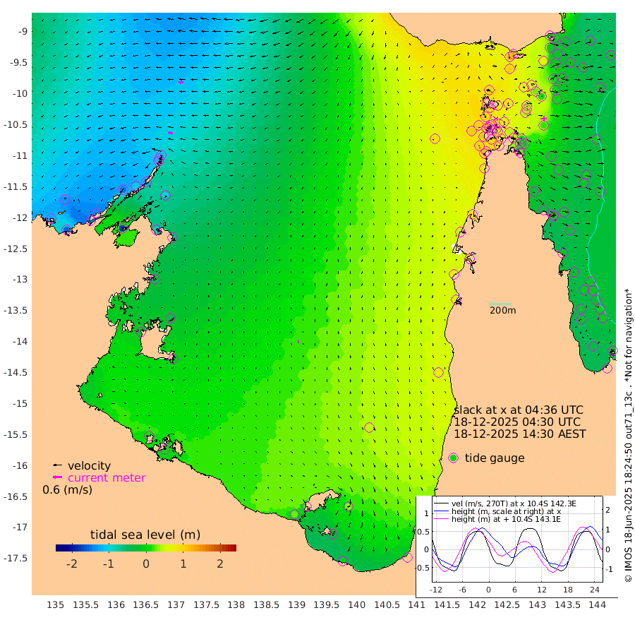 29cm/s -88T +3cm/s rms + 7cm/s -42T. ARA-GOC87 57m 16cm/s 177T +3cm/s rms + 2cm/s -2T. ARA-GOC87 60m 33cm/s -96T +2cm/s rms + 3cm/s 61T. ARA-GOC87 47m 7cm Daru -6cm Bobo Island -16cm Meer Island Barge -29cm Bramble Cay -15cm Unnamed Cay -8cm Pearce Cay -13cm Stephens Island -29cm Merrie England Shoals -8cm Mutacomal Reef -11cm Darnley Island Barge -18cm East Cay 1cm Yorke Island Barge 2cm Rennel Island 6cm Aureed Island 29cm Dungeness Reef 55cm Zagai Island 62cm Yam Island 113cm Dauan Island 101cm Saibai Island 104cm Phipi Reef 71cm Warrior Reef - West 94cm Mabuiag Island Barge 1cm Half Way Island 15cm Coconut Island 17cm Dugong Islet 39cm Poll Island 42cm Kirkcaldie Reef 78cm Suarji Island 44cm Sue Islet 102cm Hawkesbury Island 73cm Alert Patches 65cm Twin Island 104cm Badu Island 80cm St Pauls (Moa Island) 92cm Kubin (Moa Island) 83cm Ince Point 90cm Thursday Island 89cm Nardana Patches 99cm Turtle Head 92cm Round Island 102cm Goods Island 109cm Booby Island 100cm White Rocks Area 89cm Carpentaria 66cm Papou Point 108cm Bampfield Head 91cm Crab Island 101cm Red Wallis Island 91cm Packe Island 14cm Harrington Reef 120cm Herald Camp 25cm Sharp Point 88cm Red Island Point 77cm Possession Island 44cm Alpha Rock 42cm Frederick Point -3cm Wyborn Reef Light 5cm Tetley Island -6cm Triangle Reef 3cm Turtle Head Island -4cm Maclennan Cay -12cm Raine Island -9cm Mcsweeny Reef -14cm Collette Reef -13cm Shadwell Reef -24cm Hannibal Island -30cm Round Point 80cm Vrilya Point -22cm Cape Grenville -14cm Hicks Island -4cm Sir Charles Hardy Island -4cm Harvey Island -28cm Kay Reef -15cm Rocky Island -16cm Chapman Island -13cm Ham Reef -14cm Jubilee Reef -15cm Night Island -16cm Unnamed Reef No. 3 -20cm Morris Island -6cm 1st 3 Mile Opening -12cm Creech Reef -19cm Fife Island -30cm Eden Reef -22cm Stanley Island -30cm Normanby River -123cm Yabooma Island -151cm Hutchison River -139cm Elcho Island -129cm North West Crocodile Island -107cm Cape Wessel -146cm Stevens Island -103cm Guluwuru Island -131cm Hopeful Bay -110cm Auster Point -115cm Two Island Bay -142cm Cadell Strait -179cm Mallison Island -94cm Melville Bay (Gove Harbour) -98cm Truant Island -62cm Cape Arnhem -39cm Cape Grey -41cm Hawk Island -28cm Milner Bay (Groote Eylandt) -17cm Cape Beatrice 10cm West Island 10cm Centre Island 22cm Mornington Island 28cm West Wellesley Islands 37cm Bountiful Island -3cm Albert River Mouth -15cm Sweers Island 13cm Karumba 45cm Nassau River Offshore 65cm Christmas Creek 61cm Archer River 71cm Boyd Point 77cm Weipa (Humbug Point) 52cm Pennefather River 83cm Cullen Point