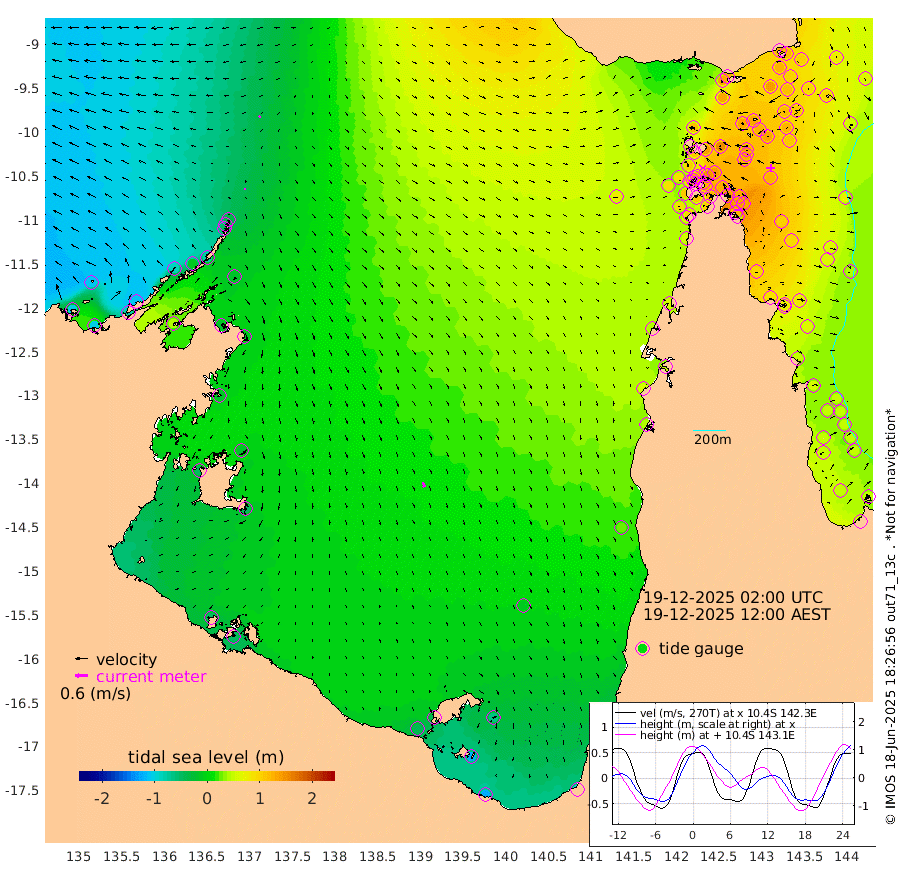 5cm/s 168T +3cm/s rms + 7cm/s -42T. ARA-GOC87 57m 25cm/s 162T +3cm/s rms + 2cm/s -2T. ARA-GOC87 60m 7cm/s -117T +2cm/s rms + 3cm/s 61T. ARA-GOC87 47m 121cm Daru 121cm Bobo Island 59cm Meer Island Barge 78cm Bramble Cay 104cm Unnamed Cay 116cm Pearce Cay 97cm Stephens Island 99cm Merrie England Shoals 122cm Mutacomal Reef 92cm Darnley Island Barge 67cm East Cay 109cm Yorke Island Barge 115cm Rennel Island 121cm Aureed Island 126cm Dungeness Reef 133cm Zagai Island 130cm Yam Island 128cm Dauan Island 127cm Saibai Island 130cm Phipi Reef 141cm Warrior Reef - West 114cm Mabuiag Island Barge 108cm Half Way Island 133cm Coconut Island 122cm Dugong Islet 133cm Poll Island 127cm Kirkcaldie Reef 152cm Suarji Island 131cm Sue Islet 103cm Hawkesbury Island 143cm Alert Patches 142cm Twin Island 103cm Badu Island 142cm St Pauls (Moa Island) 107cm Kubin (Moa Island) 127cm Ince Point 120cm Thursday Island 122cm Nardana Patches 113cm Turtle Head 104cm Round Island 95cm Goods Island 84cm Booby Island 88cm White Rocks Area 76cm Carpentaria 123cm Papou Point 111cm Bampfield Head 64cm Crab Island 88cm Red Wallis Island 107cm Packe Island 136cm Harrington Reef 103cm Herald Camp 39cm Sharp Point 100cm Red Island Point 124cm Possession Island 128cm Alpha Rock 139cm Frederick Point 129cm Wyborn Reef Light 133cm Tetley Island 73cm Triangle Reef 127cm Turtle Head Island 66cm Maclennan Cay 42cm Raine Island 102cm Mcsweeny Reef 93cm Collette Reef 63cm Shadwell Reef 95cm Hannibal Island 84cm Round Point 54cm Vrilya Point 75cm Cape Grenville 68cm Hicks Island 77cm Sir Charles Hardy Island 23cm Harvey Island 62cm Kay Reef 52cm Rocky Island 55cm Chapman Island 49cm Ham Reef 49cm Jubilee Reef 48cm Night Island 52cm Unnamed Reef No. 3 50cm Morris Island 46cm 1st 3 Mile Opening 51cm Creech Reef 51cm Fife Island 48cm Eden Reef 49cm Stanley Island 51cm Normanby River -102cm Yabooma Island -103cm Hutchison River -107cm Elcho Island -109cm North West Crocodile Island -35cm Cape Wessel -84cm Stevens Island -14cm Guluwuru Island -78cm Hopeful Bay -52cm Auster Point -65cm Two Island Bay -76cm Cadell Strait 39cm Mallison Island -22cm Melville Bay (Gove Harbour) -15cm Truant Island -8cm Cape Arnhem -20cm Cape Grey -21cm Hawk Island -49cm Milner Bay (Groote Eylandt) -47cm Cape Beatrice -52cm West Island -47cm Centre Island -42cm Mornington Island -38cm West Wellesley Islands -61cm Bountiful Island -120cm Albert River Mouth -126cm Sweers Island -103cm Karumba -12cm Nassau River Offshore 27cm Christmas Creek 40cm Archer River 55cm Boyd Point 48cm Weipa (Humbug Point) 40cm Pennefather River 58cm Cullen Point