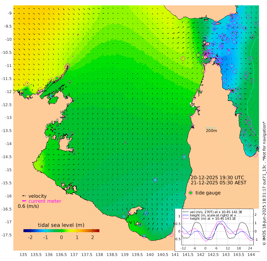 9cm/s 129T +3cm/s rms + 7cm/s -42T. ARA-GOC87 57m 23cm/s 15T +3cm/s rms + 2cm/s -2T. ARA-GOC87 60m 16cm/s 132T +2cm/s rms + 3cm/s 61T. ARA-GOC87 47m -125cm Daru -117cm Bobo Island -54cm Meer Island Barge -85cm Bramble Cay -111cm Unnamed Cay -110cm Pearce Cay -95cm Stephens Island -110cm Merrie England Shoals -131cm Mutacomal Reef -89cm Darnley Island Barge -65cm East Cay -105cm Yorke Island Barge -109cm Rennel Island -111cm Aureed Island -119cm Dungeness Reef -118cm Zagai Island -119cm Yam Island -115cm Dauan Island -114cm Saibai Island -138cm Phipi Reef -136cm Warrior Reef - West -76cm Mabuiag Island Barge -101cm Half Way Island -117cm Coconut Island -112cm Dugong Islet -115cm Poll Island -115cm Kirkcaldie Reef -117cm Suarji Island -115cm Sue Islet -23cm Hawkesbury Island -101cm Alert Patches -102cm Twin Island -35cm Badu Island -103cm St Pauls (Moa Island) -39cm Kubin (Moa Island) -77cm Ince Point -60cm Thursday Island -65cm Nardana Patches -48cm Turtle Head -31cm Round Island -10cm Goods Island 25cm Booby Island 12cm White Rocks Area 59cm Carpentaria -83cm Papou Point 23cm Bampfield Head 26cm Crab Island 14cm Red Wallis Island -33cm Packe Island -117cm Harrington Reef -15cm Herald Camp -36cm Sharp Point -47cm Red Island Point -67cm Possession Island -100cm Alpha Rock -110cm Frederick Point -122cm Wyborn Reef Light -122cm Tetley Island -63cm Triangle Reef -102cm Turtle Head Island -56cm Maclennan Cay -34cm Raine Island -99cm Mcsweeny Reef -95cm Collette Reef -62cm Shadwell Reef -101cm Hannibal Island -87cm Round Point 41cm Vrilya Point -75cm Cape Grenville -67cm Hicks Island -73cm Sir Charles Hardy Island -22cm Harvey Island -64cm Kay Reef -50cm Rocky Island -50cm Chapman Island -41cm Ham Reef -44cm Jubilee Reef -43cm Night Island -43cm Unnamed Reef No. 3 -47cm Morris Island -34cm 1st 3 Mile Opening -42cm Creech Reef -46cm Fife Island -47cm Eden Reef -47cm Stanley Island -53cm Normanby River 62cm Yabooma Island 59cm Hutchison River 68cm Elcho Island 61cm North West Crocodile Island 38cm Cape Wessel 46cm Stevens Island 3cm Guluwuru Island 41cm Hopeful Bay 45cm Auster Point 53cm Two Island Bay 34cm Cadell Strait -91cm Mallison Island 6cm Melville Bay (Gove Harbour) 12cm Truant Island 2cm Cape Arnhem -3cm Cape Grey -15cm Hawk Island 4cm Milner Bay (Groote Eylandt) -7cm Cape Beatrice -9cm West Island -8cm Centre Island -76cm Mornington Island -75cm West Wellesley Islands -104cm Bountiful Island -84cm Albert River Mouth -80cm Sweers Island -96cm Karumba -91cm Nassau River Offshore -81cm Christmas Creek -36cm Archer River -13cm Boyd Point -17cm Weipa (Humbug Point) 15cm Pennefather River 21cm Cullen Point