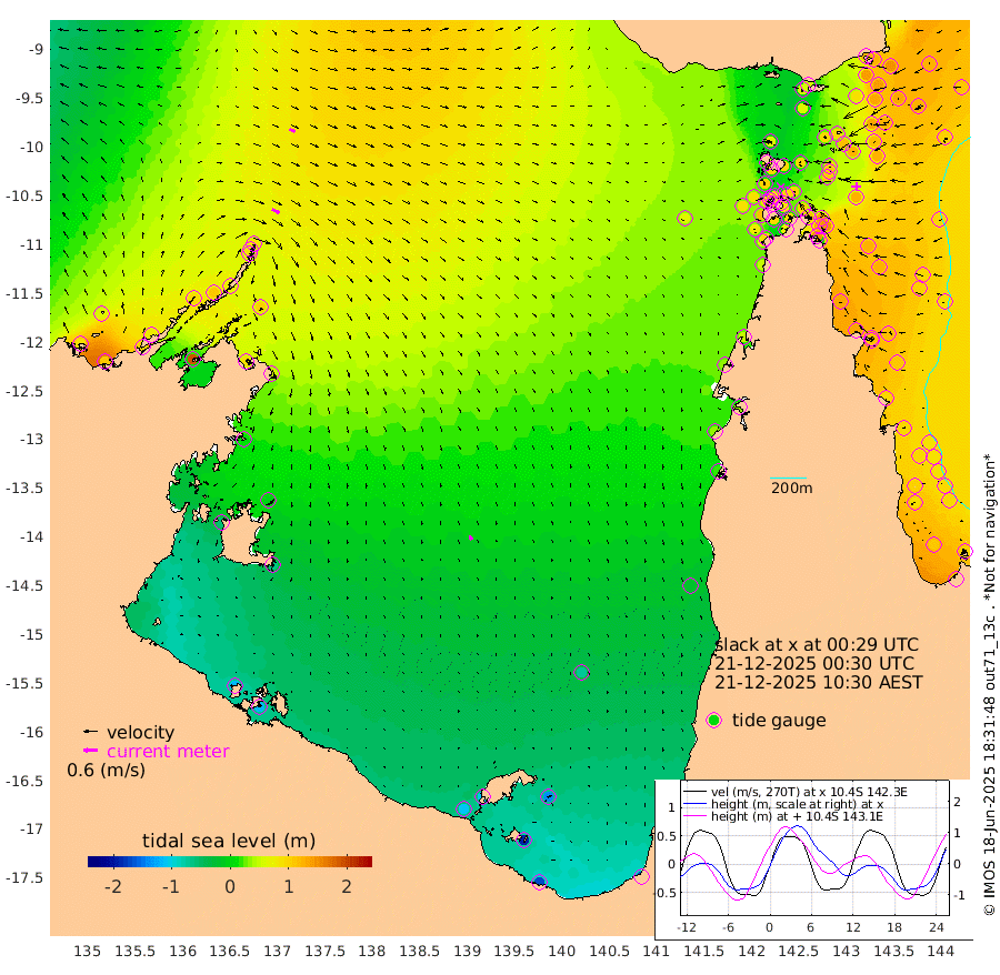 34cm/s 118T +3cm/s rms + 7cm/s -42T. ARA-GOC87 57m 19cm/s 160T +3cm/s rms + 2cm/s -2T. ARA-GOC87 60m 26cm/s 113T +2cm/s rms + 3cm/s 61T. ARA-GOC87 47m 127cm Daru 127cm Bobo Island 100cm Meer Island Barge 125cm Bramble Cay 140cm Unnamed Cay 131cm Pearce Cay 128cm Stephens Island 143cm Merrie England Shoals 140cm Mutacomal Reef 121cm Darnley Island Barge 106cm East Cay 121cm Yorke Island Barge 129cm Rennel Island 117cm Aureed Island 116cm Dungeness Reef 91cm Zagai Island 92cm Yam Island 60cm Dauan Island 55cm Saibai Island 65cm Phipi Reef 87cm Warrior Reef - West 62cm Mabuiag Island Barge 124cm Half Way Island 125cm Coconut Island 123cm Dugong Islet 108cm Poll Island 109cm Kirkcaldie Reef 91cm Suarji Island 101cm Sue Islet 102cm Hawkesbury Island 102cm Alert Patches 101cm Twin Island 89cm Badu Island 91cm St Pauls (Moa Island) 95cm Kubin (Moa Island) 89cm Ince Point 86cm Thursday Island 86cm Nardana Patches 90cm Turtle Head 98cm Round Island 93cm Goods Island 83cm Booby Island 87cm White Rocks Area 61cm Carpentaria 85cm Papou Point 119cm Bampfield Head 62cm Crab Island 80cm Red Wallis Island 96cm Packe Island 129cm Harrington Reef 93cm Herald Camp 14cm Sharp Point 70cm Red Island Point 93cm Possession Island 101cm Alpha Rock 114cm Frederick Point 143cm Wyborn Reef Light 138cm Tetley Island 96cm Triangle Reef 148cm Turtle Head Island 96cm Maclennan Cay 84cm Raine Island 125cm Mcsweeny Reef 122cm Collette Reef 101cm Shadwell Reef 134cm Hannibal Island 131cm Round Point 52cm Vrilya Point 117cm Cape Grenville 108cm Hicks Island 114cm Sir Charles Hardy Island 34cm Harvey Island 112cm Kay Reef 93cm Rocky Island 93cm Chapman Island 87cm Ham Reef 92cm Jubilee Reef 84cm Night Island 89cm Unnamed Reef No. 3 98cm Morris Island 92cm 1st 3 Mile Opening 92cm Creech Reef 87cm Fife Island 109cm Eden Reef 101cm Stanley Island 106cm Normanby River 84cm Yabooma Island 112cm Hutchison River 80cm Elcho Island 66cm North West Crocodile Island 83cm Cape Wessel 95cm Stevens Island 107cm Guluwuru Island 81cm Hopeful Bay 84cm Auster Point 80cm Two Island Bay 104cm Cadell Strait 189cm Mallison Island 85cm Melville Bay (Gove Harbour) 98cm Truant Island 58cm Cape Arnhem 14cm Cape Grey -1cm Hawk Island -58cm Milner Bay (Groote Eylandt) -66cm Cape Beatrice -119cm West Island -116cm Centre Island -112cm Mornington Island -111cm West Wellesley Islands -138cm Bountiful Island -171cm Albert River Mouth -189cm Sweers Island -169cm Karumba -73cm Nassau River Offshore -21cm Christmas Creek 20cm Archer River 37cm Boyd Point 36cm Weipa (Humbug Point) 37cm Pennefather River 46cm Cullen Point