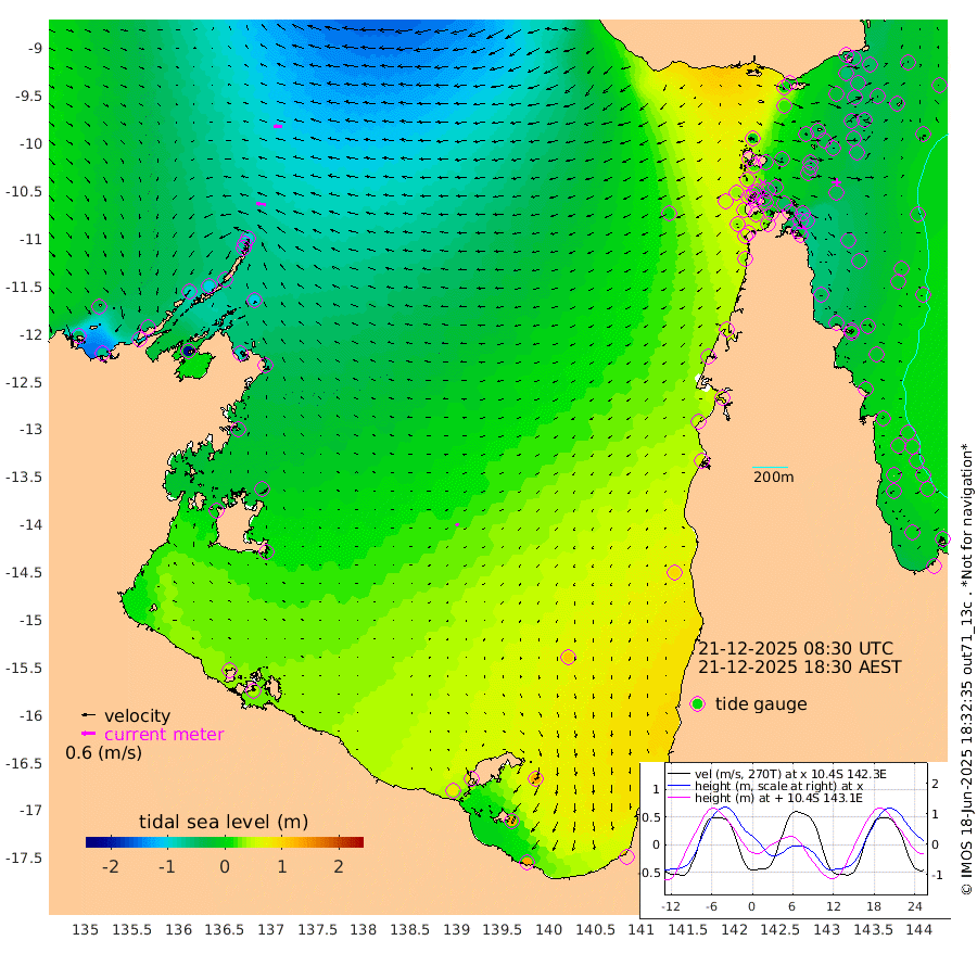 40cm/s -85T +3cm/s rms + 7cm/s -42T. ARA-GOC87 57m 15cm/s -131T +3cm/s rms + 2cm/s -2T. ARA-GOC87 60m 38cm/s -91T +2cm/s rms + 3cm/s 61T. ARA-GOC87 47m -46cm Daru -52cm Bobo Island -13cm Meer Island Barge -30cm Bramble Cay -44cm Unnamed Cay -45cm Pearce Cay -35cm Stephens Island -47cm Merrie England Shoals -55cm Mutacomal Reef -33cm Darnley Island Barge -11cm East Cay -42cm Yorke Island Barge -41cm Rennel Island -45cm Aureed Island -33cm Dungeness Reef -41cm Zagai Island -27cm Yam Island 1cm Dauan Island -11cm Saibai Island 22cm Phipi Reef -26cm Warrior Reef - West -8cm Mabuiag Island Barge -41cm Half Way Island -51cm Coconut Island -41cm Dugong Islet -43cm Poll Island -29cm Kirkcaldie Reef -30cm Suarji Island -42cm Sue Islet 37cm Hawkesbury Island -26cm Alert Patches -34cm Twin Island 25cm Badu Island -31cm St Pauls (Moa Island) 17cm Kubin (Moa Island) -13cm Ince Point -2cm Thursday Island -5cm Nardana Patches 19cm Turtle Head 29cm Round Island 38cm Goods Island 46cm Booby Island 34cm White Rocks Area 14cm Carpentaria -26cm Papou Point 32cm Bampfield Head 45cm Crab Island 36cm Red Wallis Island 27cm Packe Island -52cm Harrington Reef 64cm Herald Camp -8cm Sharp Point 29cm Red Island Point -2cm Possession Island -48cm Alpha Rock -43cm Frederick Point -65cm Wyborn Reef Light -65cm Tetley Island -20cm Triangle Reef -58cm Turtle Head Island -8cm Maclennan Cay 1cm Raine Island -42cm Mcsweeny Reef -36cm Collette Reef -15cm Shadwell Reef -40cm Hannibal Island -32cm Round Point 36cm Vrilya Point -21cm Cape Grenville -12cm Hicks Island -10cm Sir Charles Hardy Island -4cm Harvey Island -15cm Kay Reef -2cm Rocky Island -4cm Chapman Island -2cm Ham Reef -5cm Jubilee Reef -4cm Night Island -4cm Unnamed Reef No. 3 -4cm Morris Island 1cm 1st 3 Mile Opening -1cm Creech Reef -8cm Fife Island -3cm Eden Reef -4cm Stanley Island -7cm Normanby River -45cm Yabooma Island -61cm Hutchison River -51cm Elcho Island -38cm North West Crocodile Island -95cm Cape Wessel -86cm Stevens Island -104cm Guluwuru Island -63cm Hopeful Bay -80cm Auster Point -74cm Two Island Bay -85cm Cadell Strait -221cm Mallison Island -85cm Melville Bay (Gove Harbour) -101cm Truant Island -67cm Cape Arnhem -34cm Cape Grey -20cm Hawk Island -3cm Milner Bay (Groote Eylandt) 14cm Cape Beatrice 40cm West Island 42cm Centre Island 91cm Mornington Island 80cm West Wellesley Islands 130cm Bountiful Island 128cm Albert River Mouth 122cm Sweers Island 150cm Karumba 106cm Nassau River Offshore 93cm Christmas Creek 67cm Archer River 47cm Boyd Point 67cm Weipa (Humbug Point) 32cm Pennefather River 46cm Cullen Point