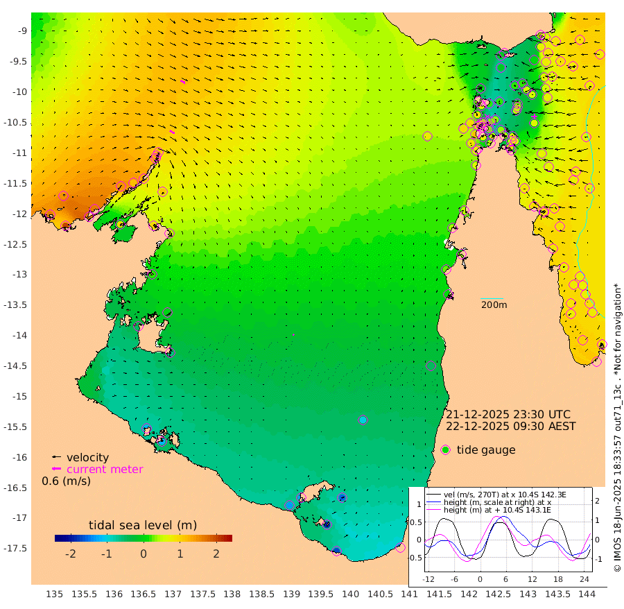 38cm/s 121T +3cm/s rms + 7cm/s -42T. ARA-GOC87 57m 7cm/s 137T +3cm/s rms + 2cm/s -2T. ARA-GOC87 60m 35cm/s 118T +2cm/s rms + 3cm/s 61T. ARA-GOC87 47m 58cm Daru 63cm Bobo Island 80cm Meer Island Barge 88cm Bramble Cay 84cm Unnamed Cay 76cm Pearce Cay 83cm Stephens Island 88cm Merrie England Shoals 68cm Mutacomal Reef 77cm Darnley Island Barge 82cm East Cay 66cm Yorke Island Barge 71cm Rennel Island 56cm Aureed Island 53cm Dungeness Reef 16cm Zagai Island 22cm Yam Island -13cm Dauan Island -23cm Saibai Island -12cm Phipi Reef 4cm Warrior Reef - West 7cm Mabuiag Island Barge 73cm Half Way Island 55cm Coconut Island 64cm Dugong Islet 39cm Poll Island 45cm Kirkcaldie Reef 16cm Suarji Island 29cm Sue Islet 89cm Hawkesbury Island 35cm Alert Patches 35cm Twin Island 67cm Badu Island 22cm St Pauls (Moa Island) 70cm Kubin (Moa Island) 37cm Ince Point 44cm Thursday Island 41cm Nardana Patches 60cm Turtle Head 75cm Round Island 89cm Goods Island 95cm Booby Island 94cm White Rocks Area 75cm Carpentaria 31cm Papou Point 119cm Bampfield Head 74cm Crab Island 84cm Red Wallis Island 74cm Packe Island 63cm Harrington Reef 82cm Herald Camp -12cm Sharp Point 44cm Red Island Point 47cm Possession Island 32cm Alpha Rock 44cm Frederick Point 69cm Wyborn Reef Light 62cm Tetley Island 65cm Triangle Reef 91cm Turtle Head Island 75cm Maclennan Cay 77cm Raine Island 73cm Mcsweeny Reef 73cm Collette Reef 73cm Shadwell Reef 84cm Hannibal Island 91cm Round Point 67cm Vrilya Point 83cm Cape Grenville 83cm Hicks Island 84cm Sir Charles Hardy Island 25cm Harvey Island 87cm Kay Reef 77cm Rocky Island 74cm Chapman Island 73cm Ham Reef 78cm Jubilee Reef 69cm Night Island 73cm Unnamed Reef No. 3 84cm Morris Island 87cm 1st 3 Mile Opening 80cm Creech Reef 68cm Fife Island 101cm Eden Reef 87cm Stanley Island 92cm Normanby River 165cm Yabooma Island 198cm Hutchison River 162cm Elcho Island 146cm North West Crocodile Island 115cm Cape Wessel 149cm Stevens Island 119cm Guluwuru Island 131cm Hopeful Bay 128cm Auster Point 132cm Two Island Bay 160cm Cadell Strait 96cm Mallison Island 98cm Melville Bay (Gove Harbour) 110cm Truant Island 61cm Cape Arnhem 19cm Cape Grey -5cm Hawk Island -50cm Milner Bay (Groote Eylandt) -61cm Cape Beatrice -118cm West Island -116cm Centre Island -133cm Mornington Island -132cm West Wellesley Islands -155cm Bountiful Island -167cm Albert River Mouth -191cm Sweers Island -175cm Karumba -99cm Nassau River Offshore -49cm Christmas Creek 7cm Archer River 29cm Boyd Point 33cm Weipa (Humbug Point) 40cm Pennefather River 51cm Cullen Point