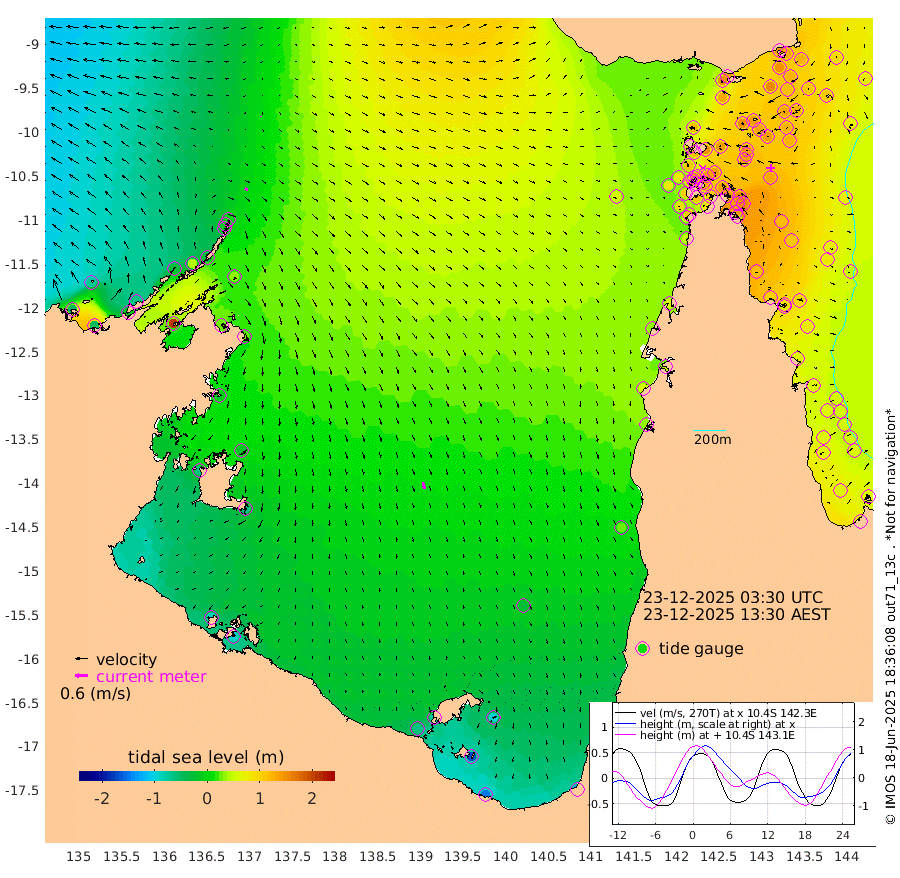 15cm/s 119T +3cm/s rms + 7cm/s -42T. ARA-GOC87 57m 34cm/s 164T +3cm/s rms + 2cm/s -2T. ARA-GOC87 60m 3cm/s 154T +2cm/s rms + 3cm/s 61T. ARA-GOC87 47m 142cm Daru 128cm Bobo Island 71cm Meer Island Barge 97cm Bramble Cay 127cm Unnamed Cay 120cm Pearce Cay 112cm Stephens Island 123cm Merrie England Shoals 146cm Mutacomal Reef 107cm Darnley Island Barge 77cm East Cay 122cm Yorke Island Barge 129cm Rennel Island 122cm Aureed Island 133cm Dungeness Reef 141cm Zagai Island 144cm Yam Island 148cm Dauan Island 140cm Saibai Island 132cm Phipi Reef 153cm Warrior Reef - West 118cm Mabuiag Island Barge 122cm Half Way Island 138cm Coconut Island 135cm Dugong Islet 140cm Poll Island 137cm Kirkcaldie Reef 138cm Suarji Island 140cm Sue Islet 105cm Hawkesbury Island 139cm Alert Patches 140cm Twin Island 105cm Badu Island 143cm St Pauls (Moa Island) 114cm Kubin (Moa Island) 128cm Ince Point 119cm Thursday Island 121cm Nardana Patches 113cm Turtle Head 104cm Round Island 93cm Goods Island 76cm Booby Island 79cm White Rocks Area 60cm Carpentaria 120cm Papou Point 100cm Bampfield Head 59cm Crab Island 84cm Red Wallis Island 112cm Packe Island 139cm Harrington Reef 106cm Herald Camp 39cm Sharp Point 86cm Red Island Point 112cm Possession Island 140cm Alpha Rock 142cm Frederick Point 150cm Wyborn Reef Light 153cm Tetley Island 82cm Triangle Reef 139cm Turtle Head Island 74cm Maclennan Cay 52cm Raine Island 119cm Mcsweeny Reef 110cm Collette Reef 79cm Shadwell Reef 114cm Hannibal Island 101cm Round Point 49cm Vrilya Point 89cm Cape Grenville 81cm Hicks Island 95cm Sir Charles Hardy Island 27cm Harvey Island 76cm Kay Reef 62cm Rocky Island 62cm Chapman Island 58cm Ham Reef 62cm Jubilee Reef 59cm Night Island 59cm Unnamed Reef No. 3 62cm Morris Island 58cm 1st 3 Mile Opening 61cm Creech Reef 67cm Fife Island 60cm Eden Reef 64cm Stanley Island 64cm Normanby River -50cm Yabooma Island -52cm Hutchison River -64cm Elcho Island -69cm North West Crocodile Island 5cm Cape Wessel -25cm Stevens Island 42cm Guluwuru Island -32cm Hopeful Bay -14cm Auster Point -16cm Two Island Bay -11cm Cadell Strait 204cm Mallison Island 25cm Melville Bay (Gove Harbour) 35cm Truant Island 24cm Cape Arnhem -11cm Cape Grey -19cm Hawk Island -62cm Milner Bay (Groote Eylandt) -62cm Cape Beatrice -87cm West Island -91cm Centre Island -71cm Mornington Island -64cm West Wellesley Islands -96cm Bountiful Island -145cm Albert River Mouth -171cm Sweers Island -138cm Karumba -25cm Nassau River Offshore 24cm Christmas Creek 35cm Archer River 53cm Boyd Point 47cm Weipa (Humbug Point) 35cm Pennefather River 56cm Cullen Point