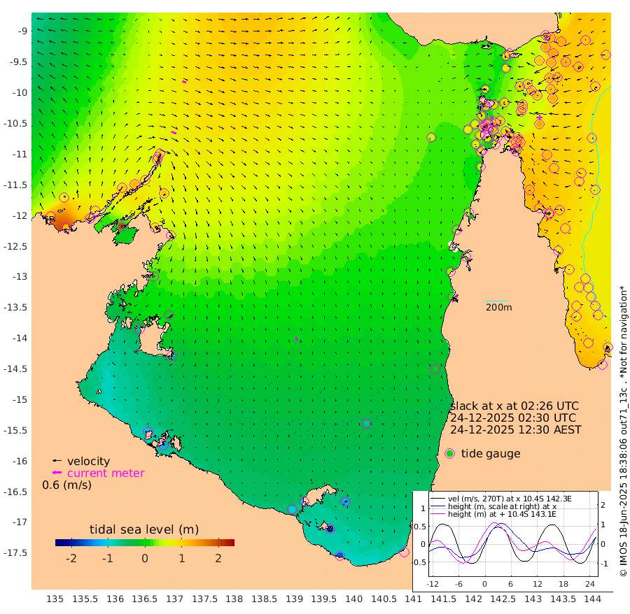 35cm/s 113T +3cm/s rms + 7cm/s -42T. ARA-GOC87 57m 24cm/s 163T +3cm/s rms + 2cm/s -2T. ARA-GOC87 60m 26cm/s 108T +2cm/s rms + 3cm/s 61T. ARA-GOC87 47m 128cm Daru 123cm Bobo Island 93cm Meer Island Barge 112cm Bramble Cay 130cm Unnamed Cay 125cm Pearce Cay 122cm Stephens Island 127cm Merrie England Shoals 132cm Mutacomal Reef 115cm Darnley Island Barge 96cm East Cay 120cm Yorke Island Barge 125cm Rennel Island 115cm Aureed Island 120cm Dungeness Reef 105cm Zagai Island 110cm Yam Island 97cm Dauan Island 84cm Saibai Island 84cm Phipi Reef 109cm Warrior Reef - West 78cm Mabuiag Island Barge 123cm Half Way Island 119cm Coconut Island 128cm Dugong Islet 115cm Poll Island 116cm Kirkcaldie Reef 98cm Suarji Island 109cm Sue Islet 100cm Hawkesbury Island 102cm Alert Patches 106cm Twin Island 93cm Badu Island 104cm St Pauls (Moa Island) 101cm Kubin (Moa Island) 96cm Ince Point 92cm Thursday Island 93cm Nardana Patches 95cm Turtle Head 88cm Round Island 92cm Goods Island 77cm Booby Island 82cm White Rocks Area 49cm Carpentaria 94cm Papou Point 95cm Bampfield Head 57cm Crab Island 77cm Red Wallis Island 94cm Packe Island 126cm Harrington Reef 89cm Herald Camp 19cm Sharp Point 70cm Red Island Point 86cm Possession Island 104cm Alpha Rock 115cm Frederick Point 134cm Wyborn Reef Light 132cm Tetley Island 88cm Triangle Reef 142cm Turtle Head Island 91cm Maclennan Cay 76cm Raine Island 119cm Mcsweeny Reef 111cm Collette Reef 90cm Shadwell Reef 120cm Hannibal Island 114cm Round Point 43cm Vrilya Point 101cm Cape Grenville 99cm Hicks Island 109cm Sir Charles Hardy Island 31cm Harvey Island 94cm Kay Reef 82cm Rocky Island 79cm Chapman Island 76cm Ham Reef 84cm Jubilee Reef 75cm Night Island 76cm Unnamed Reef No. 3 86cm Morris Island 85cm 1st 3 Mile Opening 83cm Creech Reef 82cm Fife Island 95cm Eden Reef 88cm Stanley Island 94cm Normanby River 93cm Yabooma Island 114cm Hutchison River 79cm Elcho Island 68cm North West Crocodile Island 90cm Cape Wessel 95cm Stevens Island 121cm Guluwuru Island 74cm Hopeful Bay 86cm Auster Point 90cm Two Island Bay 126cm Cadell Strait 201cm Mallison Island 94cm Melville Bay (Gove Harbour) 108cm Truant Island 65cm Cape Arnhem 19cm Cape Grey -7cm Hawk Island -60cm Milner Bay (Groote Eylandt) -66cm Cape Beatrice -118cm West Island -124cm Centre Island -111cm Mornington Island -102cm West Wellesley Islands -126cm Bountiful Island -159cm Albert River Mouth -193cm Sweers Island -165cm Karumba -64cm Nassau River Offshore -12cm Christmas Creek 15cm Archer River 36cm Boyd Point 36cm Weipa (Humbug Point) 25cm Pennefather River 41cm Cullen Point