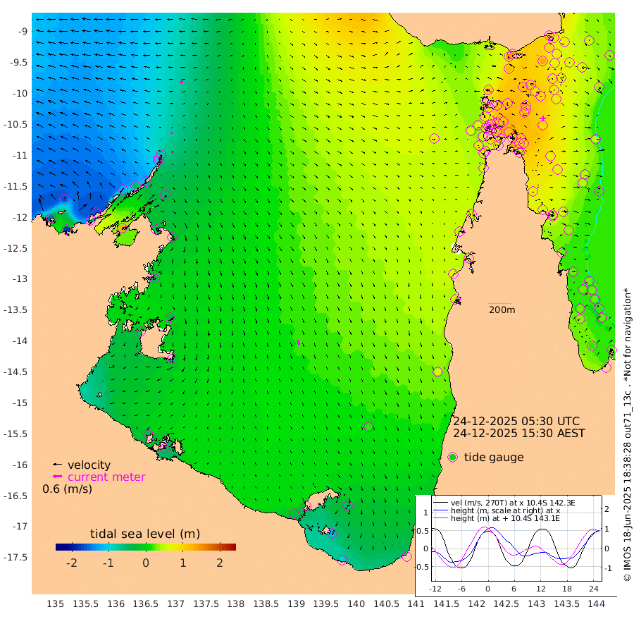11cm/s -89T +3cm/s rms + 7cm/s -42T. ARA-GOC87 57m 35cm/s 166T +3cm/s rms + 2cm/s -2T. ARA-GOC87 60m 23cm/s -91T +2cm/s rms + 3cm/s 61T. ARA-GOC87 47m 97cm Daru 78cm Bobo Island 31cm Meer Island Barge 47cm Bramble Cay 74cm Unnamed Cay 64cm Pearce Cay 62cm Stephens Island 71cm Merrie England Shoals 97cm Mutacomal Reef 59cm Darnley Island Barge 36cm East Cay 75cm Yorke Island Barge 80cm Rennel Island 76cm Aureed Island 90cm Dungeness Reef 112cm Zagai Island 118cm Yam Island 136cm Dauan Island 134cm Saibai Island 116cm Phipi Reef 129cm Warrior Reef - West 107cm Mabuiag Island Barge 75cm Half Way Island 93cm Coconut Island 89cm Dugong Islet 102cm Poll Island 103cm Kirkcaldie Reef 109cm Suarji Island 108cm Sue Islet 85cm Hawkesbury Island 110cm Alert Patches 111cm Twin Island 86cm Badu Island 118cm St Pauls (Moa Island) 94cm Kubin (Moa Island) 107cm Ince Point 101cm Thursday Island 103cm Nardana Patches 95cm Turtle Head 85cm Round Island 74cm Goods Island 66cm Booby Island 62cm White Rocks Area 65cm Carpentaria 96cm Papou Point 78cm Bampfield Head 59cm Crab Island 78cm Red Wallis Island 99cm Packe Island 92cm Harrington Reef 99cm Herald Camp 40cm Sharp Point 76cm Red Island Point 87cm Possession Island 113cm Alpha Rock 107cm Frederick Point 99cm Wyborn Reef Light 105cm Tetley Island 46cm Triangle Reef 79cm Turtle Head Island 39cm Maclennan Cay 20cm Raine Island 71cm Mcsweeny Reef 64cm Collette Reef 42cm Shadwell Reef 62cm Hannibal Island 50cm Round Point 55cm Vrilya Point 47cm Cape Grenville 39cm Hicks Island 54cm Sir Charles Hardy Island 14cm Harvey Island 36cm Kay Reef 27cm Rocky Island 27cm Chapman Island 27cm Ham Reef 27cm Jubilee Reef 29cm Night Island 29cm Unnamed Reef No. 3 25cm Morris Island 20cm 1st 3 Mile Opening 26cm Creech Reef 36cm Fife Island 15cm Eden Reef 27cm Stanley Island 21cm Normanby River -153cm Yabooma Island -176cm Hutchison River -164cm Elcho Island -160cm North West Crocodile Island -74cm Cape Wessel -125cm Stevens Island -43cm Guluwuru Island -119cm Hopeful Bay -101cm Auster Point -100cm Two Island Bay -122cm Cadell Strait 125cm Mallison Island -50cm Melville Bay (Gove Harbour) -47cm Truant Island -26cm Cape Arnhem -40cm Cape Grey -37cm Hawk Island -55cm Milner Bay (Groote Eylandt) -46cm Cape Beatrice -39cm West Island -44cm Centre Island -21cm Mornington Island -18cm West Wellesley Islands -47cm Bountiful Island -94cm Albert River Mouth -119cm Sweers Island -78cm Karumba 20cm Nassau River Offshore 56cm Christmas Creek 49cm Archer River 61cm Boyd Point 55cm Weipa (Humbug Point) 41cm Pennefather River 65cm Cullen Point