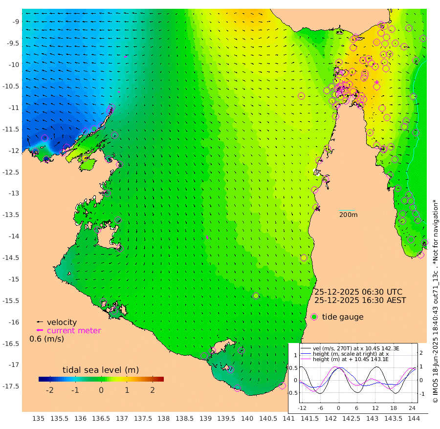 16cm/s -83T +3cm/s rms + 7cm/s -42T. ARA-GOC87 57m 32cm/s 166T +3cm/s rms + 2cm/s -2T. ARA-GOC87 60m 28cm/s -90T +2cm/s rms + 3cm/s 61T. ARA-GOC87 47m 79cm Daru 61cm Bobo Island 22cm Meer Island Barge 36cm Bramble Cay 59cm Unnamed Cay 46cm Pearce Cay 48cm Stephens Island 59cm Merrie England Shoals 81cm Mutacomal Reef 46cm Darnley Island Barge 27cm East Cay 59cm Yorke Island Barge 64cm Rennel Island 58cm Aureed Island 70cm Dungeness Reef 90cm Zagai Island 99cm Yam Island 108cm Dauan Island 110cm Saibai Island 91cm Phipi Reef 106cm Warrior Reef - West 85cm Mabuiag Island Barge 61cm Half Way Island 74cm Coconut Island 73cm Dugong Islet 82cm Poll Island 88cm Kirkcaldie Reef 83cm Suarji Island 88cm Sue Islet 66cm Hawkesbury Island 87cm Alert Patches 90cm Twin Island 65cm Badu Island 95cm St Pauls (Moa Island) 74cm Kubin (Moa Island) 86cm Ince Point 81cm Thursday Island 82cm Nardana Patches 74cm Turtle Head 64cm Round Island 55cm Goods Island 50cm Booby Island 45cm White Rocks Area 56cm Carpentaria 77cm Papou Point 53cm Bampfield Head 49cm Crab Island 63cm Red Wallis Island 80cm Packe Island 75cm Harrington Reef 80cm Herald Camp 36cm Sharp Point 62cm Red Island Point 66cm Possession Island 93cm Alpha Rock 86cm Frederick Point 79cm Wyborn Reef Light 85cm Tetley Island 34cm Triangle Reef 59cm Turtle Head Island 29cm Maclennan Cay 13cm Raine Island 56cm Mcsweeny Reef 51cm Collette Reef 32cm Shadwell Reef 49cm Hannibal Island 38cm Round Point 49cm Vrilya Point 38cm Cape Grenville 30cm Hicks Island 43cm Sir Charles Hardy Island 12cm Harvey Island 29cm Kay Reef 19cm Rocky Island 18cm Chapman Island 20cm Ham Reef 20cm Jubilee Reef 21cm Night Island 22cm Unnamed Reef No. 3 17cm Morris Island 12cm 1st 3 Mile Opening 19cm Creech Reef 27cm Fife Island 8cm Eden Reef 20cm Stanley Island 15cm Normanby River -165cm Yabooma Island -191cm Hutchison River -173cm Elcho Island -166cm North West Crocodile Island -88cm Cape Wessel -137cm Stevens Island -60cm Guluwuru Island -131cm Hopeful Bay -116cm Auster Point -111cm Two Island Bay -137cm Cadell Strait 99cm Mallison Island -66cm Melville Bay (Gove Harbour) -65cm Truant Island -38cm Cape Arnhem -45cm Cape Grey -40cm Hawk Island -48cm Milner Bay (Groote Eylandt) -36cm Cape Beatrice -21cm West Island -26cm Centre Island -5cm Mornington Island -5cm West Wellesley Islands -31cm Bountiful Island -69cm Albert River Mouth -97cm Sweers Island -54cm Karumba 31cm Nassau River Offshore 59cm Christmas Creek 46cm Archer River 54cm Boyd Point 48cm Weipa (Humbug Point) 38cm Pennefather River 58cm Cullen Point