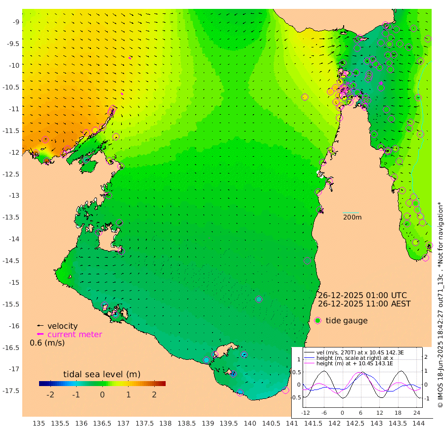 22cm/s 130T +3cm/s rms + 7cm/s -42T. ARA-GOC87 57m 4cm/s 21T +3cm/s rms + 2cm/s -2T. ARA-GOC87 60m 25cm/s 124T +2cm/s rms + 3cm/s 61T. ARA-GOC87 47m -9cm Daru 2cm Bobo Island 26cm Meer Island Barge 17cm Bramble Cay 5cm Unnamed Cay 17cm Pearce Cay 14cm Stephens Island 0cm Merrie England Shoals -9cm Mutacomal Reef 12cm Darnley Island Barge 27cm East Cay 4cm Yorke Island Barge 8cm Rennel Island 6cm Aureed Island 5cm Dungeness Reef -8cm Zagai Island -2cm Yam Island -1cm Dauan Island -8cm Saibai Island -13cm Phipi Reef -14cm Warrior Reef - West 19cm Mabuiag Island Barge 8cm Half Way Island 0cm Coconut Island 7cm Dugong Islet 2cm Poll Island -1cm Kirkcaldie Reef 7cm Suarji Island -7cm Sue Islet 95cm Hawkesbury Island 11cm Alert Patches 12cm Twin Island 77cm Badu Island 8cm St Pauls (Moa Island) 68cm Kubin (Moa Island) 26cm Ince Point 39cm Thursday Island 36cm Nardana Patches 59cm Turtle Head 69cm Round Island 95cm Goods Island 107cm Booby Island 110cm White Rocks Area 84cm Carpentaria 20cm Papou Point 117cm Bampfield Head 78cm Crab Island 96cm Red Wallis Island 68cm Packe Island 3cm Harrington Reef 87cm Herald Camp -15cm Sharp Point 53cm Red Island Point 34cm Possession Island -1cm Alpha Rock 5cm Frederick Point -3cm Wyborn Reef Light -4cm Tetley Island 21cm Triangle Reef 18cm Turtle Head Island 29cm Maclennan Cay 33cm Raine Island 6cm Mcsweeny Reef 4cm Collette Reef 16cm Shadwell Reef 6cm Hannibal Island 18cm Round Point 64cm Vrilya Point 16cm Cape Grenville 25cm Hicks Island 32cm Sir Charles Hardy Island 5cm Harvey Island 23cm Kay Reef 29cm Rocky Island 33cm Chapman Island 31cm Ham Reef 31cm Jubilee Reef 21cm Night Island 30cm Unnamed Reef No. 3 31cm Morris Island 39cm 1st 3 Mile Opening 32cm Creech Reef 19cm Fife Island 42cm Eden Reef 29cm Stanley Island 35cm Normanby River 169cm Yabooma Island 189cm Hutchison River 158cm Elcho Island 151cm North West Crocodile Island 103cm Cape Wessel 126cm Stevens Island 77cm Guluwuru Island 114cm Hopeful Bay 115cm Auster Point 115cm Two Island Bay 137cm Cadell Strait -66cm Mallison Island 67cm Melville Bay (Gove Harbour) 76cm Truant Island 37cm Cape Arnhem 14cm Cape Grey -12cm Hawk Island -35cm Milner Bay (Groote Eylandt) -45cm Cape Beatrice -84cm West Island -83cm Centre Island -109cm Mornington Island -101cm West Wellesley Islands -100cm Bountiful Island -117cm Albert River Mouth -138cm Sweers Island -126cm Karumba -82cm Nassau River Offshore -45cm Christmas Creek 5cm Archer River 28cm Boyd Point 37cm Weipa (Humbug Point) 23cm Pennefather River 54cm Cullen Point