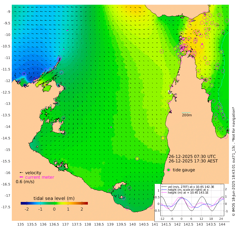 19cm/s -79T +3cm/s rms + 7cm/s -42T. ARA-GOC87 57m 27cm/s 165T +3cm/s rms + 2cm/s -2T. ARA-GOC87 60m 29cm/s -90T +2cm/s rms + 3cm/s 61T. ARA-GOC87 47m 65cm Daru 49cm Bobo Island 15cm Meer Island Barge 29cm Bramble Cay 50cm Unnamed Cay 34cm Pearce Cay 39cm Stephens Island 52cm Merrie England Shoals 70cm Mutacomal Reef 36cm Darnley Island Barge 21cm East Cay 47cm Yorke Island Barge 52cm Rennel Island 44cm Aureed Island 55cm Dungeness Reef 69cm Zagai Island 81cm Yam Island 76cm Dauan Island 81cm Saibai Island 65cm Phipi Reef 82cm Warrior Reef - West 62cm Mabuiag Island Barge 52cm Half Way Island 59cm Coconut Island 60cm Dugong Islet 65cm Poll Island 75cm Kirkcaldie Reef 60cm Suarji Island 71cm Sue Islet 44cm Hawkesbury Island 66cm Alert Patches 70cm Twin Island 41cm Badu Island 73cm St Pauls (Moa Island) 52cm Kubin (Moa Island) 65cm Ince Point 60cm Thursday Island 61cm Nardana Patches 51cm Turtle Head 42cm Round Island 34cm Goods Island 31cm Booby Island 27cm White Rocks Area 43cm Carpentaria 61cm Papou Point 24cm Bampfield Head 35cm Crab Island 44cm Red Wallis Island 59cm Packe Island 62cm Harrington Reef 56cm Herald Camp 31cm Sharp Point 48cm Red Island Point 45cm Possession Island 75cm Alpha Rock 69cm Frederick Point 64cm Wyborn Reef Light 68cm Tetley Island 24cm Triangle Reef 45cm Turtle Head Island 22cm Maclennan Cay 7cm Raine Island 45cm Mcsweeny Reef 41cm Collette Reef 24cm Shadwell Reef 40cm Hannibal Island 30cm Round Point 39cm Vrilya Point 32cm Cape Grenville 22cm Hicks Island 33cm Sir Charles Hardy Island 10cm Harvey Island 24cm Kay Reef 13cm Rocky Island 9cm Chapman Island 13cm Ham Reef 14cm Jubilee Reef 16cm Night Island 15cm Unnamed Reef No. 3 12cm Morris Island 4cm 1st 3 Mile Opening 13cm Creech Reef 19cm Fife Island 3cm Eden Reef 15cm Stanley Island 11cm Normanby River -164cm Yabooma Island -190cm Hutchison River -168cm Elcho Island -159cm North West Crocodile Island -93cm Cape Wessel -138cm Stevens Island -70cm Guluwuru Island -131cm Hopeful Bay -120cm Auster Point -113cm Two Island Bay -141cm Cadell Strait 70cm Mallison Island -75cm Melville Bay (Gove Harbour) -77cm Truant Island -47cm Cape Arnhem -47cm Cape Grey -39cm Hawk Island -39cm Milner Bay (Groote Eylandt) -25cm Cape Beatrice -3cm West Island -8cm Centre Island 8cm Mornington Island 7cm West Wellesley Islands -15cm Bountiful Island -44cm Albert River Mouth -72cm Sweers Island -30cm Karumba 38cm Nassau River Offshore 57cm Christmas Creek 39cm Archer River 42cm Boyd Point 35cm Weipa (Humbug Point) 31cm Pennefather River 45cm Cullen Point