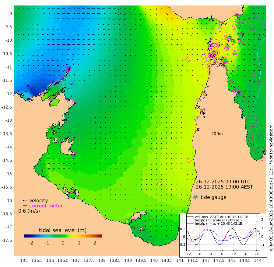35cm/s -86T +3cm/s rms + 7cm/s -42T. ARA-GOC87 57m 19cm/s 175T +3cm/s rms + 2cm/s -2T. ARA-GOC87 60m 42cm/s -95T +2cm/s rms + 3cm/s 61T. ARA-GOC87 47m 8cm Daru -5cm Bobo Island -23cm Meer Island Barge -16cm Bramble Cay -5cm Unnamed Cay -14cm Pearce Cay -12cm Stephens Island -1cm Merrie England Shoals 16cm Mutacomal Reef -16cm Darnley Island Barge -18cm East Cay -7cm Yorke Island Barge 1cm Rennel Island -4cm Aureed Island 10cm Dungeness Reef 26cm Zagai Island 41cm Yam Island 45cm Dauan Island 48cm Saibai Island 44cm Phipi Reef 38cm Warrior Reef - West 45cm Mabuiag Island Barge 4cm Half Way Island 13cm Coconut Island 10cm Dugong Islet 24cm Poll Island 32cm Kirkcaldie Reef 32cm Suarji Island 24cm Sue Islet 54cm Hawkesbury Island 40cm Alert Patches 41cm Twin Island 47cm Badu Island 43cm St Pauls (Moa Island) 51cm Kubin (Moa Island) 48cm Ince Point 52cm Thursday Island 51cm Nardana Patches 51cm Turtle Head 48cm Round Island 49cm Goods Island 57cm Booby Island 52cm White Rocks Area 63cm Carpentaria 35cm Papou Point 39cm Bampfield Head 58cm Crab Island 69cm Red Wallis Island 71cm Packe Island 12cm Harrington Reef 70cm Herald Camp 23cm Sharp Point 51cm Red Island Point 34cm Possession Island 40cm Alpha Rock 29cm Frederick Point 8cm Wyborn Reef Light 15cm Tetley Island -8cm Triangle Reef -11cm Turtle Head Island -13cm Maclennan Cay -20cm Raine Island -6cm Mcsweeny Reef -7cm Collette Reef -14cm Shadwell Reef -11cm Hannibal Island -15cm Round Point 63cm Vrilya Point -8cm Cape Grenville -17cm Hicks Island -10cm Sir Charles Hardy Island -3cm Harvey Island -13cm Kay Reef -19cm Rocky Island -18cm Chapman Island -17cm Ham Reef -20cm Jubilee Reef -12cm Night Island -13cm Unnamed Reef No. 3 -21cm Morris Island -26cm 1st 3 Mile Opening -19cm Creech Reef -18cm Fife Island -31cm Eden Reef -19cm Stanley Island -25cm Normanby River -172cm Yabooma Island -204cm Hutchison River -172cm Elcho Island -158cm North West Crocodile Island -130cm Cape Wessel -162cm Stevens Island -135cm Guluwuru Island -146cm Hopeful Bay -148cm Auster Point -143cm Two Island Bay -185cm Cadell Strait -86cm Mallison Island -124cm Melville Bay (Gove Harbour) -133cm Truant Island -86cm Cape Arnhem -70cm Cape Grey -47cm Hawk Island -29cm Milner Bay (Groote Eylandt) -10cm Cape Beatrice 28cm West Island 30cm Centre Island 41cm Mornington Island 35cm West Wellesley Islands 22cm Bountiful Island 12cm Albert River Mouth -13cm Sweers Island 28cm Karumba 66cm Nassau River Offshore 73cm Christmas Creek 55cm Archer River 50cm Boyd Point 51cm Weipa (Humbug Point) 48cm Pennefather River 66cm Cullen Point
