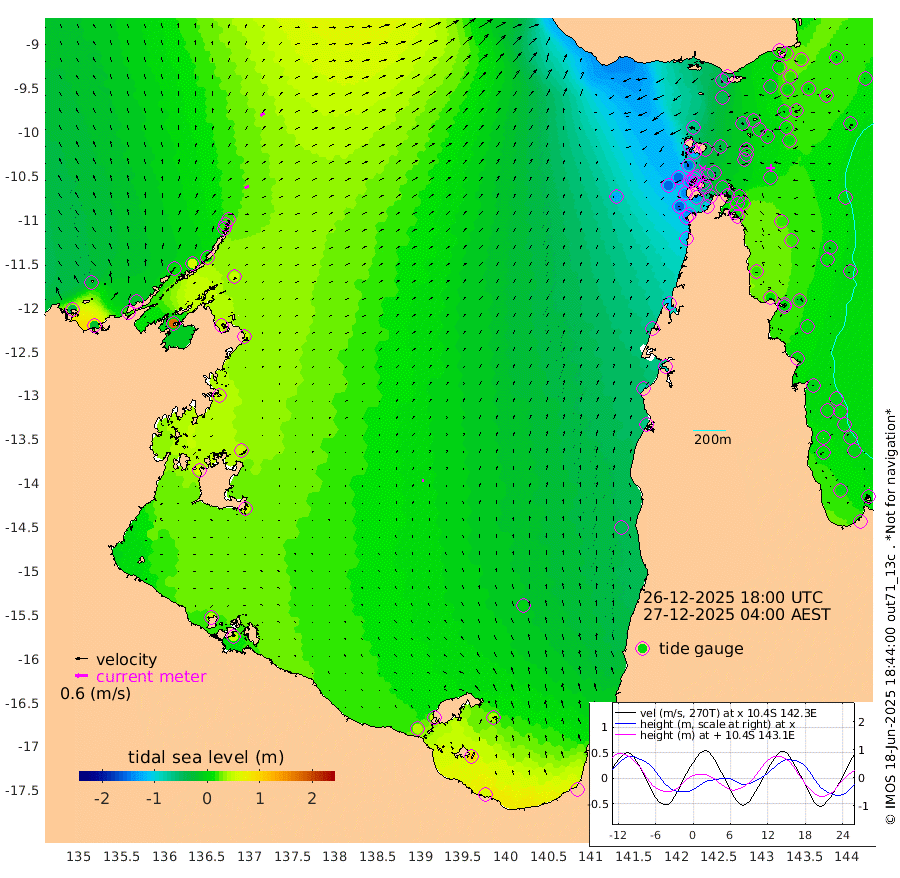 21cm/s 58T +3cm/s rms + 7cm/s -42T. ARA-GOC87 57m 14cm/s 5T +3cm/s rms + 2cm/s -2T. ARA-GOC87 60m 25cm/s 50T +2cm/s rms + 3cm/s 61T. ARA-GOC87 47m 15cm Daru 17cm Bobo Island 9cm Meer Island Barge 13cm Bramble Cay 16cm Unnamed Cay 7cm Pearce Cay 14cm Stephens Island 19cm Merrie England Shoals 9cm Mutacomal Reef 19cm Darnley Island Barge 4cm East Cay 17cm Yorke Island Barge 5cm Rennel Island 10cm Aureed Island -5cm Dungeness Reef -11cm Zagai Island -32cm Yam Island -52cm Dauan Island -41cm Saibai Island -40cm Phipi Reef -22cm Warrior Reef - West -62cm Mabuiag Island Barge 3cm Half Way Island 2cm Coconut Island -3cm Dugong Islet -16cm Poll Island -18cm Kirkcaldie Reef -33cm Suarji Island -5cm Sue Islet -146cm Hawkesbury Island -42cm Alert Patches -43cm Twin Island -124cm Badu Island -44cm St Pauls (Moa Island) -114cm Kubin (Moa Island) -67cm Ince Point -84cm Thursday Island -80cm Nardana Patches -106cm Turtle Head -111cm Round Island -141cm Goods Island -156cm Booby Island -156cm White Rocks Area -123cm Carpentaria -47cm Papou Point -141cm Bampfield Head -129cm Crab Island -157cm Red Wallis Island -133cm Packe Island 2cm Harrington Reef -150cm Herald Camp -5cm Sharp Point -100cm Red Island Point -59cm Possession Island -26cm Alpha Rock -21cm Frederick Point 12cm Wyborn Reef Light 5cm Tetley Island -2cm Triangle Reef 11cm Turtle Head Island -5cm Maclennan Cay -3cm Raine Island 16cm Mcsweeny Reef 18cm Collette Reef 10cm Shadwell Reef 22cm Hannibal Island 11cm Round Point -115cm Vrilya Point 8cm Cape Grenville 4cm Hicks Island -8cm Sir Charles Hardy Island 3cm Harvey Island 6cm Kay Reef 1cm Rocky Island -5cm Chapman Island -4cm Ham Reef 1cm Jubilee Reef 1cm Night Island -6cm Unnamed Reef No. 3 2cm Morris Island -1cm 1st 3 Mile Opening -1cm Creech Reef 10cm Fife Island 1cm Eden Reef 3cm Stanley Island 2cm Normanby River -32cm Yabooma Island -21cm Hutchison River -18cm Elcho Island -26cm North West Crocodile Island 17cm Cape Wessel 11cm Stevens Island 54cm Guluwuru Island 8cm Hopeful Bay 16cm Auster Point 10cm Two Island Bay 19cm Cadell Strait 176cm Mallison Island 49cm Melville Bay (Gove Harbour) 49cm Truant Island 45cm Cape Arnhem 51cm Cape Grey 51cm Hawk Island 55cm Milner Bay (Groote Eylandt) 45cm Cape Beatrice 48cm West Island 47cm Centre Island 48cm Mornington Island 45cm West Wellesley Islands 44cm Bountiful Island 60cm Albert River Mouth 104cm Sweers Island 54cm Karumba -4cm Nassau River Offshore -38cm Christmas Creek -62cm Archer River -73cm Boyd Point -89cm Weipa (Humbug Point) -64cm Pennefather River -112cm Cullen Point