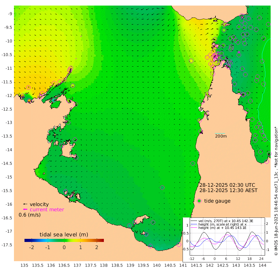 7cm/s 164T +3cm/s rms + 7cm/s -42T. ARA-GOC87 57m 3cm/s -56T +3cm/s rms + 2cm/s -2T. ARA-GOC87 60m 9cm/s 138T +2cm/s rms + 3cm/s 61T. ARA-GOC87 47m -27cm Daru -21cm Bobo Island -2cm Meer Island Barge -15cm Bramble Cay -24cm Unnamed Cay -11cm Pearce Cay -18cm Stephens Island -35cm Merrie England Shoals -31cm Mutacomal Reef -17cm Darnley Island Barge -2cm East Cay -18cm Yorke Island Barge -16cm Rennel Island -14cm Aureed Island -9cm Dungeness Reef 0cm Zagai Island 4cm Yam Island 39cm Dauan Island 31cm Saibai Island 23cm Phipi Reef 4cm Warrior Reef - West 41cm Mabuiag Island Barge -22cm Half Way Island -17cm Coconut Island -16cm Dugong Islet -6cm Poll Island -13cm Kirkcaldie Reef 17cm Suarji Island -9cm Sue Islet 92cm Hawkesbury Island 13cm Alert Patches 11cm Twin Island 81cm Badu Island 14cm St Pauls (Moa Island) 66cm Kubin (Moa Island) 30cm Ince Point 41cm Thursday Island 39cm Nardana Patches 60cm Turtle Head 73cm Round Island 88cm Goods Island 96cm Booby Island 97cm White Rocks Area 64cm Carpentaria 19cm Papou Point 110cm Bampfield Head 68cm Crab Island 86cm Red Wallis Island 64cm Packe Island -22cm Harrington Reef 93cm Herald Camp -8cm Sharp Point 53cm Red Island Point 36cm Possession Island -3cm Alpha Rock -4cm Frederick Point -23cm Wyborn Reef Light -20cm Tetley Island 2cm Triangle Reef -16cm Turtle Head Island 4cm Maclennan Cay 8cm Raine Island -20cm Mcsweeny Reef -20cm Collette Reef -7cm Shadwell Reef -26cm Hannibal Island -14cm Round Point 47cm Vrilya Point -15cm Cape Grenville -2cm Hicks Island 7cm Sir Charles Hardy Island -4cm Harvey Island -9cm Kay Reef 5cm Rocky Island 12cm Chapman Island 9cm Ham Reef 4cm Jubilee Reef -3cm Night Island 6cm Unnamed Reef No. 3 2cm Morris Island 11cm 1st 3 Mile Opening 4cm Creech Reef -3cm Fife Island 6cm Eden Reef -2cm Stanley Island 1cm Normanby River 127cm Yabooma Island 134cm Hutchison River 111cm Elcho Island 109cm North West Crocodile Island 68cm Cape Wessel 83cm Stevens Island 40cm Guluwuru Island 81cm Hopeful Bay 78cm Auster Point 75cm Two Island Bay 89cm Cadell Strait -87cm Mallison Island 41cm Melville Bay (Gove Harbour) 46cm Truant Island 21cm Cape Arnhem 9cm Cape Grey -7cm Hawk Island -24cm Milner Bay (Groote Eylandt) -31cm Cape Beatrice -56cm West Island -57cm Centre Island -63cm Mornington Island -55cm West Wellesley Islands -36cm Bountiful Island -56cm Albert River Mouth -68cm Sweers Island -59cm Karumba -41cm Nassau River Offshore -15cm Christmas Creek 16cm Archer River 32cm Boyd Point 45cm Weipa (Humbug Point) 12cm Pennefather River 52cm Cullen Point