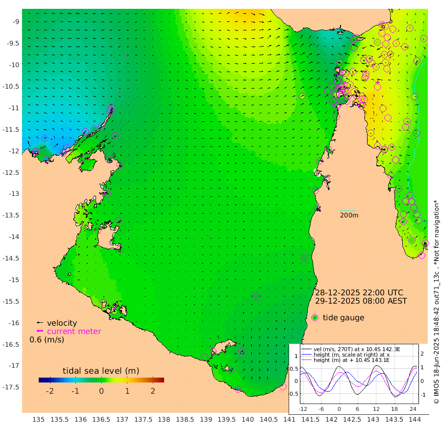10cm/s -58T +3cm/s rms + 7cm/s -42T. ARA-GOC87 57m 8cm/s 58T +3cm/s rms + 2cm/s -2T. ARA-GOC87 60m 11cm/s -76T +2cm/s rms + 3cm/s 61T. ARA-GOC87 47m 64cm Daru 62cm Bobo Island 30cm Meer Island Barge 46cm Bramble Cay 68cm Unnamed Cay 51cm Pearce Cay 55cm Stephens Island 73cm Merrie England Shoals 75cm Mutacomal Reef 53cm Darnley Island Barge 32cm East Cay 59cm Yorke Island Barge 62cm Rennel Island 59cm Aureed Island 56cm Dungeness Reef 49cm Zagai Island 43cm Yam Island -3cm Dauan Island 13cm Saibai Island 17cm Phipi Reef 35cm Warrior Reef - West 21cm Mabuiag Island Barge 59cm Half Way Island 71cm Coconut Island 62cm Dugong Islet 57cm Poll Island 61cm Kirkcaldie Reef 63cm Suarji Island 62cm Sue Islet -6cm Hawkesbury Island 62cm Alert Patches 57cm Twin Island -5cm Badu Island 50cm St Pauls (Moa Island) 5cm Kubin (Moa Island) 39cm Ince Point 31cm Thursday Island 33cm Nardana Patches 15cm Turtle Head 20cm Round Island -4cm Goods Island -4cm Booby Island -2cm White Rocks Area 31cm Carpentaria 43cm Papou Point 33cm Bampfield Head -7cm Crab Island -6cm Red Wallis Island 3cm Packe Island 78cm Harrington Reef 1cm Herald Camp 19cm Sharp Point 11cm Red Island Point 50cm Possession Island 63cm Alpha Rock 64cm Frederick Point 77cm Wyborn Reef Light 75cm Tetley Island 30cm Triangle Reef 75cm Turtle Head Island 30cm Maclennan Cay 17cm Raine Island 60cm Mcsweeny Reef 58cm Collette Reef 37cm Shadwell Reef 64cm Hannibal Island 48cm Round Point 3cm Vrilya Point 50cm Cape Grenville 35cm Hicks Island 33cm Sir Charles Hardy Island 13cm Harvey Island 43cm Kay Reef 25cm Rocky Island 18cm Chapman Island 20cm Ham Reef 23cm Jubilee Reef 24cm Night Island 22cm Unnamed Reef No. 3 27cm Morris Island 24cm 1st 3 Mile Opening 25cm Creech Reef 17cm Fife Island 22cm Eden Reef 30cm Stanley Island 27cm Normanby River -129cm Yabooma Island -131cm Hutchison River -117cm Elcho Island -121cm North West Crocodile Island -61cm Cape Wessel -97cm Stevens Island -42cm Guluwuru Island -88cm Hopeful Bay -70cm Auster Point -85cm Two Island Bay -128cm Cadell Strait 5cm Mallison Island -44cm Melville Bay (Gove Harbour) -43cm Truant Island -23cm Cape Arnhem -6cm Cape Grey 0cm Hawk Island 9cm Milner Bay (Groote Eylandt) 7cm Cape Beatrice 28cm West Island 36cm Centre Island 1cm Mornington Island 1cm West Wellesley Islands -23cm Bountiful Island -48cm Albert River Mouth -29cm Sweers Island -44cm Karumba -24cm Nassau River Offshore -18cm Christmas Creek -9cm Archer River -1cm Boyd Point -16cm Weipa (Humbug Point) 8cm Pennefather River -3cm Cullen Point