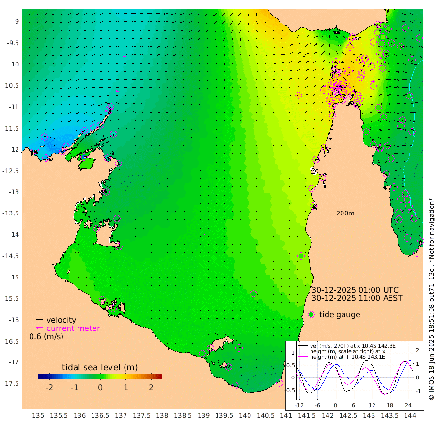 27cm/s -87T +3cm/s rms + 7cm/s -42T. ARA-GOC87 57m 3cm/s 127T +3cm/s rms + 2cm/s -2T. ARA-GOC87 60m 28cm/s -98T +2cm/s rms + 3cm/s 61T. ARA-GOC87 47m 36cm Daru 26cm Bobo Island -16cm Meer Island Barge -6cm Bramble Cay 23cm Unnamed Cay 17cm Pearce Cay 7cm Stephens Island 16cm Merrie England Shoals 44cm Mutacomal Reef 2cm Darnley Island Barge -14cm East Cay 21cm Yorke Island Barge 33cm Rennel Island 31cm Aureed Island 53cm Dungeness Reef 78cm Zagai Island 81cm Yam Island 96cm Dauan Island 95cm Saibai Island 98cm Phipi Reef 79cm Warrior Reef - West 108cm Mabuiag Island Barge 26cm Half Way Island 57cm Coconut Island 43cm Dugong Islet 72cm Poll Island 65cm Kirkcaldie Reef 116cm Suarji Island 72cm Sue Islet 110cm Hawkesbury Island 112cm Alert Patches 102cm Twin Island 109cm Badu Island 108cm St Pauls (Moa Island) 101cm Kubin (Moa Island) 108cm Ince Point 111cm Thursday Island 111cm Nardana Patches 110cm Turtle Head 117cm Round Island 106cm Goods Island 111cm Booby Island 115cm White Rocks Area 105cm Carpentaria 90cm Papou Point 142cm Bampfield Head 84cm Crab Island 108cm Red Wallis Island 104cm Packe Island 54cm Harrington Reef 120cm Herald Camp 33cm Sharp Point 90cm Red Island Point 110cm Possession Island 91cm Alpha Rock 80cm Frederick Point 52cm Wyborn Reef Light 60cm Tetley Island 6cm Triangle Reef 42cm Turtle Head Island -3cm Maclennan Cay -18cm Raine Island 19cm Mcsweeny Reef 14cm Collette Reef -4cm Shadwell Reef 9cm Hannibal Island -3cm Round Point 74cm Vrilya Point 0cm Cape Grenville -8cm Hicks Island -2cm Sir Charles Hardy Island -2cm Harvey Island -10cm Kay Reef -15cm Rocky Island -13cm Chapman Island -15cm Ham Reef -18cm Jubilee Reef -14cm Night Island -15cm Unnamed Reef No. 3 -18cm Morris Island -12cm 1st 3 Mile Opening -16cm Creech Reef -27cm Fife Island -32cm Eden Reef -19cm Stanley Island -28cm Normanby River -107cm Yabooma Island -125cm Hutchison River -112cm Elcho Island -109cm North West Crocodile Island -83cm Cape Wessel -110cm Stevens Island -97cm Guluwuru Island -97cm Hopeful Bay -85cm Auster Point -105cm Two Island Bay -153cm Cadell Strait -154cm Mallison Island -83cm Melville Bay (Gove Harbour) -84cm Truant Island -55cm Cape Arnhem -35cm Cape Grey -24cm Hawk Island -12cm Milner Bay (Groote Eylandt) -10cm Cape Beatrice 14cm West Island 22cm Centre Island -4cm Mornington Island 3cm West Wellesley Islands -6cm Bountiful Island -39cm Albert River Mouth -38cm Sweers Island -31cm Karumba -2cm Nassau River Offshore 17cm Christmas Creek 34cm Archer River 50cm Boyd Point 50cm Weipa (Humbug Point) 44cm Pennefather River 74cm Cullen Point