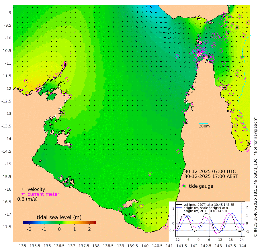 8cm/s 22T +3cm/s rms + 7cm/s -42T. ARA-GOC87 57m 8cm/s -125T +3cm/s rms + 2cm/s -2T. ARA-GOC87 60m 11cm/s 28T +2cm/s rms + 3cm/s 61T. ARA-GOC87 47m 3cm Daru 9cm Bobo Island 41cm Meer Island Barge 33cm Bramble Cay 15cm Unnamed Cay 12cm Pearce Cay 25cm Stephens Island 12cm Merrie England Shoals -6cm Mutacomal Reef 30cm Darnley Island Barge 46cm East Cay 15cm Yorke Island Barge 6cm Rennel Island 6cm Aureed Island -9cm Dungeness Reef -27cm Zagai Island -24cm Yam Island -29cm Dauan Island -27cm Saibai Island -28cm Phipi Reef -20cm Warrior Reef - West -52cm Mabuiag Island Barge 3cm Half Way Island -18cm Coconut Island -4cm Dugong Islet -29cm Poll Island -20cm Kirkcaldie Reef -50cm Suarji Island -24cm Sue Islet -54cm Hawkesbury Island -60cm Alert Patches -53cm Twin Island -62cm Badu Island -57cm St Pauls (Moa Island) -50cm Kubin (Moa Island) -59cm Ince Point -64cm Thursday Island -62cm Nardana Patches -57cm Turtle Head -50cm Round Island -58cm Goods Island -70cm Booby Island -70cm White Rocks Area -78cm Carpentaria -44cm Papou Point -64cm Bampfield Head -61cm Crab Island -71cm Red Wallis Island -58cm Packe Island -16cm Harrington Reef -37cm Herald Camp -20cm Sharp Point -44cm Red Island Point -50cm Possession Island -46cm Alpha Rock -35cm Frederick Point -13cm Wyborn Reef Light -21cm Tetley Island 22cm Triangle Reef -12cm Turtle Head Island 36cm Maclennan Cay 41cm Raine Island 13cm Mcsweeny Reef 18cm Collette Reef 31cm Shadwell Reef 22cm Hannibal Island 30cm Round Point -70cm Vrilya Point 30cm Cape Grenville 41cm Hicks Island 49cm Sir Charles Hardy Island 12cm Harvey Island 39cm Kay Reef 46cm Rocky Island 42cm Chapman Island 45cm Ham Reef 44cm Jubilee Reef 34cm Night Island 40cm Unnamed Reef No. 3 45cm Morris Island 40cm 1st 3 Mile Opening 42cm Creech Reef 48cm Fife Island 57cm Eden Reef 45cm Stanley Island 55cm Normanby River 83cm Yabooma Island 94cm Hutchison River 76cm Elcho Island 76cm North West Crocodile Island 59cm Cape Wessel 67cm Stevens Island 75cm Guluwuru Island 69cm Hopeful Bay 58cm Auster Point 72cm Two Island Bay 101cm Cadell Strait 95cm Mallison Island 63cm Melville Bay (Gove Harbour) 62cm Truant Island 41cm Cape Arnhem 32cm Cape Grey 21cm Hawk Island 4cm Milner Bay (Groote Eylandt) 5cm Cape Beatrice -13cm West Island -20cm Centre Island 25cm Mornington Island 20cm West Wellesley Islands 59cm Bountiful Island 54cm Albert River Mouth 49cm Sweers Island 57cm Karumba 28cm Nassau River Offshore 19cm Christmas Creek -8cm Archer River -20cm Boyd Point -12cm Weipa (Humbug Point) -52cm Pennefather River -47cm Cullen Point