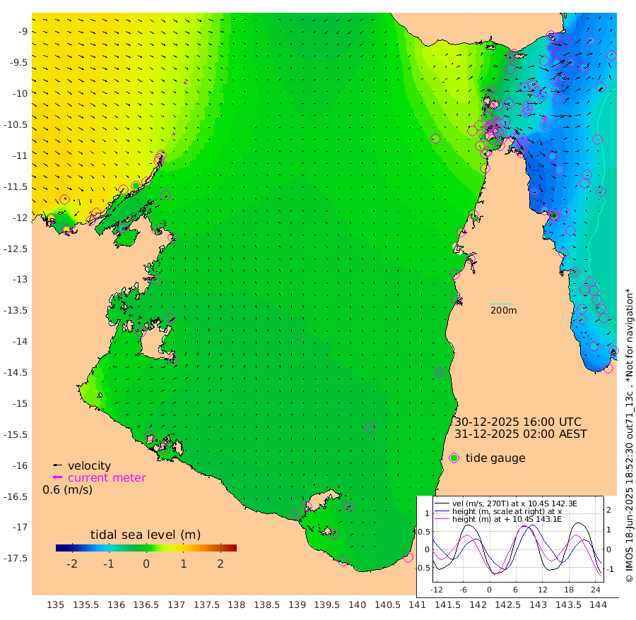 15cm/s 134T +3cm/s rms + 7cm/s -42T. ARA-GOC87 57m 12cm/s -2T +3cm/s rms + 2cm/s -2T. ARA-GOC87 60m 18cm/s 128T +2cm/s rms + 3cm/s 61T. ARA-GOC87 47m -137cm Daru -134cm Bobo Island -95cm Meer Island Barge -119cm Bramble Cay -143cm Unnamed Cay -125cm Pearce Cay -133cm Stephens Island -144cm Merrie England Shoals -145cm Mutacomal Reef -127cm Darnley Island Barge -105cm East Cay -131cm Yorke Island Barge -133cm Rennel Island -126cm Aureed Island -123cm Dungeness Reef -94cm Zagai Island -100cm Yam Island -39cm Dauan Island -47cm Saibai Island -65cm Phipi Reef -94cm Warrior Reef - West -28cm Mabuiag Island Barge -130cm Half Way Island -124cm Coconut Island -134cm Dugong Islet -107cm Poll Island -120cm Kirkcaldie Reef -96cm Suarji Island -110cm Sue Islet 6cm Hawkesbury Island -82cm Alert Patches -85cm Twin Island 12cm Badu Island -76cm St Pauls (Moa Island) -17cm Kubin (Moa Island) -53cm Ince Point -36cm Thursday Island -40cm Nardana Patches -21cm Turtle Head -21cm Round Island 12cm Goods Island 34cm Booby Island 26cm White Rocks Area 26cm Carpentaria -69cm Papou Point -2cm Bampfield Head 37cm Crab Island 31cm Red Wallis Island -7cm Packe Island -141cm Harrington Reef -14cm Herald Camp -25cm Sharp Point -20cm Red Island Point -62cm Possession Island -91cm Alpha Rock -108cm Frederick Point -136cm Wyborn Reef Light -129cm Tetley Island -83cm Triangle Reef -133cm Turtle Head Island -95cm Maclennan Cay -69cm Raine Island -127cm Mcsweeny Reef -123cm Collette Reef -93cm Shadwell Reef -136cm Hannibal Island -120cm Round Point 42cm Vrilya Point -118cm Cape Grenville -107cm Hicks Island -114cm Sir Charles Hardy Island -36cm Harvey Island -108cm Kay Reef -87cm Rocky Island -75cm Chapman Island -76cm Ham Reef -82cm Jubilee Reef -77cm Night Island -75cm Unnamed Reef No. 3 -89cm Morris Island -79cm 1st 3 Mile Opening -84cm Creech Reef -79cm Fife Island -94cm Eden Reef -94cm Stanley Island -102cm Normanby River 87cm Yabooma Island 83cm Hutchison River 88cm Elcho Island 87cm North West Crocodile Island 37cm Cape Wessel 70cm Stevens Island -5cm Guluwuru Island 62cm Hopeful Bay 49cm Auster Point 51cm Two Island Bay 68cm Cadell Strait -69cm Mallison Island 9cm Melville Bay (Gove Harbour) 11cm Truant Island 2cm Cape Arnhem -7cm Cape Grey -8cm Hawk Island 2cm Milner Bay (Groote Eylandt) -3cm Cape Beatrice -12cm West Island -13cm Centre Island -36cm Mornington Island -35cm West Wellesley Islands -43cm Bountiful Island -5cm Albert River Mouth -2cm Sweers Island -14cm Karumba -31cm Nassau River Offshore -34cm Christmas Creek -6cm Archer River -2cm Boyd Point 4cm Weipa (Humbug Point) 24cm Pennefather River 25cm Cullen Point