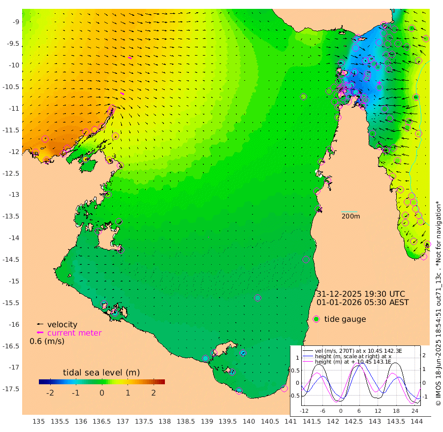37cm/s 118T +3cm/s rms + 7cm/s -42T. ARA-GOC87 57m 3cm/s 116T +3cm/s rms + 2cm/s -2T. ARA-GOC87 60m 36cm/s 113T +2cm/s rms + 3cm/s 61T. ARA-GOC87 47m -59cm Daru -41cm Bobo Island 32cm Meer Island Barge 9cm Bramble Cay -32cm Unnamed Cay -22cm Pearce Cay -10cm Stephens Island -25cm Merrie England Shoals -66cm Mutacomal Reef -4cm Darnley Island Barge 29cm East Cay -32cm Yorke Island Barge -41cm Rennel Island -40cm Aureed Island -65cm Dungeness Reef -96cm Zagai Island -105cm Yam Island -104cm Dauan Island -106cm Saibai Island -111cm Phipi Reef -105cm Warrior Reef - West -88cm Mabuiag Island Barge -39cm Half Way Island -62cm Coconut Island -60cm Dugong Islet -85cm Poll Island -82cm Kirkcaldie Reef -112cm Suarji Island -88cm Sue Islet -16cm Hawkesbury Island -92cm Alert Patches -93cm Twin Island -24cm Badu Island -106cm St Pauls (Moa Island) -37cm Kubin (Moa Island) -79cm Ince Point -66cm Thursday Island -70cm Nardana Patches -41cm Turtle Head -36cm Round Island 1cm Goods Island 19cm Booby Island 6cm White Rocks Area 23cm Carpentaria -84cm Papou Point 12cm Bampfield Head 21cm Crab Island 7cm Red Wallis Island -25cm Packe Island -67cm Harrington Reef -25cm Herald Camp -47cm Sharp Point -39cm Red Island Point -68cm Possession Island -94cm Alpha Rock -82cm Frederick Point -64cm Wyborn Reef Light -72cm Tetley Island 11cm Triangle Reef -41cm Turtle Head Island 21cm Maclennan Cay 49cm Raine Island -23cm Mcsweeny Reef -13cm Collette Reef 20cm Shadwell Reef -9cm Hannibal Island 11cm Round Point 28cm Vrilya Point 9cm Cape Grenville 20cm Hicks Island 18cm Sir Charles Hardy Island 3cm Harvey Island 29cm Kay Reef 38cm Rocky Island 45cm Chapman Island 45cm Ham Reef 43cm Jubilee Reef 34cm Night Island 46cm Unnamed Reef No. 3 45cm Morris Island 48cm 1st 3 Mile Opening 44cm Creech Reef 46cm Fife Island 65cm Eden Reef 45cm Stanley Island 46cm Normanby River 141cm Yabooma Island 172cm Hutchison River 151cm Elcho Island 134cm North West Crocodile Island 106cm Cape Wessel 132cm Stevens Island 107cm Guluwuru Island 122cm Hopeful Bay 114cm Auster Point 119cm Two Island Bay 162cm Cadell Strait 108cm Mallison Island 92cm Melville Bay (Gove Harbour) 101cm Truant Island 61cm Cape Arnhem 25cm Cape Grey 3cm Hawk Island -29cm Milner Bay (Groote Eylandt) -37cm Cape Beatrice -85cm West Island -85cm Centre Island -89cm Mornington Island -94cm West Wellesley Islands -108cm Bountiful Island -96cm Albert River Mouth -101cm Sweers Island -104cm Karumba -68cm Nassau River Offshore -43cm Christmas Creek 2cm Archer River 8cm Boyd Point 13cm Weipa (Humbug Point) 24cm Pennefather River 13cm Cullen Point