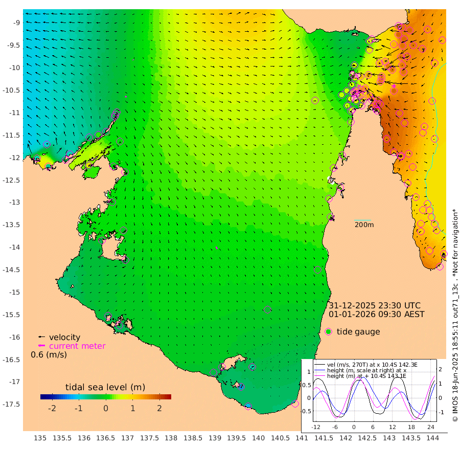 13cm/s 124T +3cm/s rms + 7cm/s -42T. ARA-GOC87 57m 23cm/s 159T +3cm/s rms + 2cm/s -2T. ARA-GOC87 60m 5cm/s 159T +2cm/s rms + 3cm/s 61T. ARA-GOC87 47m 171cm Daru 169cm Bobo Island 116cm Meer Island Barge 145cm Bramble Cay 174cm Unnamed Cay 169cm Pearce Cay 165cm Stephens Island 179cm Merrie England Shoals 180cm Mutacomal Reef 155cm Darnley Island Barge 122cm East Cay 162cm Yorke Island Barge 169cm Rennel Island 163cm Aureed Island 162cm Dungeness Reef 126cm Zagai Island 126cm Yam Island 65cm Dauan Island 61cm Saibai Island 86cm Phipi Reef 121cm Warrior Reef - West 63cm Mabuiag Island Barge 170cm Half Way Island 169cm Coconut Island 174cm Dugong Islet 150cm Poll Island 158cm Kirkcaldie Reef 137cm Suarji Island 143cm Sue Islet 58cm Hawkesbury Island 138cm Alert Patches 137cm Twin Island 57cm Badu Island 127cm St Pauls (Moa Island) 77cm Kubin (Moa Island) 108cm Ince Point 97cm Thursday Island 98cm Nardana Patches 86cm Turtle Head 69cm Round Island 63cm Goods Island 48cm Booby Island 54cm White Rocks Area 51cm Carpentaria 111cm Papou Point 73cm Bampfield Head 35cm Crab Island 49cm Red Wallis Island 76cm Packe Island 188cm Harrington Reef 55cm Herald Camp 32cm Sharp Point 66cm Red Island Point 107cm Possession Island 132cm Alpha Rock 156cm Frederick Point 177cm Wyborn Reef Light 171cm Tetley Island 108cm Triangle Reef 190cm Turtle Head Island 114cm Maclennan Cay 88cm Raine Island 162cm Mcsweeny Reef 152cm Collette Reef 115cm Shadwell Reef 167cm Hannibal Island 149cm Round Point 36cm Vrilya Point 140cm Cape Grenville 126cm Hicks Island 127cm Sir Charles Hardy Island 42cm Harvey Island 125cm Kay Reef 101cm Rocky Island 91cm Chapman Island 89cm Ham Reef 99cm Jubilee Reef 97cm Night Island 93cm Unnamed Reef No. 3 107cm Morris Island 102cm 1st 3 Mile Opening 104cm Creech Reef 98cm Fife Island 114cm Eden Reef 112cm Stanley Island 117cm Normanby River -88cm Yabooma Island -73cm Hutchison River -83cm Elcho Island -92cm North West Crocodile Island -26cm Cape Wessel -59cm Stevens Island 21cm Guluwuru Island -63cm Hopeful Bay -36cm Auster Point -45cm Two Island Bay -51cm Cadell Strait 92cm Mallison Island 2cm Melville Bay (Gove Harbour) 8cm Truant Island 8cm Cape Arnhem -4cm Cape Grey -12cm Hawk Island -39cm Milner Bay (Groote Eylandt) -36cm Cape Beatrice -46cm West Island -42cm Centre Island -41cm Mornington Island -36cm West Wellesley Islands -75cm Bountiful Island -116cm Albert River Mouth -128cm Sweers Island -111cm Karumba -21cm Nassau River Offshore 14cm Christmas Creek 25cm Archer River 36cm Boyd Point 26cm Weipa (Humbug Point) 38cm Pennefather River 27cm Cullen Point