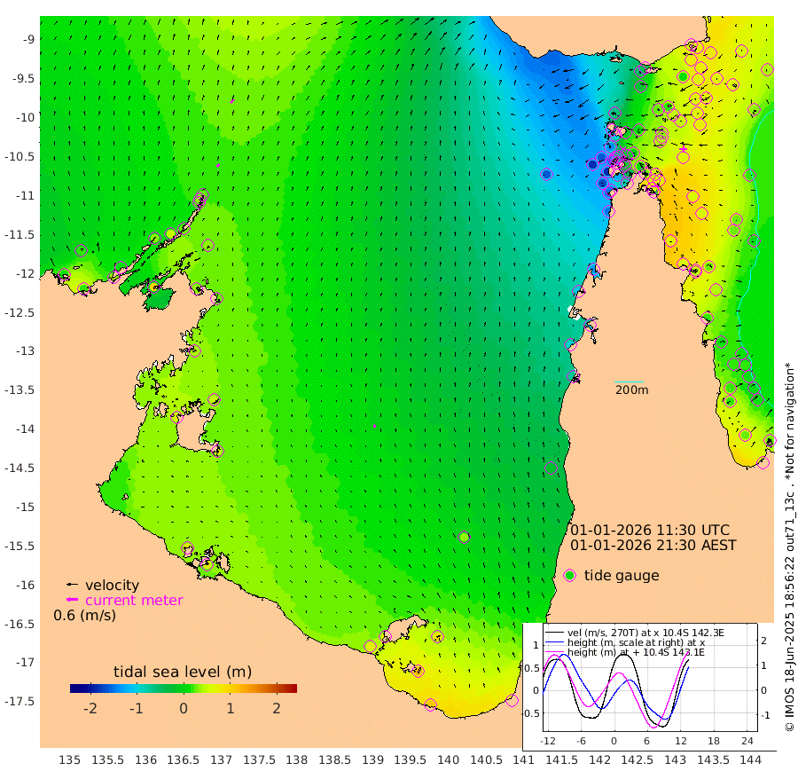 19cm/s 34T +3cm/s rms + 7cm/s -42T. ARA-GOC87 57m 15cm/s -12T +3cm/s rms + 2cm/s -2T. ARA-GOC87 60m 25cm/s 36T +2cm/s rms + 3cm/s 61T. ARA-GOC87 47m 67cm Daru 74cm Bobo Island 33cm Meer Island Barge 58cm Bramble Cay 72cm Unnamed Cay 66cm Pearce Cay 66cm Stephens Island 79cm Merrie England Shoals 77cm Mutacomal Reef 60cm Darnley Island Barge 39cm East Cay 64cm Yorke Island Barge 61cm Rennel Island 62cm Aureed Island 48cm Dungeness Reef 22cm Zagai Island 23cm Yam Island -55cm Dauan Island -42cm Saibai Island -30cm Phipi Reef 13cm Warrior Reef - West -61cm Mabuiag Island Barge 68cm Half Way Island 50cm Coconut Island 64cm Dugong Islet 36cm Poll Island 42cm Kirkcaldie Reef 2cm Suarji Island 34cm Sue Islet -140cm Hawkesbury Island -18cm Alert Patches -3cm Twin Island -138cm Badu Island -11cm St Pauls (Moa Island) -100cm Kubin (Moa Island) -46cm Ince Point -69cm Thursday Island -64cm Nardana Patches -104cm Turtle Head -114cm Round Island -151cm Goods Island -181cm Booby Island -161cm White Rocks Area -160cm Carpentaria -9cm Papou Point -186cm Bampfield Head -155cm Crab Island -165cm Red Wallis Island -120cm Packe Island 68cm Harrington Reef -148cm Herald Camp 7cm Sharp Point -82cm Red Island Point -45cm Possession Island 14cm Alpha Rock 26cm Frederick Point 64cm Wyborn Reef Light 57cm Tetley Island 21cm Triangle Reef 62cm Turtle Head Island 26cm Maclennan Cay 5cm Raine Island 59cm Mcsweeny Reef 55cm Collette Reef 27cm Shadwell Reef 67cm Hannibal Island 56cm Round Point -146cm Vrilya Point 49cm Cape Grenville 39cm Hicks Island 29cm Sir Charles Hardy Island 15cm Harvey Island 39cm Kay Reef 20cm Rocky Island 8cm Chapman Island 9cm Ham Reef 16cm Jubilee Reef 19cm Night Island 9cm Unnamed Reef No. 3 22cm Morris Island 5cm 1st 3 Mile Opening 15cm Creech Reef 20cm Fife Island 25cm Eden Reef 25cm Stanley Island 41cm Normanby River 10cm Yabooma Island 16cm Hutchison River 13cm Elcho Island 19cm North West Crocodile Island 29cm Cape Wessel 33cm Stevens Island 45cm Guluwuru Island 25cm Hopeful Bay 24cm Auster Point 35cm Two Island Bay 44cm Cadell Strait 96cm Mallison Island 37cm Melville Bay (Gove Harbour) 33cm Truant Island 26cm Cape Arnhem 38cm Cape Grey 45cm Hawk Island 58cm Milner Bay (Groote Eylandt) 56cm Cape Beatrice 70cm West Island 67cm Centre Island 73cm Mornington Island 72cm West Wellesley Islands 87cm Bountiful Island 106cm Albert River Mouth 126cm Sweers Island 101cm Karumba 31cm Nassau River Offshore -19cm Christmas Creek -74cm Archer River -96cm Boyd Point -108cm Weipa (Humbug Point) -98cm Pennefather River -134cm Cullen Point