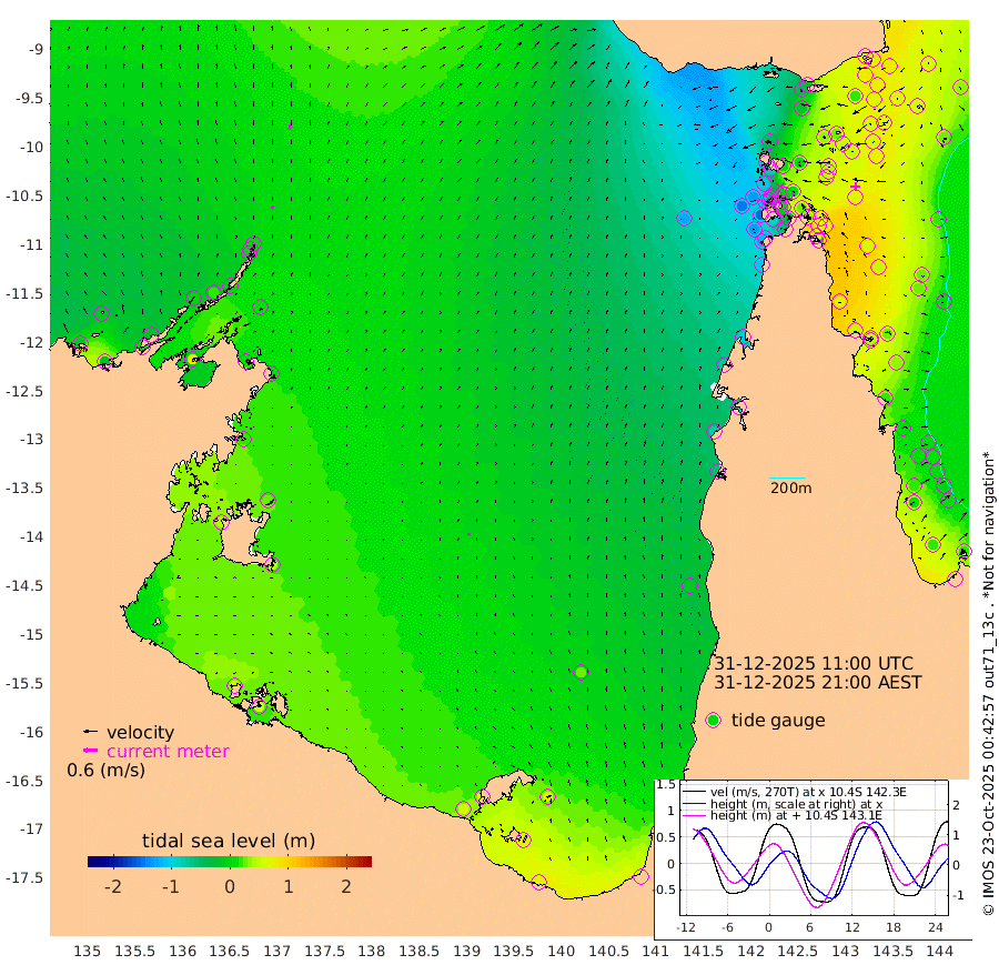 15cm/s 24T +3cm/s rms + 7cm/s -42T. ARA-GOC87 57m 10cm/s -2T +3cm/s rms + 2cm/s -2T. ARA-GOC87 60m 18cm/s 25T +2cm/s rms + 3cm/s 61T. ARA-GOC87 47m 67cm Daru 70cm Bobo Island 27cm Meer Island Barge 53cm Bramble Cay 70cm Unnamed Cay 60cm Pearce Cay 61cm Stephens Island 76cm Merrie England Shoals 79cm Mutacomal Reef 55cm Darnley Island Barge 33cm East Cay 61cm Yorke Island Barge 59cm Rennel Island 57cm Aureed Island 49cm Dungeness Reef 28cm Zagai Island 34cm Yam Island -41cm Dauan Island -25cm Saibai Island -21cm Phipi Reef 21cm Warrior Reef - West -41cm Mabuiag Island Barge 68cm Half Way Island 52cm Coconut Island 65cm Dugong Islet 41cm Poll Island 51cm Kirkcaldie Reef 9cm Suarji Island 42cm Sue Islet -107cm Hawkesbury Island -4cm Alert Patches 10cm Twin Island -108cm Badu Island 4cm St Pauls (Moa Island) -75cm Kubin (Moa Island) -27cm Ince Point -47cm Thursday Island -43cm Nardana Patches -80cm Turtle Head -89cm Round Island -121cm Goods Island -146cm Booby Island -129cm White Rocks Area -122cm Carpentaria 6cm Papou Point -154cm Bampfield Head -122cm Crab Island -130cm Red Wallis Island -91cm Packe Island 70cm Harrington Reef -116cm Herald Camp 12cm Sharp Point -56cm Red Island Point -30cm Possession Island 27cm Alpha Rock 35cm Frederick Point 66cm Wyborn Reef Light 61cm Tetley Island 18cm Triangle Reef 62cm Turtle Head Island 23cm Maclennan Cay 1cm Raine Island 56cm Mcsweeny Reef 51cm Collette Reef 23cm Shadwell Reef 62cm Hannibal Island 50cm Round Point -111cm Vrilya Point 46cm Cape Grenville 34cm Hicks Island 26cm Sir Charles Hardy Island 14cm Harvey Island 35cm Kay Reef 15cm Rocky Island 3cm Chapman Island 6cm Ham Reef 13cm Jubilee Reef 15cm Night Island 6cm Unnamed Reef No. 3 16cm Morris Island 0cm 1st 3 Mile Opening 10cm Creech Reef 13cm Fife Island 17cm Eden Reef 20cm Stanley Island 34cm Normanby River -22cm Yabooma Island -23cm Hutchison River -21cm Elcho Island -11cm North West Crocodile Island 6cm Cape Wessel 2cm Stevens Island 21cm Guluwuru Island -5cm Hopeful Bay -3cm Auster Point 9cm Two Island Bay 9cm Cadell Strait 81cm Mallison Island 12cm Melville Bay (Gove Harbour) 8cm Truant Island 8cm Cape Arnhem 21cm Cape Grey 27cm Hawk Island 41cm Milner Bay (Groote Eylandt) 42cm Cape Beatrice 60cm West Island 57cm Centre Island 56cm Mornington Island 54cm West Wellesley Islands 60cm Bountiful Island 71cm Albert River Mouth 82cm Sweers Island 69cm Karumba 25cm Nassau River Offshore -13cm Christmas Creek -59cm Archer River -76cm Boyd Point -89cm Weipa (Humbug Point) -74cm Pennefather River -104cm Cullen Point