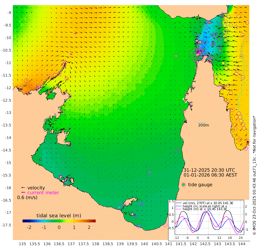 39cm/s 115T +3cm/s rms + 7cm/s -42T. ARA-GOC87 57m 9cm/s 155T +3cm/s rms + 2cm/s -2T. ARA-GOC87 60m 35cm/s 110T +2cm/s rms + 3cm/s 61T. ARA-GOC87 47m 15cm Daru 33cm Bobo Island 84cm Meer Island Barge 75cm Bramble Cay 45cm Unnamed Cay 51cm Pearce Cay 63cm Stephens Island 54cm Merrie England Shoals 12cm Mutacomal Reef 65cm Darnley Island Barge 85cm East Cay 38cm Yorke Island Barge 32cm Rennel Island 30cm Aureed Island 2cm Dungeness Reef -48cm Zagai Island -55cm Yam Island -88cm Dauan Island -89cm Saibai Island -81cm Phipi Reef -58cm Warrior Reef - West -75cm Mabuiag Island Barge 34cm Half Way Island 6cm Coconut Island 14cm Dugong Islet -26cm Poll Island -18cm Kirkcaldie Reef -63cm Suarji Island -31cm Sue Islet -15cm Hawkesbury Island -47cm Alert Patches -46cm Twin Island -24cm Badu Island -64cm St Pauls (Moa Island) -24cm Kubin (Moa Island) -48cm Ince Point -42cm Thursday Island -46cm Nardana Patches -25cm Turtle Head -25cm Round Island 2cm Goods Island 10cm Booby Island 2cm White Rocks Area 16cm Carpentaria -46cm Papou Point 14cm Bampfield Head 11cm Crab Island 0cm Red Wallis Island -14cm Packe Island 11cm Harrington Reef -22cm Herald Camp -35cm Sharp Point -26cm Red Island Point -36cm Possession Island -46cm Alpha Rock -23cm Frederick Point 10cm Wyborn Reef Light -2cm Tetley Island 57cm Triangle Reef 36cm Turtle Head Island 71cm Maclennan Cay 87cm Raine Island 47cm Mcsweeny Reef 53cm Collette Reef 70cm Shadwell Reef 65cm Hannibal Island 78cm Round Point 18cm Vrilya Point 72cm Cape Grenville 77cm Hicks Island 76cm Sir Charles Hardy Island 22cm Harvey Island 86cm Kay Reef 84cm Rocky Island 86cm Chapman Island 85cm Ham Reef 87cm Jubilee Reef 77cm Night Island 87cm Unnamed Reef No. 3 93cm Morris Island 92cm 1st 3 Mile Opening 90cm Creech Reef 90cm Fife Island 117cm Eden Reef 95cm Stanley Island 101cm Normanby River 109cm Yabooma Island 147cm Hutchison River 121cm Elcho Island 103cm North West Crocodile Island 97cm Cape Wessel 112cm Stevens Island 119cm Guluwuru Island 102cm Hopeful Bay 101cm Auster Point 105cm Two Island Bay 146cm Cadell Strait 153cm Mallison Island 97cm Melville Bay (Gove Harbour) 106cm Truant Island 67cm Cape Arnhem 28cm Cape Grey 5cm Hawk Island -35cm Milner Bay (Groote Eylandt) -42cm Cape Beatrice -91cm West Island -90cm Centre Island -86cm Mornington Island -90cm West Wellesley Islands -111cm Bountiful Island -113cm Albert River Mouth -120cm Sweers Island -118cm Karumba -63cm Nassau River Offshore -32cm Christmas Creek 6cm Archer River 11cm Boyd Point 12cm Weipa (Humbug Point) 22cm Pennefather River 4cm Cullen Point
