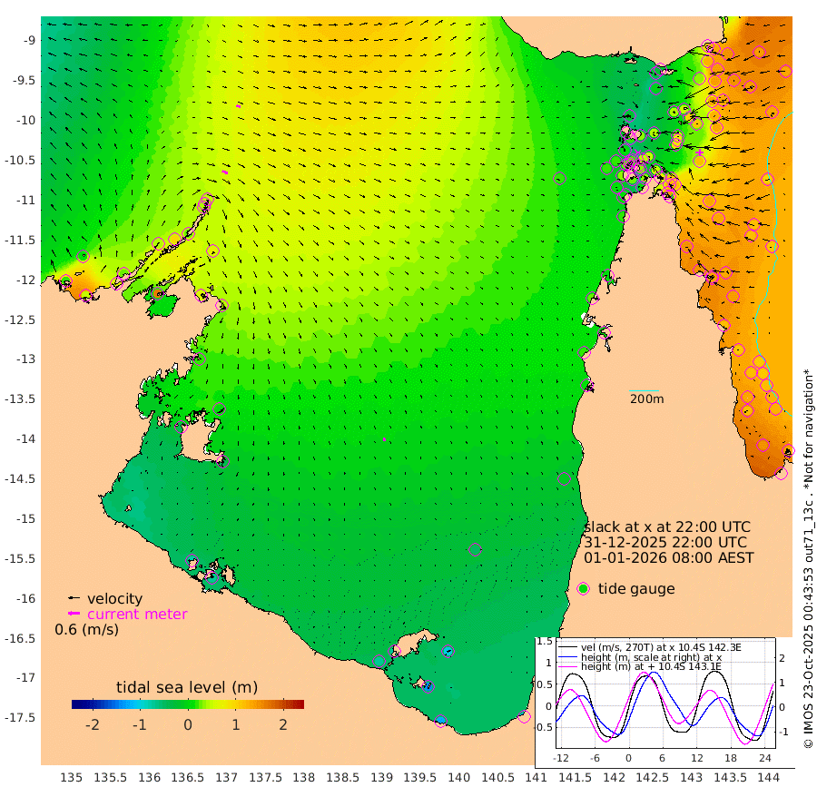 31cm/s 114T +3cm/s rms + 7cm/s -42T. ARA-GOC87 57m 18cm/s 159T +3cm/s rms + 2cm/s -2T. ARA-GOC87 60m 24cm/s 110T +2cm/s rms + 3cm/s 61T. ARA-GOC87 47m 118cm Daru 129cm Bobo Island 128cm Meer Island Barge 142cm Bramble Cay 141cm Unnamed Cay 140cm Pearce Cay 146cm Stephens Island 150cm Merrie England Shoals 123cm Mutacomal Reef 141cm Darnley Island Barge 133cm East Cay 128cm Yorke Island Barge 128cm Rennel Island 123cm Aureed Island 102cm Dungeness Reef 46cm Zagai Island 41cm Yam Island -24cm Dauan Island -26cm Saibai Island -4cm Phipi Reef 36cm Warrior Reef - West -18cm Mabuiag Island Barge 130cm Half Way Island 109cm Coconut Island 119cm Dugong Islet 75cm Poll Island 87cm Kirkcaldie Reef 41cm Suarji Island 68cm Sue Islet 10cm Hawkesbury Island 49cm Alert Patches 51cm Twin Island 3cm Badu Island 32cm St Pauls (Moa Island) 19cm Kubin (Moa Island) 27cm Ince Point 22cm Thursday Island 21cm Nardana Patches 23cm Turtle Head 13cm Round Island 23cm Goods Island 16cm Booby Island 16cm White Rocks Area 22cm Carpentaria 34cm Papou Point 33cm Bampfield Head 11cm Crab Island 11cm Red Wallis Island 23cm Packe Island 125cm Harrington Reef 5cm Herald Camp -3cm Sharp Point 14cm Red Island Point 35cm Possession Island 49cm Alpha Rock 80cm Frederick Point 118cm Wyborn Reef Light 106cm Tetley Island 104cm Triangle Reef 141cm Turtle Head Island 118cm Maclennan Cay 110cm Raine Island 133cm Mcsweeny Reef 131cm Collette Reef 117cm Shadwell Reef 149cm Hannibal Island 145cm Round Point 16cm Vrilya Point 136cm Cape Grenville 130cm Hicks Island 130cm Sir Charles Hardy Island 42cm Harvey Island 136cm Kay Reef 118cm Rocky Island 112cm Chapman Island 110cm Ham Reef 118cm Jubilee Reef 110cm Night Island 114cm Unnamed Reef No. 3 128cm Morris Island 122cm 1st 3 Mile Opening 123cm Creech Reef 120cm Fife Island 148cm Eden Reef 132cm Stanley Island 141cm Normanby River 19cm Yabooma Island 52cm Hutchison River 29cm Elcho Island 13cm North West Crocodile Island 48cm Cape Wessel 38cm Stevens Island 93cm Guluwuru Island 30cm Hopeful Bay 45cm Auster Point 43cm Two Island Bay 67cm Cadell Strait 162cm Mallison Island 66cm Melville Bay (Gove Harbour) 74cm Truant Island 49cm Cape Arnhem 19cm Cape Grey 1cm Hawk Island -40cm Milner Bay (Groote Eylandt) -41cm Cape Beatrice -77cm West Island -75cm Centre Island -68cm Mornington Island -69cm West Wellesley Islands -101cm Bountiful Island -125cm Albert River Mouth -136cm Sweers Island -126cm Karumba -46cm Nassau River Offshore -11cm Christmas Creek 13cm Archer River 19cm Boyd Point 13cm Weipa (Humbug Point) 25cm Pennefather River 5cm Cullen Point