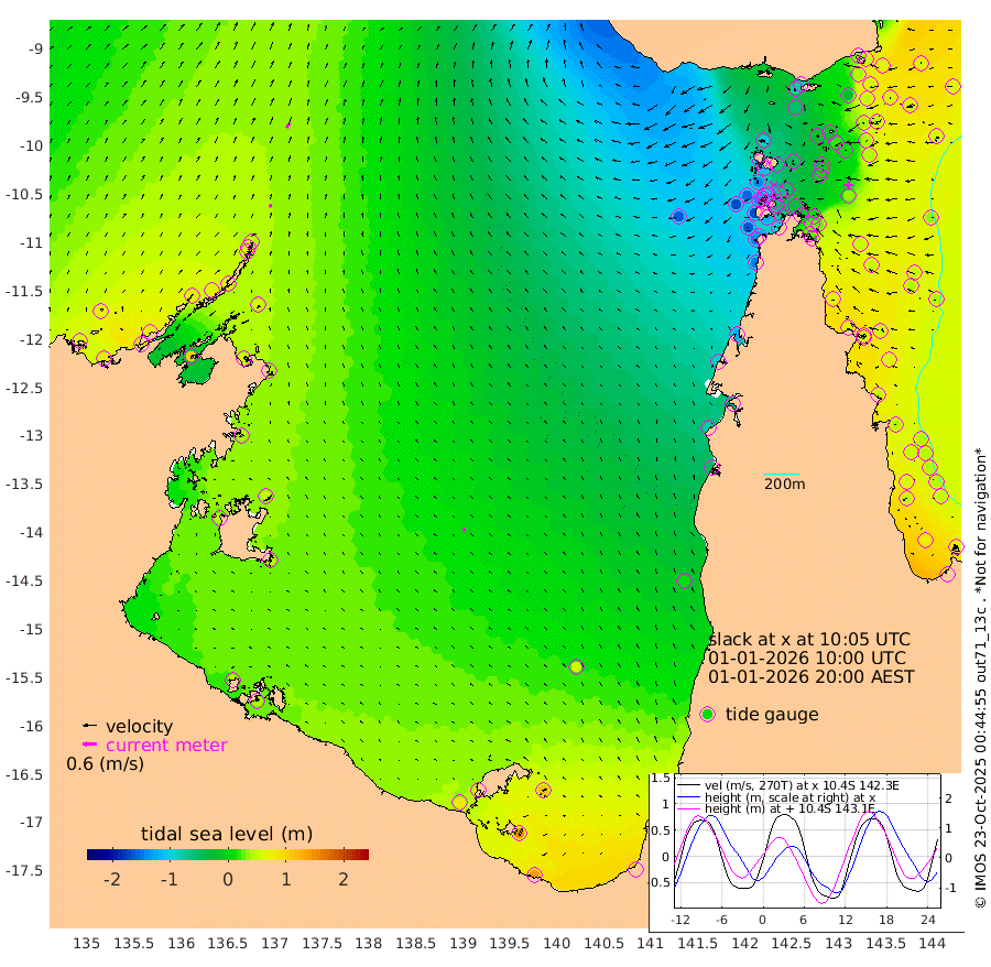15cm/s 23T +3cm/s rms + 7cm/s -42T. ARA-GOC87 57m 13cm/s -48T +3cm/s rms + 2cm/s -2T. ARA-GOC87 60m 22cm/s 31T +2cm/s rms + 3cm/s 61T. ARA-GOC87 47m 37cm Daru 49cm Bobo Island 55cm Meer Island Barge 66cm Bramble Cay 57cm Unnamed Cay 51cm Pearce Cay 61cm Stephens Island 63cm Merrie England Shoals 42cm Mutacomal Reef 59cm Darnley Island Barge 63cm East Cay 47cm Yorke Island Barge 40cm Rennel Island 41cm Aureed Island 18cm Dungeness Reef -23cm Zagai Island -22cm Yam Island -84cm Dauan Island -75cm Saibai Island -55cm Phipi Reef -26cm Warrior Reef - West -98cm Mabuiag Island Barge 43cm Half Way Island 14cm Coconut Island 31cm Dugong Islet -9cm Poll Island 1cm Kirkcaldie Reef -47cm Suarji Island -11cm Sue Islet -140cm Hawkesbury Island -66cm Alert Patches -53cm Twin Island -144cm Badu Island -66cm St Pauls (Moa Island) -112cm Kubin (Moa Island) -85cm Ince Point -102cm Thursday Island -98cm Nardana Patches -116cm Turtle Head -116cm Round Island -142cm Goods Island -168cm Booby Island -155cm White Rocks Area -162cm Carpentaria -53cm Papou Point -168cm Bampfield Head -145cm Crab Island -159cm Red Wallis Island -123cm Packe Island 27cm Harrington Reef -131cm Herald Camp -16cm Sharp Point -94cm Red Island Point -74cm Possession Island -37cm Alpha Rock -20cm Frederick Point 25cm Wyborn Reef Light 13cm Tetley Island 32cm Triangle Reef 23cm Turtle Head Island 46cm Maclennan Cay 39cm Raine Island 46cm Mcsweeny Reef 50cm Collette Reef 43cm Shadwell Reef 63cm Hannibal Island 63cm Round Point -145cm Vrilya Point 60cm Cape Grenville 59cm Hicks Island 55cm Sir Charles Hardy Island 19cm Harvey Island 61cm Kay Reef 52cm Rocky Island 44cm Chapman Island 43cm Ham Reef 47cm Jubilee Reef 44cm Night Island 42cm Unnamed Reef No. 3 54cm Morris Island 38cm 1st 3 Mile Opening 47cm Creech Reef 51cm Fife Island 69cm Eden Reef 57cm Stanley Island 74cm Normanby River 65cm Yabooma Island 82cm Hutchison River 69cm Elcho Island 71cm North West Crocodile Island 51cm Cape Wessel 68cm Stevens Island 69cm Guluwuru Island 68cm Hopeful Bay 52cm Auster Point 64cm Two Island Bay 90cm Cadell Strait 100cm Mallison Island 60cm Melville Bay (Gove Harbour) 54cm Truant Island 39cm Cape Arnhem 44cm Cape Grey 48cm Hawk Island 48cm Milner Bay (Groote Eylandt) 49cm Cape Beatrice 47cm West Island 45cm Centre Island 85cm Mornington Island 79cm West Wellesley Islands 118cm Bountiful Island 140cm Albert River Mouth 151cm Sweers Island 136cm Karumba 56cm Nassau River Offshore 11cm Christmas Creek -45cm Archer River -75cm Boyd Point -74cm Weipa (Humbug Point) -94cm Pennefather River -122cm Cullen Point