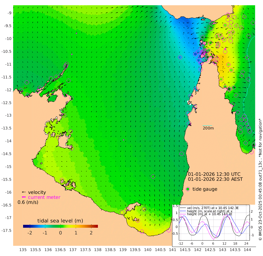 18cm/s 32T +3cm/s rms + 7cm/s -42T. ARA-GOC87 57m 19cm/s 3T +3cm/s rms + 2cm/s -2T. ARA-GOC87 60m 22cm/s 34T +2cm/s rms + 3cm/s 61T. ARA-GOC87 47m 54cm Daru 55cm Bobo Island -4cm Meer Island Barge 22cm Bramble Cay 47cm Unnamed Cay 43cm Pearce Cay 36cm Stephens Island 52cm Merrie England Shoals 65cm Mutacomal Reef 29cm Darnley Island Barge -2cm East Cay 43cm Yorke Island Barge 42cm Rennel Island 44cm Aureed Island 41cm Dungeness Reef 35cm Zagai Island 35cm Yam Island -30cm Dauan Island -15cm Saibai Island -14cm Phipi Reef 25cm Warrior Reef - West -29cm Mabuiag Island Barge 51cm Half Way Island 45cm Coconut Island 53cm Dugong Islet 43cm Poll Island 44cm Kirkcaldie Reef 21cm Suarji Island 43cm Sue Islet -119cm Hawkesbury Island 4cm Alert Patches 17cm Twin Island -113cm Badu Island 17cm St Pauls (Moa Island) -81cm Kubin (Moa Island) -21cm Ince Point -43cm Thursday Island -38cm Nardana Patches -85cm Turtle Head -97cm Round Island -135cm Goods Island -160cm Booby Island -140cm White Rocks Area -133cm Carpentaria 12cm Papou Point -169cm Bampfield Head -136cm Crab Island -143cm Red Wallis Island -103cm Packe Island 61cm Harrington Reef -136cm Herald Camp 19cm Sharp Point -65cm Red Island Point -28cm Possession Island 33cm Alpha Rock 35cm Frederick Point 58cm Wyborn Reef Light 57cm Tetley Island -5cm Triangle Reef 53cm Turtle Head Island -8cm Maclennan Cay -33cm Raine Island 37cm Mcsweeny Reef 29cm Collette Reef -5cm Shadwell Reef 36cm Hannibal Island 19cm Round Point -123cm Vrilya Point 14cm Cape Grenville 1cm Hicks Island -12cm Sir Charles Hardy Island 4cm Harvey Island -2cm Kay Reef -20cm Rocky Island -31cm Chapman Island -30cm Ham Reef -22cm Jubilee Reef -15cm Night Island -29cm Unnamed Reef No. 3 -20cm Morris Island -34cm 1st 3 Mile Opening -25cm Creech Reef -20cm Fife Island -27cm Eden Reef -18cm Stanley Island -7cm Normanby River -26cm Yabooma Island -31cm Hutchison River -25cm Elcho Island -16cm North West Crocodile Island 7cm Cape Wessel 4cm Stevens Island 13cm Guluwuru Island -7cm Hopeful Bay 0cm Auster Point 8cm Two Island Bay 2cm Cadell Strait 60cm Mallison Island 10cm Melville Bay (Gove Harbour) 8cm Truant Island 9cm Cape Arnhem 27cm Cape Grey 35cm Hawk Island 60cm Milner Bay (Groote Eylandt) 56cm Cape Beatrice 80cm West Island 77cm Centre Island 58cm Mornington Island 60cm West Wellesley Islands 59cm Bountiful Island 78cm Albert River Mouth 101cm Sweers Island 71cm Karumba 11cm Nassau River Offshore -37cm Christmas Creek -82cm Archer River -96cm Boyd Point -113cm Weipa (Humbug Point) -85cm Pennefather River -120cm Cullen Point