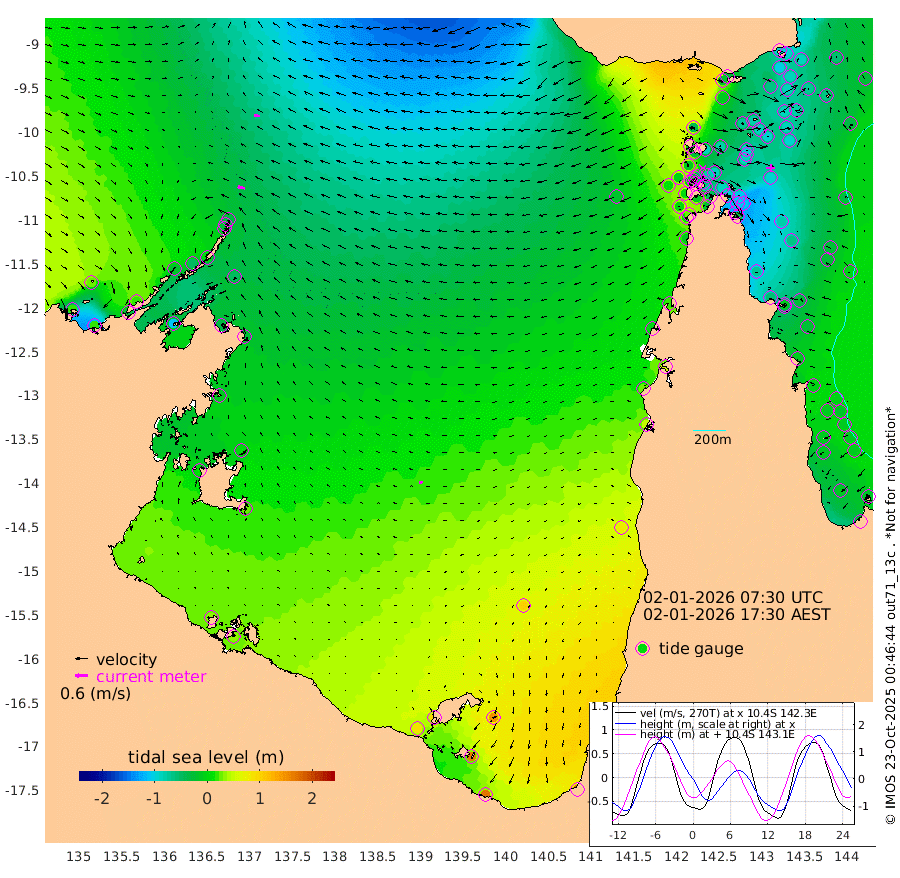 34cm/s -79T +3cm/s rms + 7cm/s -42T. ARA-GOC87 57m 16cm/s -100T +3cm/s rms + 2cm/s -2T. ARA-GOC87 60m 29cm/s -82T +2cm/s rms + 3cm/s 61T. ARA-GOC87 47m -91cm Daru -93cm Bobo Island -31cm Meer Island Barge -54cm Bramble Cay -83cm Unnamed Cay -88cm Pearce Cay -74cm Stephens Island -86cm Merrie England Shoals -98cm Mutacomal Reef -67cm Darnley Island Barge -29cm East Cay -82cm Yorke Island Barge -84cm Rennel Island -84cm Aureed Island -83cm Dungeness Reef -77cm Zagai Island -73cm Yam Island -20cm Dauan Island -28cm Saibai Island -13cm Phipi Reef -62cm Warrior Reef - West -40cm Mabuiag Island Barge -93cm Half Way Island -96cm Coconut Island -97cm Dugong Islet -92cm Poll Island -90cm Kirkcaldie Reef -76cm Suarji Island -90cm Sue Islet -10cm Hawkesbury Island -81cm Alert Patches -87cm Twin Island -10cm Badu Island -86cm St Pauls (Moa Island) -25cm Kubin (Moa Island) -62cm Ince Point -52cm Thursday Island -53cm Nardana Patches -23cm Turtle Head -7cm Round Island 1cm Goods Island 8cm Booby Island -1cm White Rocks Area -21cm Carpentaria -76cm Papou Point 5cm Bampfield Head 8cm Crab Island 1cm Red Wallis Island -11cm Packe Island -112cm Harrington Reef 25cm Herald Camp -25cm Sharp Point -21cm Red Island Point -51cm Possession Island -89cm Alpha Rock -97cm Frederick Point -107cm Wyborn Reef Light -108cm Tetley Island -34cm Triangle Reef -122cm Turtle Head Island -28cm Maclennan Cay -5cm Raine Island -78cm Mcsweeny Reef -65cm Collette Reef -30cm Shadwell Reef -72cm Hannibal Island -56cm Round Point -9cm Vrilya Point -46cm Cape Grenville -34cm Hicks Island -23cm Sir Charles Hardy Island -13cm Harvey Island -30cm Kay Reef -10cm Rocky Island -3cm Chapman Island -5cm Ham Reef -14cm Jubilee Reef -16cm Night Island -8cm Unnamed Reef No. 3 -14cm Morris Island -11cm 1st 3 Mile Opening -14cm Creech Reef -15cm Fife Island -10cm Eden Reef -16cm Stanley Island -21cm Normanby River 21cm Yabooma Island 16cm Hutchison River 20cm Elcho Island 24cm North West Crocodile Island -37cm Cape Wessel -15cm Stevens Island -51cm Guluwuru Island 7cm Hopeful Bay -26cm Auster Point -26cm Two Island Bay -24cm Cadell Strait -111cm Mallison Island -34cm Melville Bay (Gove Harbour) -46cm Truant Island -29cm Cape Arnhem -12cm Cape Grey 3cm Hawk Island 13cm Milner Bay (Groote Eylandt) 25cm Cape Beatrice 33cm West Island 35cm Centre Island 97cm Mornington Island 88cm West Wellesley Islands 147cm Bountiful Island 168cm Albert River Mouth 160cm Sweers Island 173cm Karumba 100cm Nassau River Offshore 81cm Christmas Creek 51cm Archer River 28cm Boyd Point 53cm Weipa (Humbug Point) -4cm Pennefather River 17cm Cullen Point