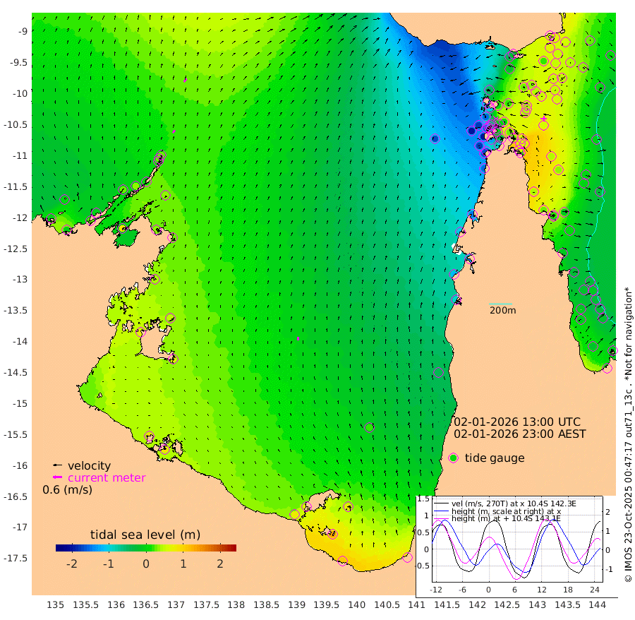 23cm/s 39T +3cm/s rms + 7cm/s -42T. ARA-GOC87 57m 23cm/s -3T +3cm/s rms + 2cm/s -2T. ARA-GOC87 60m 29cm/s 40T +2cm/s rms + 3cm/s 61T. ARA-GOC87 47m 57cm Daru 61cm Bobo Island 3cm Meer Island Barge 28cm Bramble Cay 51cm Unnamed Cay 50cm Pearce Cay 42cm Stephens Island 54cm Merrie England Shoals 65cm Mutacomal Reef 36cm Darnley Island Barge 4cm East Cay 49cm Yorke Island Barge 45cm Rennel Island 51cm Aureed Island 42cm Dungeness Reef 33cm Zagai Island 28cm Yam Island -38cm Dauan Island -26cm Saibai Island -20cm Phipi Reef 22cm Warrior Reef - West -46cm Mabuiag Island Barge 53cm Half Way Island 46cm Coconut Island 54cm Dugong Islet 40cm Poll Island 38cm Kirkcaldie Reef 18cm Suarji Island 39cm Sue Islet -154cm Hawkesbury Island -8cm Alert Patches 6cm Twin Island -142cm Badu Island 6cm St Pauls (Moa Island) -105cm Kubin (Moa Island) -38cm Ince Point -64cm Thursday Island -57cm Nardana Patches -107cm Turtle Head -121cm Round Island -164cm Goods Island -196cm Booby Island -173cm White Rocks Area -168cm Carpentaria 0cm Papou Point -199cm Bampfield Head -169cm Crab Island -178cm Red Wallis Island -131cm Packe Island 62cm Harrington Reef -167cm Herald Camp 15cm Sharp Point -90cm Red Island Point -41cm Possession Island 23cm Alpha Rock 30cm Frederick Point 59cm Wyborn Reef Light 56cm Tetley Island -1cm Triangle Reef 54cm Turtle Head Island -3cm Maclennan Cay -28cm Raine Island 42cm Mcsweeny Reef 33cm Collette Reef -1cm Shadwell Reef 42cm Hannibal Island 25cm Round Point -157cm Vrilya Point 18cm Cape Grenville 7cm Hicks Island -8cm Sir Charles Hardy Island 6cm Harvey Island 2cm Kay Reef -14cm Rocky Island -26cm Chapman Island -26cm Ham Reef -18cm Jubilee Reef -10cm Night Island -26cm Unnamed Reef No. 3 -15cm Morris Island -28cm 1st 3 Mile Opening -20cm Creech Reef -11cm Fife Island -19cm Eden Reef -13cm Stanley Island 0cm Normanby River -6cm Yabooma Island -6cm Hutchison River -4cm Elcho Island 2cm North West Crocodile Island 25cm Cape Wessel 25cm Stevens Island 37cm Guluwuru Island 13cm Hopeful Bay 20cm Auster Point 27cm Two Island Bay 29cm Cadell Strait 86cm Mallison Island 33cm Melville Bay (Gove Harbour) 32cm Truant Island 28cm Cape Arnhem 43cm Cape Grey 52cm Hawk Island 75cm Milner Bay (Groote Eylandt) 68cm Cape Beatrice 89cm West Island 86cm Centre Island 74cm Mornington Island 76cm West Wellesley Islands 81cm Bountiful Island 106cm Albert River Mouth 139cm Sweers Island 96cm Karumba 16cm Nassau River Offshore -42cm Christmas Creek -96cm Archer River -113cm Boyd Point -131cm Weipa (Humbug Point) -107cm Pennefather River -148cm Cullen Point