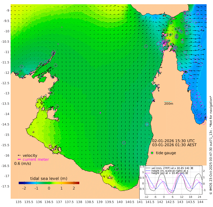 12cm/s 21T +3cm/s rms + 7cm/s -42T. ARA-GOC87 57m 31cm/s 15T +3cm/s rms + 2cm/s -2T. ARA-GOC87 60m 12cm/s 41T +2cm/s rms + 3cm/s 61T. ARA-GOC87 47m -63cm Daru -70cm Bobo Island -108cm Meer Island Barge -107cm Bramble Cay -87cm Unnamed Cay -88cm Pearce Cay -97cm Stephens Island -90cm Merrie England Shoals -63cm Mutacomal Reef -96cm Darnley Island Barge -118cm East Cay -75cm Yorke Island Barge -78cm Rennel Island -72cm Aureed Island -61cm Dungeness Reef -15cm Zagai Island -21cm Yam Island -15cm Dauan Island -1cm Saibai Island -36cm Phipi Reef -27cm Warrior Reef - West 2cm Mabuiag Island Barge -71cm Half Way Island -54cm Coconut Island -63cm Dugong Islet -32cm Poll Island -43cm Kirkcaldie Reef -19cm Suarji Island -22cm Sue Islet -72cm Hawkesbury Island -24cm Alert Patches -20cm Twin Island -60cm Badu Island -5cm St Pauls (Moa Island) -57cm Kubin (Moa Island) -24cm Ince Point -30cm Thursday Island -28cm Nardana Patches -62cm Turtle Head -63cm Round Island -87cm Goods Island -84cm Booby Island -79cm White Rocks Area -43cm Carpentaria -11cm Papou Point -94cm Bampfield Head -67cm Crab Island -76cm Red Wallis Island -77cm Packe Island -55cm Harrington Reef -91cm Herald Camp 14cm Sharp Point -50cm Red Island Point -34cm Possession Island -9cm Alpha Rock -33cm Frederick Point -51cm Wyborn Reef Light -41cm Tetley Island -90cm Triangle Reef -59cm Turtle Head Island -106cm Maclennan Cay -114cm Raine Island -82cm Mcsweeny Reef -88cm Collette Reef -100cm Shadwell Reef -99cm Hannibal Island -111cm Round Point -48cm Vrilya Point -107cm Cape Grenville -112cm Hicks Island -126cm Sir Charles Hardy Island -33cm Harvey Island -118cm Kay Reef -117cm Rocky Island -121cm Chapman Island -114cm Ham Reef -113cm Jubilee Reef -104cm Night Island -116cm Unnamed Reef No. 3 -122cm Morris Island -119cm 1st 3 Mile Opening -119cm Creech Reef -113cm Fife Island -146cm Eden Reef -124cm Stanley Island -130cm Normanby River -49cm Yabooma Island -74cm Hutchison River -49cm Elcho Island -40cm North West Crocodile Island -15cm Cape Wessel -24cm Stevens Island -40cm Guluwuru Island -34cm Hopeful Bay -20cm Auster Point -18cm Two Island Bay -49cm Cadell Strait -34cm Mallison Island -29cm Melville Bay (Gove Harbour) -27cm Truant Island -15cm Cape Arnhem 6cm Cape Grey 12cm Hawk Island 54cm Milner Bay (Groote Eylandt) 42cm Cape Beatrice 76cm West Island 73cm Centre Island 2cm Mornington Island 7cm West Wellesley Islands -14cm Bountiful Island 6cm Albert River Mouth 40cm Sweers Island -2cm Karumba -49cm Nassau River Offshore -82cm Christmas Creek -85cm Archer River -75cm Boyd Point -96cm Weipa (Humbug Point) -46cm Pennefather River -60cm Cullen Point