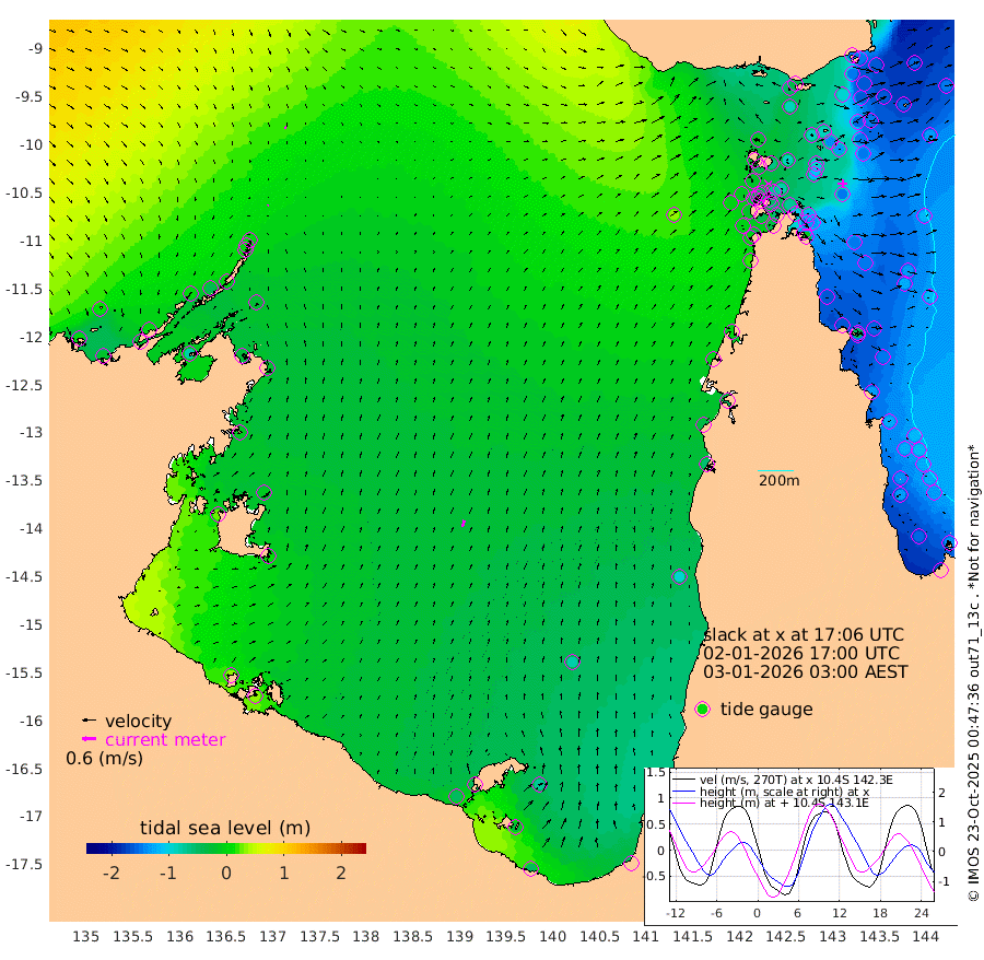 3cm/s 62T +3cm/s rms + 7cm/s -42T. ARA-GOC87 57m 30cm/s 16T +3cm/s rms + 2cm/s -2T. ARA-GOC87 60m 8cm/s 113T +2cm/s rms + 3cm/s 61T. ARA-GOC87 47m -146cm Daru -150cm Bobo Island -134cm Meer Island Barge -155cm Bramble Cay -160cm Unnamed Cay -160cm Pearce Cay -161cm Stephens Island -163cm Merrie England Shoals -150cm Mutacomal Reef -153cm Darnley Island Barge -148cm East Cay -145cm Yorke Island Barge -151cm Rennel Island -147cm Aureed Island -138cm Dungeness Reef -84cm Zagai Island -90cm Yam Island -49cm Dauan Island -34cm Saibai Island -83cm Phipi Reef -97cm Warrior Reef - West -14cm Mabuiag Island Barge -146cm Half Way Island -130cm Coconut Island -143cm Dugong Islet -107cm Poll Island -118cm Kirkcaldie Reef -87cm Suarji Island -94cm Sue Islet -21cm Hawkesbury Island -74cm Alert Patches -77cm Twin Island -18cm Badu Island -62cm St Pauls (Moa Island) -39cm Kubin (Moa Island) -51cm Ince Point -40cm Thursday Island -42cm Nardana Patches -47cm Turtle Head -33cm Round Island -32cm Goods Island -4cm Booby Island -13cm White Rocks Area 32cm Carpentaria -56cm Papou Point -16cm Bampfield Head 4cm Crab Island -7cm Red Wallis Island -45cm Packe Island -144cm Harrington Reef -37cm Herald Camp -10cm Sharp Point -36cm Red Island Point -56cm Possession Island -70cm Alpha Rock -103cm Frederick Point -133cm Wyborn Reef Light -122cm Tetley Island -116cm Triangle Reef -137cm Turtle Head Island -132cm Maclennan Cay -117cm Raine Island -147cm Mcsweeny Reef -145cm Collette Reef -127cm Shadwell Reef -162cm Hannibal Island -158cm Round Point 22cm Vrilya Point -149cm Cape Grenville -146cm Hicks Island -154cm Sir Charles Hardy Island -46cm Harvey Island -144cm Kay Reef -131cm Rocky Island -126cm Chapman Island -118cm Ham Reef -124cm Jubilee Reef -119cm Night Island -122cm Unnamed Reef No. 3 -136cm Morris Island -125cm 1st 3 Mile Opening -130cm Creech Reef -129cm Fife Island -156cm Eden Reef -139cm Stanley Island -152cm Normanby River 3cm Yabooma Island -20cm Hutchison River 4cm Elcho Island 9cm North West Crocodile Island 4cm Cape Wessel 7cm Stevens Island -42cm Guluwuru Island 1cm Hopeful Bay 5cm Auster Point 7cm Two Island Bay -22cm Cadell Strait -77cm Mallison Island -27cm Melville Bay (Gove Harbour) -24cm Truant Island -19cm Cape Arnhem -8cm Cape Grey -9cm Hawk Island 27cm Milner Bay (Groote Eylandt) 12cm Cape Beatrice 32cm West Island 31cm Centre Island -50cm Mornington Island -49cm West Wellesley Islands -70cm Bountiful Island -50cm Albert River Mouth -26cm Sweers Island -58cm Karumba -81cm Nassau River Offshore -91cm Christmas Creek -56cm Archer River -37cm Boyd Point -49cm Weipa (Humbug Point) -2cm Pennefather River 1cm Cullen Point