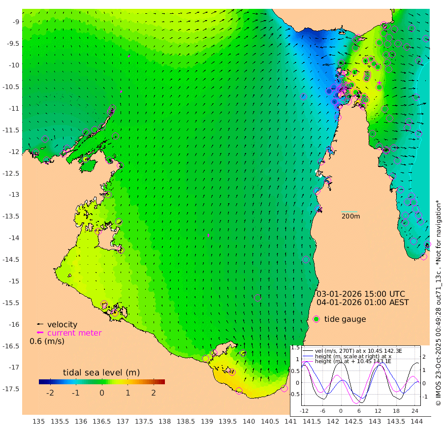 21cm/s 32T +3cm/s rms + 7cm/s -42T. ARA-GOC87 57m 31cm/s 9T +3cm/s rms + 2cm/s -2T. ARA-GOC87 60m 25cm/s 37T +2cm/s rms + 3cm/s 61T. ARA-GOC87 47m 4cm Daru 2cm Bobo Island -57cm Meer Island Barge -44cm Bramble Cay -16cm Unnamed Cay -17cm Pearce Cay -26cm Stephens Island -19cm Merrie England Shoals 4cm Mutacomal Reef -28cm Darnley Island Barge -64cm East Cay -8cm Yorke Island Barge -13cm Rennel Island -4cm Aureed Island -4cm Dungeness Reef 21cm Zagai Island 10cm Yam Island -21cm Dauan Island -7cm Saibai Island -24cm Phipi Reef 7cm Warrior Reef - West -22cm Mabuiag Island Barge -6cm Half Way Island 2cm Coconut Island 1cm Dugong Islet 11cm Poll Island 2cm Kirkcaldie Reef 10cm Suarji Island 17cm Sue Islet -144cm Hawkesbury Island -13cm Alert Patches -3cm Twin Island -124cm Badu Island 7cm St Pauls (Moa Island) -98cm Kubin (Moa Island) -33cm Ince Point -54cm Thursday Island -48cm Nardana Patches -100cm Turtle Head -110cm Round Island -154cm Goods Island -172cm Booby Island -157cm White Rocks Area -127cm Carpentaria -3cm Papou Point -172cm Bampfield Head -146cm Crab Island -158cm Red Wallis Island -128cm Packe Island 11cm Harrington Reef -157cm Herald Camp 19cm Sharp Point -89cm Red Island Point -40cm Possession Island 13cm Alpha Rock 4cm Frederick Point 11cm Wyborn Reef Light 14cm Tetley Island -49cm Triangle Reef 3cm Turtle Head Island -60cm Maclennan Cay -80cm Raine Island -17cm Mcsweeny Reef -27cm Collette Reef -54cm Shadwell Reef -28cm Hannibal Island -48cm Round Point -129cm Vrilya Point -50cm Cape Grenville -57cm Hicks Island -74cm Sir Charles Hardy Island -14cm Harvey Island -67cm Kay Reef -74cm Rocky Island -84cm Chapman Island -79cm Ham Reef -74cm Jubilee Reef -63cm Night Island -81cm Unnamed Reef No. 3 -77cm Morris Island -80cm 1st 3 Mile Opening -77cm Creech Reef -67cm Fife Island -94cm Eden Reef -77cm Stanley Island -75cm Normanby River -53cm Yabooma Island -67cm Hutchison River -50cm Elcho Island -45cm North West Crocodile Island 1cm Cape Wessel -15cm Stevens Island 2cm Guluwuru Island -26cm Hopeful Bay -8cm Auster Point -4cm Two Island Bay -24cm Cadell Strait 46cm Mallison Island 6cm Melville Bay (Gove Harbour) 7cm Truant Island 13cm Cape Arnhem 34cm Cape Grey 41cm Hawk Island 79cm Milner Bay (Groote Eylandt) 67cm Cape Beatrice 100cm West Island 97cm Centre Island 49cm Mornington Island 54cm West Wellesley Islands 42cm Bountiful Island 65cm Albert River Mouth 108cm Sweers Island 53cm Karumba -20cm Nassau River Offshore -73cm Christmas Creek -110cm Archer River -111cm Boyd Point -136cm Weipa (Humbug Point) -94cm Pennefather River -128cm Cullen Point