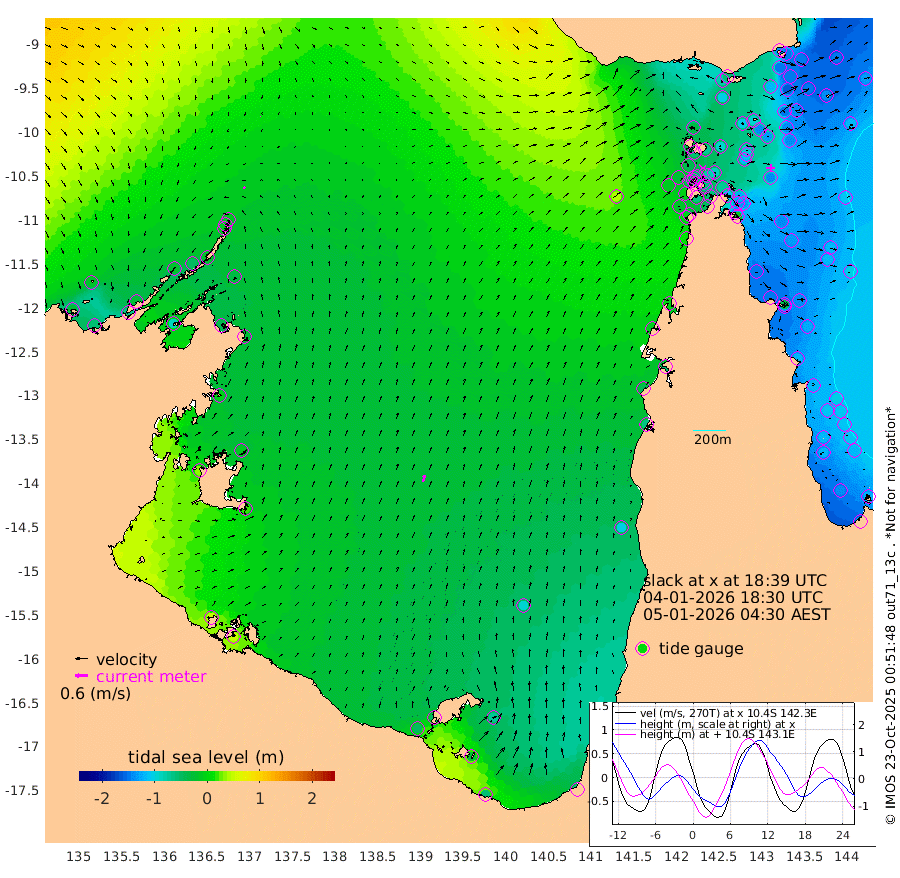 7cm/s -38T +3cm/s rms + 7cm/s -42T. ARA-GOC87 57m 35cm/s 16T +3cm/s rms + 2cm/s -2T. ARA-GOC87 60m 2cm/s 133T +2cm/s rms + 3cm/s 61T. ARA-GOC87 47m -142cm Daru -146cm Bobo Island -119cm Meer Island Barge -143cm Bramble Cay -147cm Unnamed Cay -158cm Pearce Cay -149cm Stephens Island -149cm Merrie England Shoals -144cm Mutacomal Reef -139cm Darnley Island Barge -133cm East Cay -136cm Yorke Island Barge -144cm Rennel Island -142cm Aureed Island -137cm Dungeness Reef -93cm Zagai Island -98cm Yam Island -77cm Dauan Island -57cm Saibai Island -105cm Phipi Reef -113cm Warrior Reef - West -32cm Mabuiag Island Barge -139cm Half Way Island -128cm Coconut Island -138cm Dugong Islet -112cm Poll Island -118cm Kirkcaldie Reef -93cm Suarji Island -96cm Sue Islet -39cm Hawkesbury Island -81cm Alert Patches -86cm Twin Island -42cm Badu Island -75cm St Pauls (Moa Island) -53cm Kubin (Moa Island) -63cm Ince Point -52cm Thursday Island -55cm Nardana Patches -61cm Turtle Head -36cm Round Island -45cm Goods Island -13cm Booby Island -25cm White Rocks Area 41cm Carpentaria -64cm Papou Point -5cm Bampfield Head -7cm Crab Island -21cm Red Wallis Island -60cm Packe Island -138cm Harrington Reef -37cm Herald Camp -13cm Sharp Point -51cm Red Island Point -56cm Possession Island -73cm Alpha Rock -106cm Frederick Point -129cm Wyborn Reef Light -120cm Tetley Island -109cm Triangle Reef -130cm Turtle Head Island -118cm Maclennan Cay -104cm Raine Island -137cm Mcsweeny Reef -133cm Collette Reef -113cm Shadwell Reef -147cm Hannibal Island -147cm Round Point 14cm Vrilya Point -132cm Cape Grenville -131cm Hicks Island -138cm Sir Charles Hardy Island -41cm Harvey Island -126cm Kay Reef -116cm Rocky Island -116cm Chapman Island -104cm Ham Reef -110cm Jubilee Reef -106cm Night Island -109cm Unnamed Reef No. 3 -120cm Morris Island -107cm 1st 3 Mile Opening -114cm Creech Reef -119cm Fife Island -138cm Eden Reef -120cm Stanley Island -134cm Normanby River -29cm Yabooma Island -53cm Hutchison River -24cm Elcho Island -22cm North West Crocodile Island -13cm Cape Wessel -22cm Stevens Island -51cm Guluwuru Island -21cm Hopeful Bay -13cm Auster Point -12cm Two Island Bay -62cm Cadell Strait -89cm Mallison Island -39cm Melville Bay (Gove Harbour) -36cm Truant Island -25cm Cape Arnhem -7cm Cape Grey -8cm Hawk Island 34cm Milner Bay (Groote Eylandt) 18cm Cape Beatrice 45cm West Island 47cm Centre Island -47cm Mornington Island -47cm West Wellesley Islands -69cm Bountiful Island -58cm Albert River Mouth -29cm Sweers Island -66cm Karumba -91cm Nassau River Offshore -100cm Christmas Creek -64cm Archer River -40cm Boyd Point -55cm Weipa (Humbug Point) -8cm Pennefather River -3cm Cullen Point