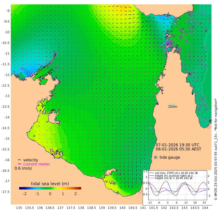 14cm/s -36T +3cm/s rms + 7cm/s -42T. ARA-GOC87 57m 26cm/s 19T +3cm/s rms + 2cm/s -2T. ARA-GOC87 60m 8cm/s -44T +2cm/s rms + 3cm/s 61T. ARA-GOC87 47m -52cm Daru -52cm Bobo Island -48cm Meer Island Barge -61cm Bramble Cay -54cm Unnamed Cay -65cm Pearce Cay -53cm Stephens Island -55cm Merrie England Shoals -56cm Mutacomal Reef -48cm Darnley Island Barge -58cm East Cay -45cm Yorke Island Barge -54cm Rennel Island -47cm Aureed Island -53cm Dungeness Reef -37cm Zagai Island -47cm Yam Island -69cm Dauan Island -52cm Saibai Island -76cm Phipi Reef -58cm Warrior Reef - West -43cm Mabuiag Island Barge -47cm Half Way Island -45cm Coconut Island -47cm Dugong Islet -45cm Poll Island -44cm Kirkcaldie Reef -34cm Suarji Island -34cm Sue Islet -96cm Hawkesbury Island -41cm Alert Patches -41cm Twin Island -86cm Badu Island -37cm St Pauls (Moa Island) -74cm Kubin (Moa Island) -46cm Ince Point -49cm Thursday Island -48cm Nardana Patches -70cm Turtle Head -66cm Round Island -83cm Goods Island -68cm Booby Island -73cm White Rocks Area 1cm Carpentaria -35cm Papou Point -53cm Bampfield Head -57cm Crab Island -71cm Red Wallis Island -83cm Packe Island -40cm Harrington Reef -80cm Herald Camp -2cm Sharp Point -68cm Red Island Point -40cm Possession Island -31cm Alpha Rock -43cm Frederick Point -48cm Wyborn Reef Light -47cm Tetley Island -51cm Triangle Reef -45cm Turtle Head Island -49cm Maclennan Cay -51cm Raine Island -49cm Mcsweeny Reef -50cm Collette Reef -49cm Shadwell Reef -54cm Hannibal Island -66cm Round Point -34cm Vrilya Point -52cm Cape Grenville -56cm Hicks Island -62cm Sir Charles Hardy Island -15cm Harvey Island -54cm Kay Reef -55cm Rocky Island -63cm Chapman Island -52cm Ham Reef -51cm Jubilee Reef -46cm Night Island -54cm Unnamed Reef No. 3 -54cm Morris Island -45cm 1st 3 Mile Opening -50cm Creech Reef -55cm Fife Island -65cm Eden Reef -52cm Stanley Island -61cm Normanby River -126cm Yabooma Island -141cm Hutchison River -111cm Elcho Island -113cm North West Crocodile Island -57cm Cape Wessel -100cm Stevens Island -54cm Guluwuru Island -95cm Hopeful Bay -69cm Auster Point -71cm Two Island Bay -127cm Cadell Strait -63cm Mallison Island -52cm Melville Bay (Gove Harbour) -51cm Truant Island -25cm Cape Arnhem 1cm Cape Grey 2cm Hawk Island 46cm Milner Bay (Groote Eylandt) 38cm Cape Beatrice 79cm West Island 82cm Centre Island 11cm Mornington Island 14cm West Wellesley Islands -13cm Bountiful Island -9cm Albert River Mouth 18cm Sweers Island -21cm Karumba -45cm Nassau River Offshore -63cm Christmas Creek -62cm Archer River -46cm Boyd Point -67cm Weipa (Humbug Point) -29cm Pennefather River -42cm Cullen Point