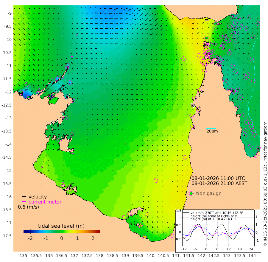 27cm/s -100T +3cm/s rms + 7cm/s -42T. ARA-GOC87 57m 10cm/s -104T +3cm/s rms + 2cm/s -2T. ARA-GOC87 60m 26cm/s -108T +2cm/s rms + 3cm/s 61T. ARA-GOC87 47m -55cm Daru -66cm Bobo Island -45cm Meer Island Barge -48cm Bramble Cay -54cm Unnamed Cay -58cm Pearce Cay -58cm Stephens Island -49cm Merrie England Shoals -49cm Mutacomal Reef -60cm Darnley Island Barge -45cm East Cay -61cm Yorke Island Barge -53cm Rennel Island -64cm Aureed Island -42cm Dungeness Reef -44cm Zagai Island -28cm Yam Island -6cm Dauan Island -17cm Saibai Island 15cm Phipi Reef -35cm Warrior Reef - West 6cm Mabuiag Island Barge -48cm Half Way Island -52cm Coconut Island -50cm Dugong Islet -39cm Poll Island -29cm Kirkcaldie Reef -32cm Suarji Island -43cm Sue Islet 65cm Hawkesbury Island -11cm Alert Patches -20cm Twin Island 55cm Badu Island -18cm St Pauls (Moa Island) 33cm Kubin (Moa Island) 4cm Ince Point 18cm Thursday Island 14cm Nardana Patches 35cm Turtle Head 40cm Round Island 60cm Goods Island 72cm Booby Island 65cm White Rocks Area 33cm Carpentaria -15cm Papou Point 36cm Bampfield Head 72cm Crab Island 68cm Red Wallis Island 50cm Packe Island -57cm Harrington Reef 59cm Herald Camp -2cm Sharp Point 46cm Red Island Point 3cm Possession Island -32cm Alpha Rock -38cm Frederick Point -61cm Wyborn Reef Light -58cm Tetley Island -40cm Triangle Reef -58cm Turtle Head Island -41cm Maclennan Cay -29cm Raine Island -57cm Mcsweeny Reef -52cm Collette Reef -39cm Shadwell Reef -55cm Hannibal Island -49cm Round Point 72cm Vrilya Point -43cm Cape Grenville -44cm Hicks Island -50cm Sir Charles Hardy Island -14cm Harvey Island -39cm Kay Reef -36cm Rocky Island -33cm Chapman Island -35cm Ham Reef -37cm Jubilee Reef -32cm Night Island -34cm Unnamed Reef No. 3 -37cm Morris Island -34cm 1st 3 Mile Opening -36cm Creech Reef -47cm Fife Island -40cm Eden Reef -35cm Stanley Island -41cm Normanby River -19cm Yabooma Island -37cm Hutchison River -24cm Elcho Island -9cm North West Crocodile Island -87cm Cape Wessel -50cm Stevens Island -114cm Guluwuru Island -39cm Hopeful Bay -65cm Auster Point -64cm Two Island Bay -69cm Cadell Strait -211cm Mallison Island -92cm Melville Bay (Gove Harbour) -106cm Truant Island -77cm Cape Arnhem -47cm Cape Grey -27cm Hawk Island -4cm Milner Bay (Groote Eylandt) 11cm Cape Beatrice 34cm West Island 39cm Centre Island 63cm Mornington Island 56cm West Wellesley Islands 81cm Bountiful Island 106cm Albert River Mouth 95cm Sweers Island 119cm Karumba 82cm Nassau River Offshore 70cm Christmas Creek 64cm Archer River 41cm Boyd Point 59cm Weipa (Humbug Point) 60cm Pennefather River 59cm Cullen Point
