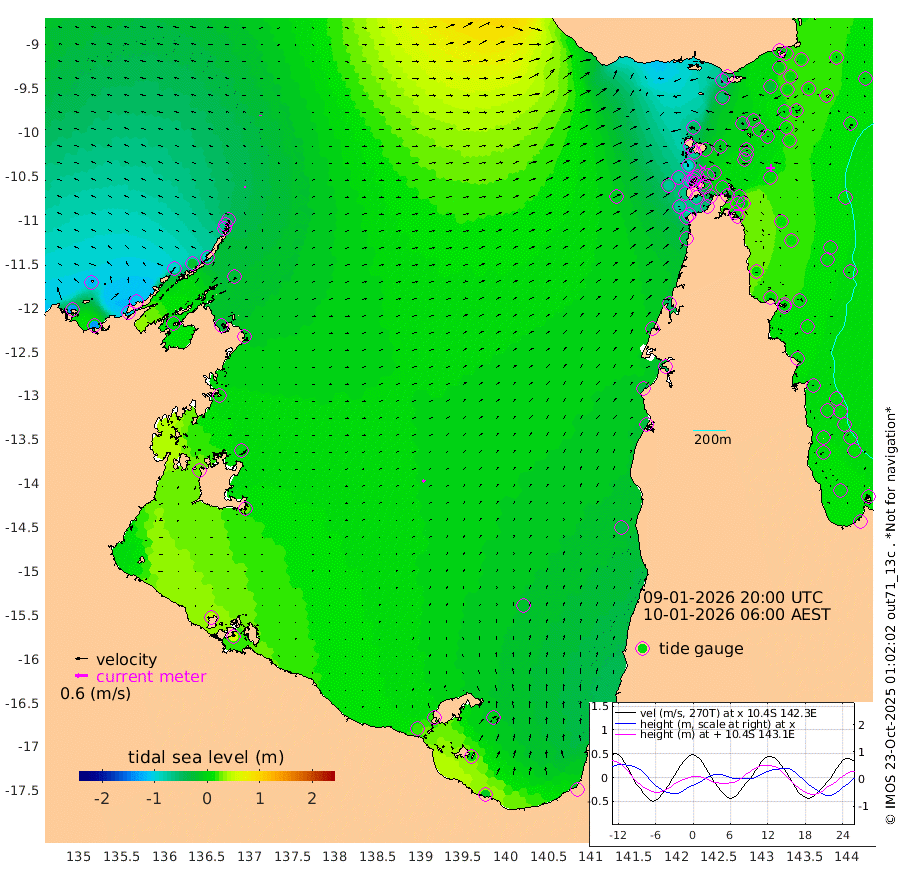 7cm/s -1T +3cm/s rms + 7cm/s -42T. ARA-GOC87 57m 12cm/s 37T +3cm/s rms + 2cm/s -2T. ARA-GOC87 60m 4cm/s -6T +2cm/s rms + 3cm/s 61T. ARA-GOC87 47m 1cm Daru 10cm Bobo Island 11cm Meer Island Barge 4cm Bramble Cay 4cm Unnamed Cay 5cm Pearce Cay 12cm Stephens Island 7cm Merrie England Shoals -3cm Mutacomal Reef 16cm Darnley Island Barge 7cm East Cay 13cm Yorke Island Barge 3cm Rennel Island 14cm Aureed Island -4cm Dungeness Reef -11cm Zagai Island -25cm Yam Island -62cm Dauan Island -45cm Saibai Island -57cm Phipi Reef -27cm Warrior Reef - West -48cm Mabuiag Island Barge 8cm Half Way Island 5cm Coconut Island 5cm Dugong Islet -10cm Poll Island -6cm Kirkcaldie Reef -11cm Suarji Island -4cm Sue Islet -97cm Hawkesbury Island -21cm Alert Patches -19cm Twin Island -82cm Badu Island -24cm St Pauls (Moa Island) -71cm Kubin (Moa Island) -36cm Ince Point -43cm Thursday Island -42cm Nardana Patches -60cm Turtle Head -72cm Round Island -76cm Goods Island -71cm Booby Island -73cm White Rocks Area -10cm Carpentaria -22cm Papou Point -63cm Bampfield Head -60cm Crab Island -72cm Red Wallis Island -74cm Packe Island 14cm Harrington Reef -89cm Herald Camp -2cm Sharp Point -56cm Red Island Point -32cm Possession Island -14cm Alpha Rock -8cm Frederick Point -1cm Wyborn Reef Light -5cm Tetley Island 1cm Triangle Reef 6cm Turtle Head Island 7cm Maclennan Cay 3cm Raine Island 10cm Mcsweeny Reef 9cm Collette Reef 5cm Shadwell Reef 12cm Hannibal Island 1cm Round Point -40cm Vrilya Point 9cm Cape Grenville 5cm Hicks Island 2cm Sir Charles Hardy Island 3cm Harvey Island 8cm Kay Reef 4cm Rocky Island -2cm Chapman Island 4cm Ham Reef 6cm Jubilee Reef 7cm Night Island 5cm Unnamed Reef No. 3 7cm Morris Island 9cm 1st 3 Mile Opening 9cm Creech Reef 7cm Fife Island 7cm Eden Reef 8cm Stanley Island 7cm Normanby River -130cm Yabooma Island -129cm Hutchison River -110cm Elcho Island -116cm North West Crocodile Island -45cm Cape Wessel -97cm Stevens Island -21cm Guluwuru Island -91cm Hopeful Bay -63cm Auster Point -70cm Two Island Bay -101cm Cadell Strait 5cm Mallison Island -30cm Melville Bay (Gove Harbour) -28cm Truant Island -8cm Cape Arnhem 8cm Cape Grey 3cm Hawk Island 28cm Milner Bay (Groote Eylandt) 25cm Cape Beatrice 52cm West Island 55cm Centre Island 16cm Mornington Island 18cm West Wellesley Islands -7cm Bountiful Island -15cm Albert River Mouth 4cm Sweers Island -24cm Karumba -21cm Nassau River Offshore -32cm Christmas Creek -37cm Archer River -30cm Boyd Point -48cm Weipa (Humbug Point) -23cm Pennefather River -46cm Cullen Point